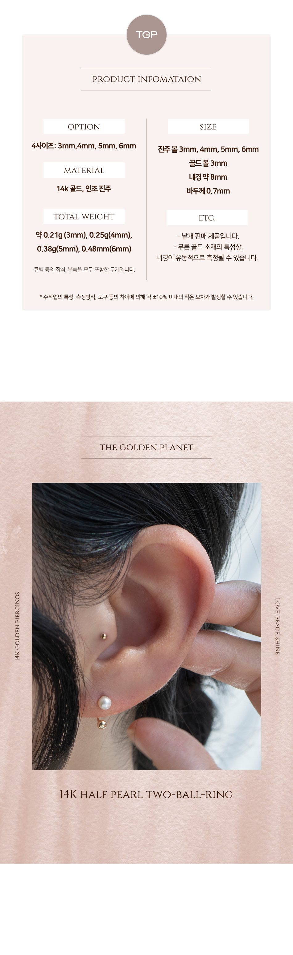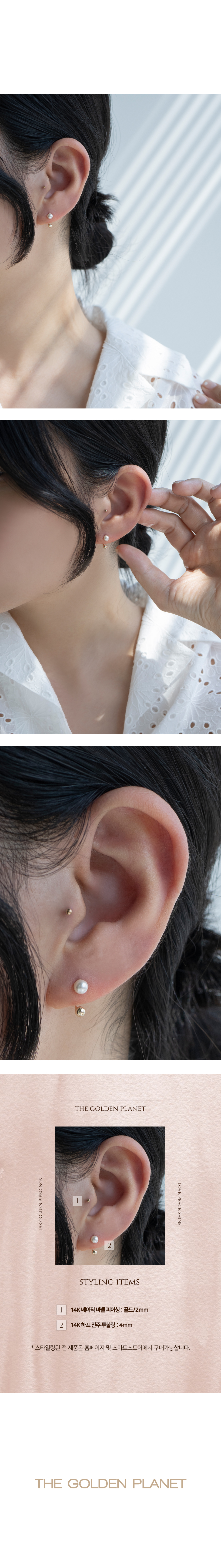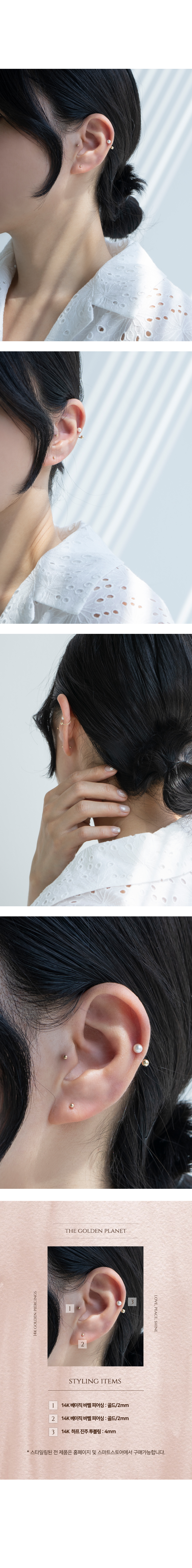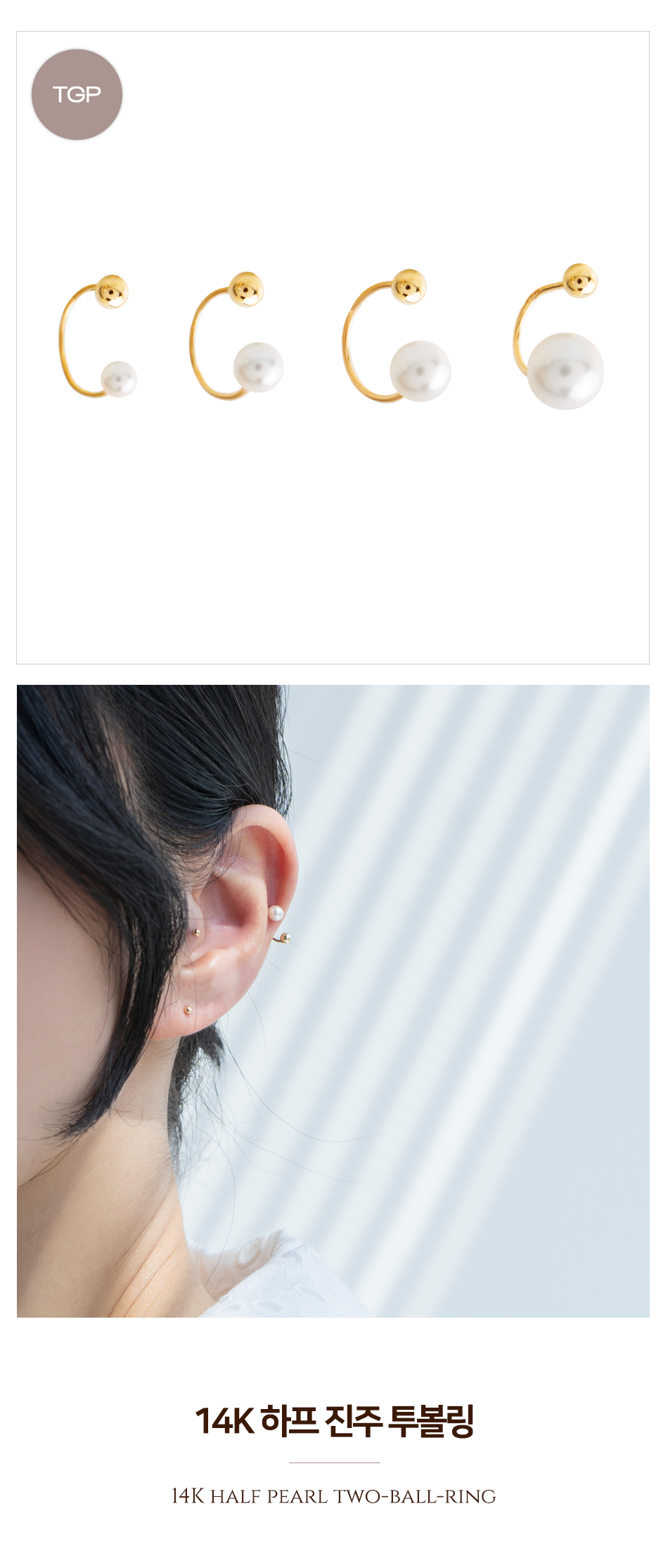 14K 하프 진주 투볼링 피어싱