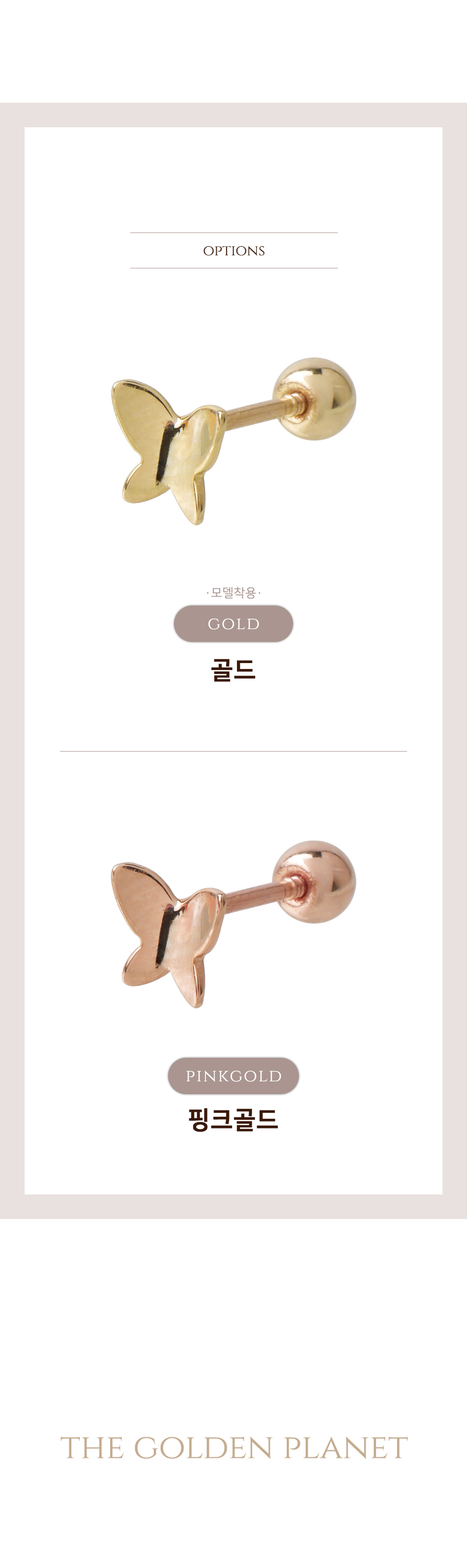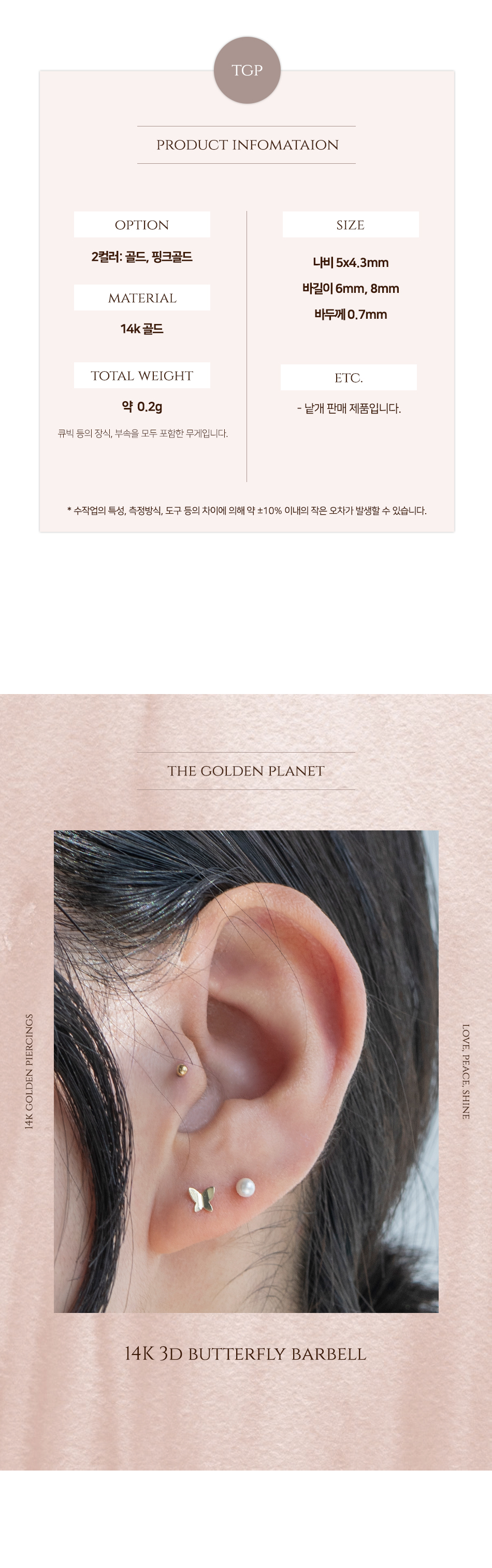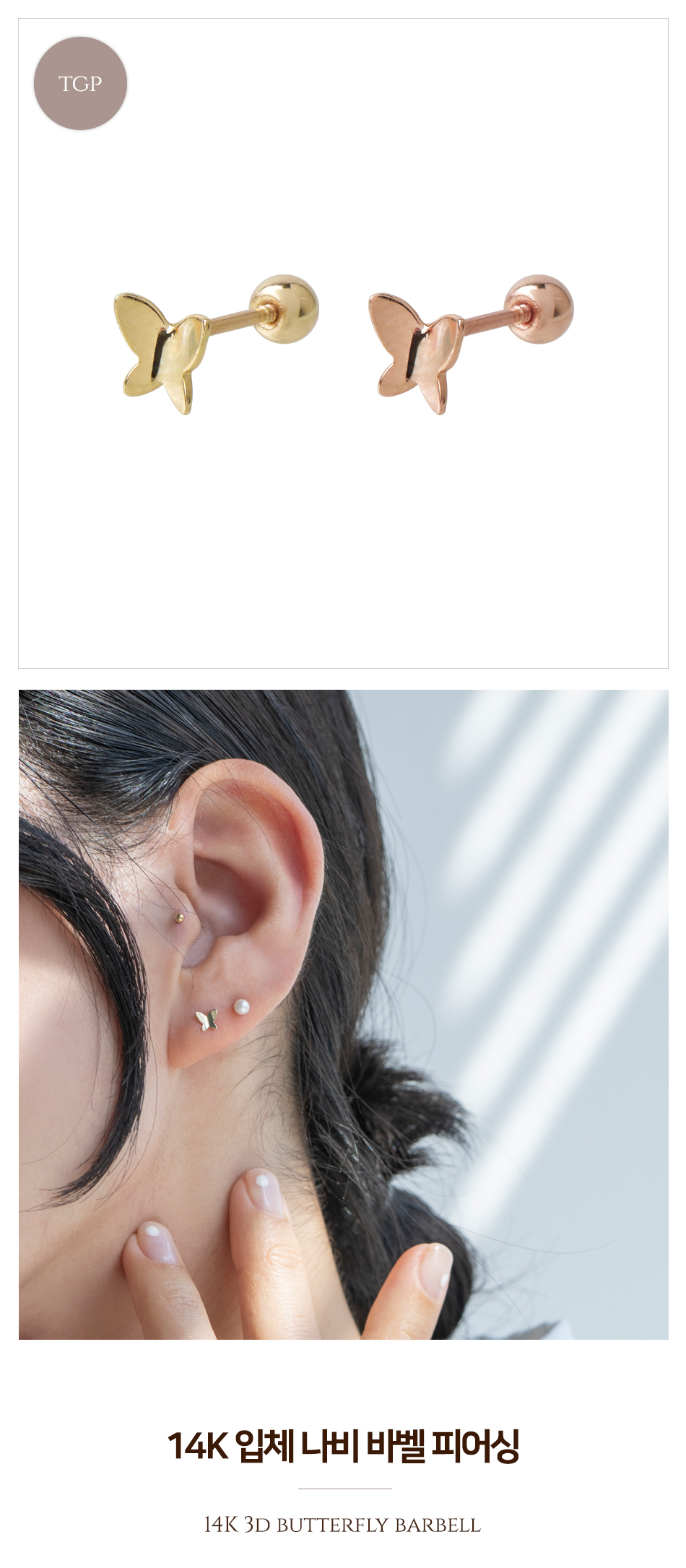 NEW 14K 입체 나비 바벨 금 피어싱