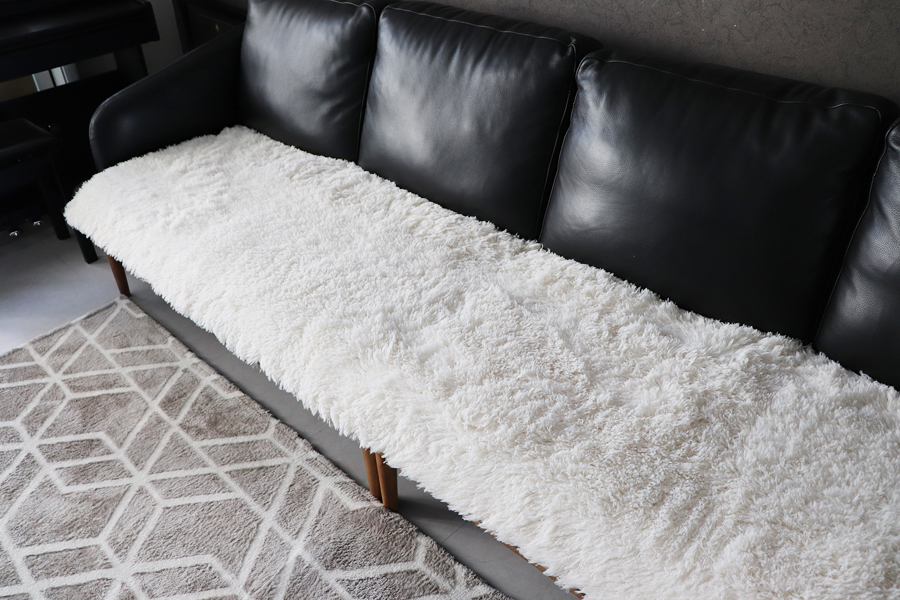 진짜 퍼는 당연히 아니구요. 아주 부드럽고 길이가 긴 파일(털)을 사용해 샤기카펫처럼 제작한 소파패드랍니다.