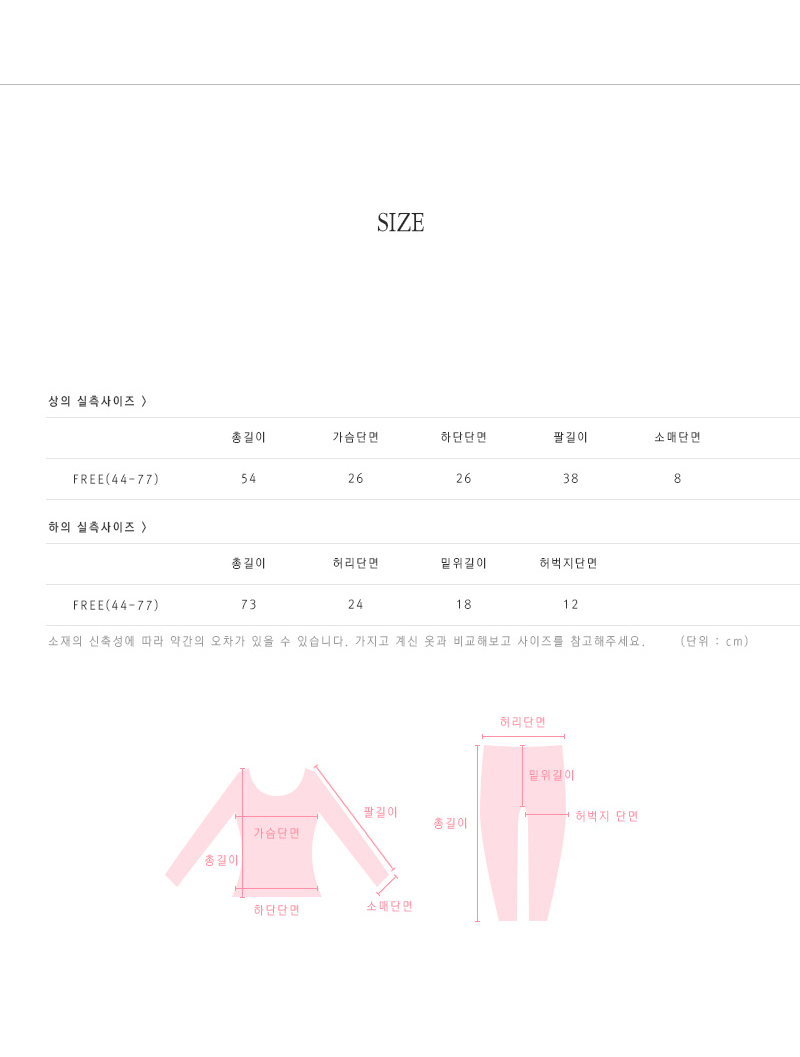 사이즈는 측정하는 위치에 따라 1~2cm 정도의 오차가 있을 수 있습니다.