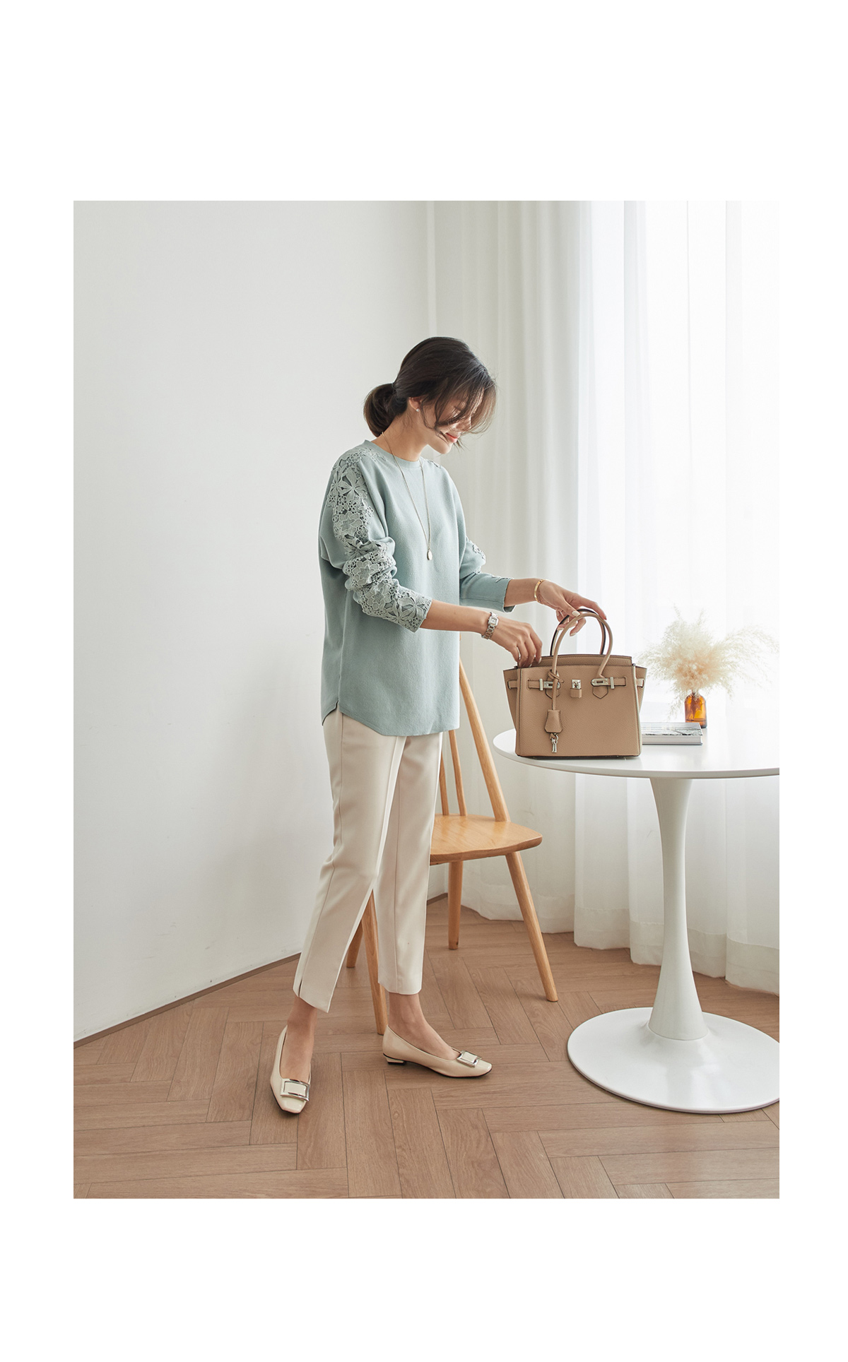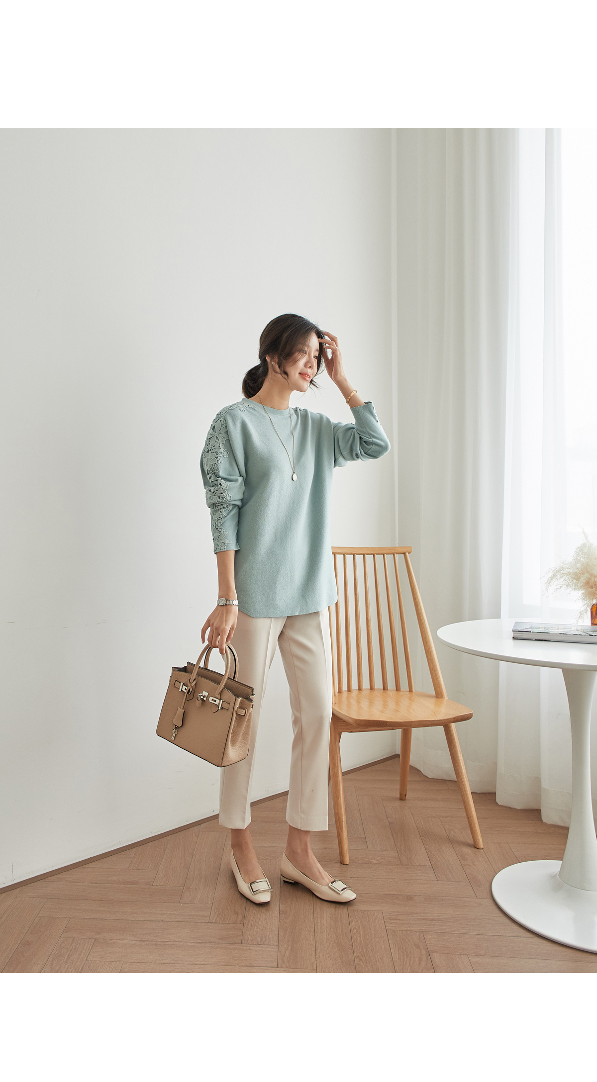 신축성도 챙겨준 탄탄한 소재라 핏감도 예쁘답니다.