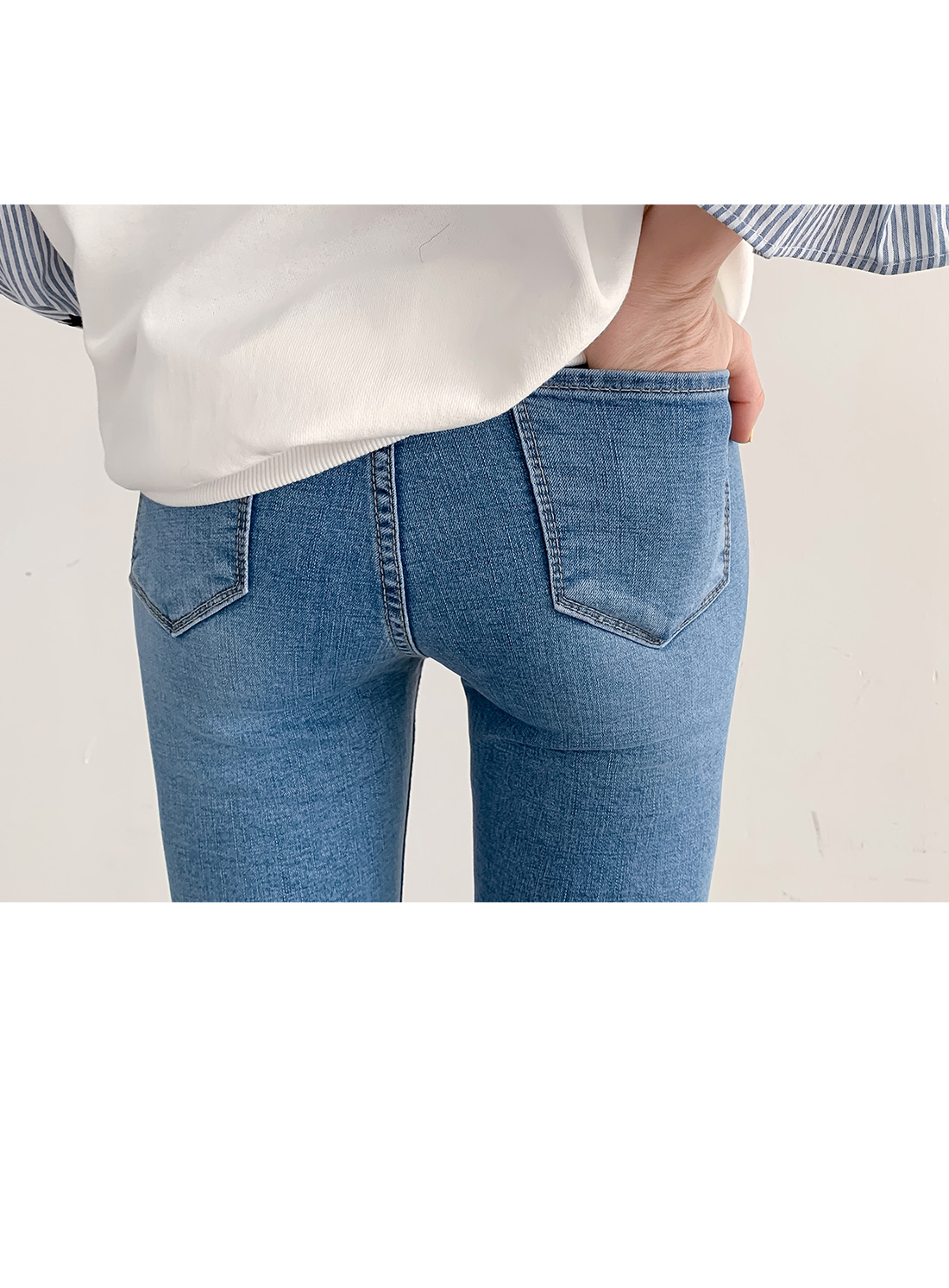 적당히 얇은 데님 소재에 스판이 살짝 함유되어 있고