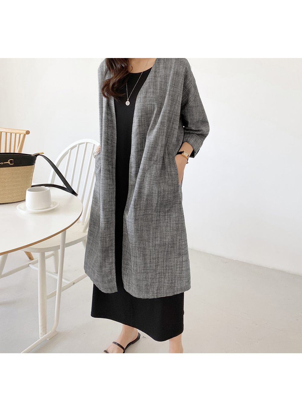 롱한 길이감과 과하지않게 A라인으로
