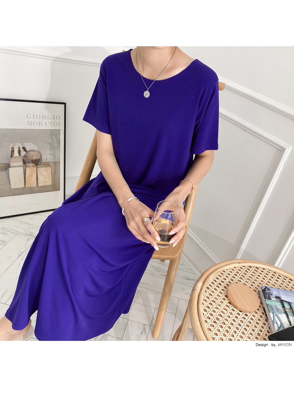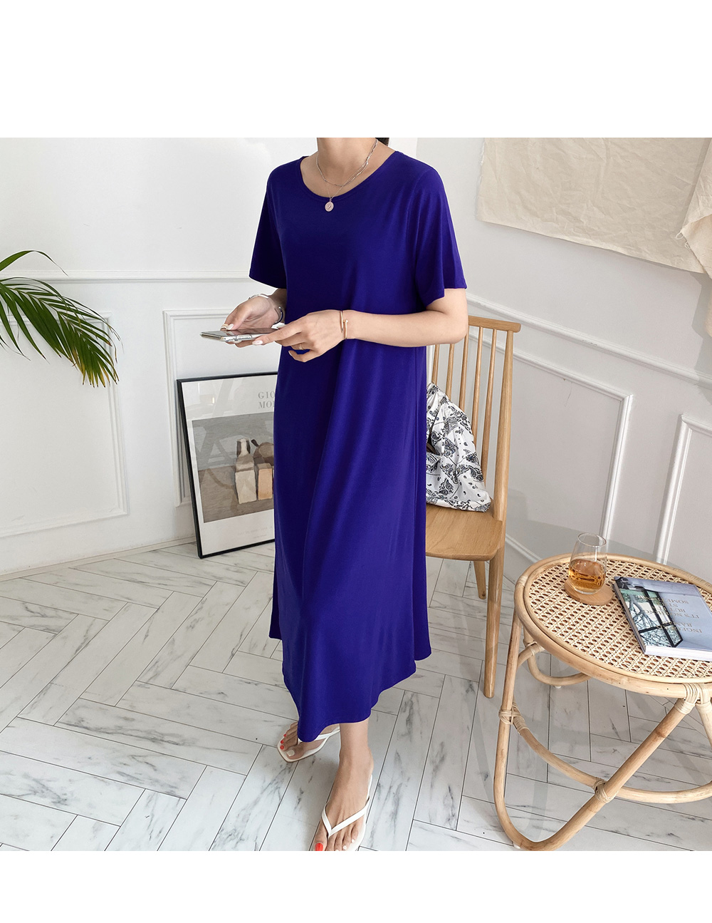 적당한 파임의 넥 라인과 롱길이로