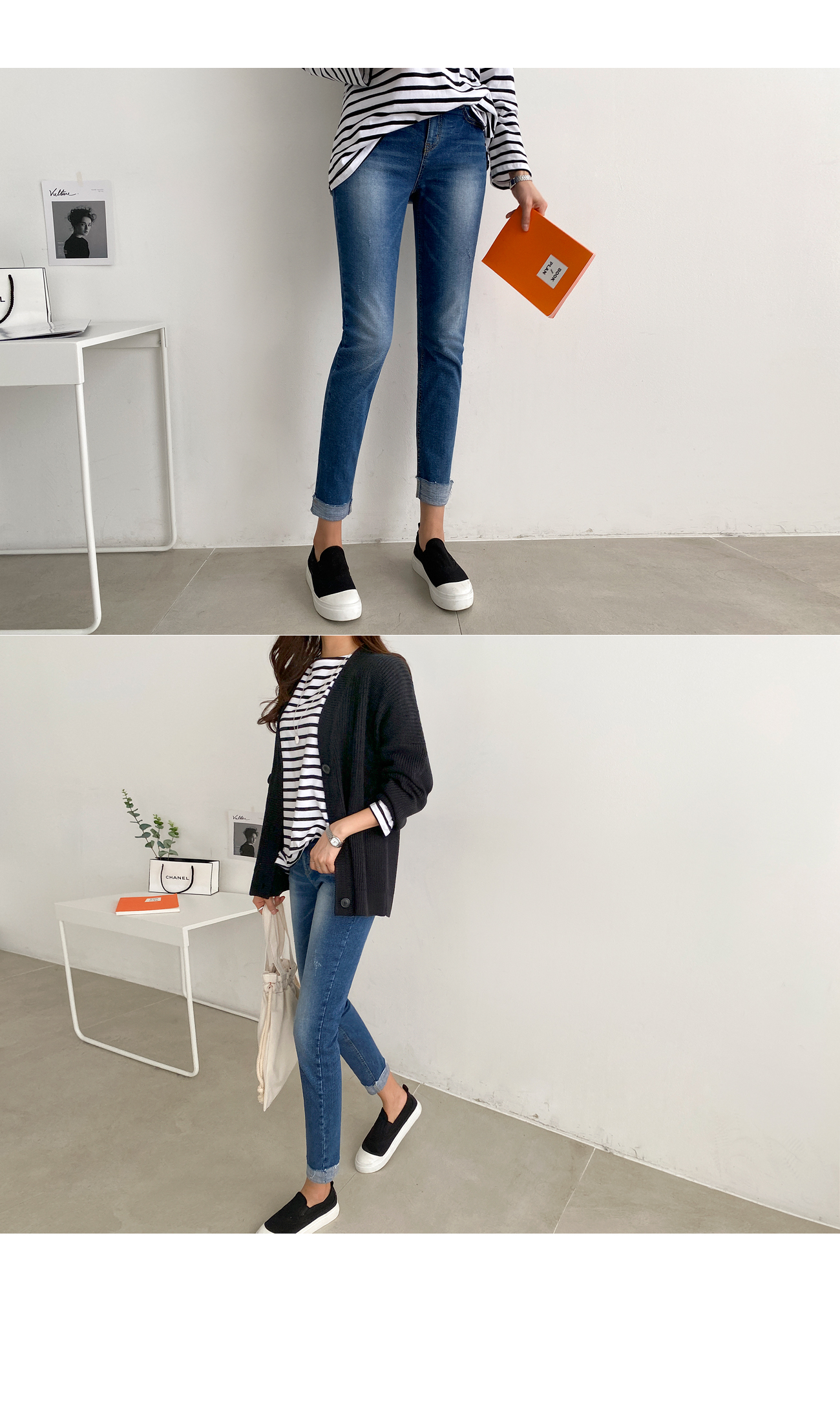 밑단 라인을 롤업 처리로 한층 더 센스있는 스타일로 연출되며,
