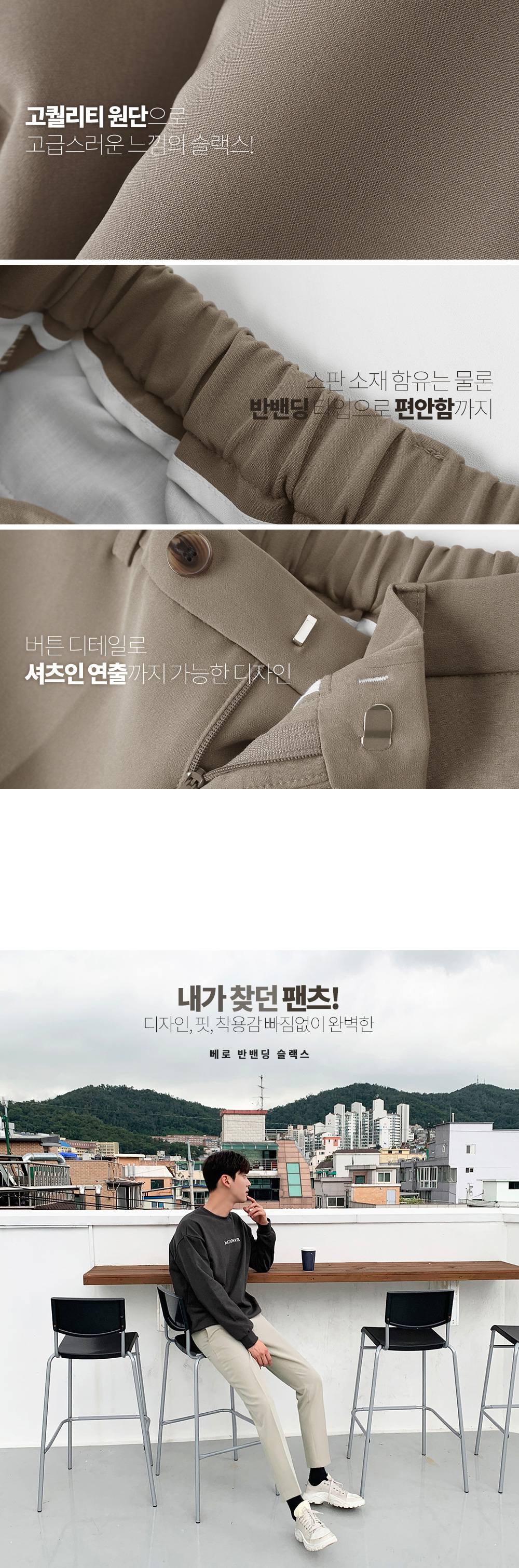 반밴딩 타입으로 더 편안한 착용감이 느껴지는 슬랙스입니다.