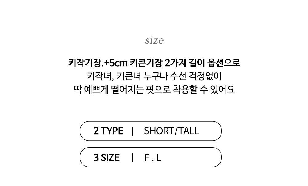 사이즈는 키작/키큰 F,L로 구성되어 있습니다.