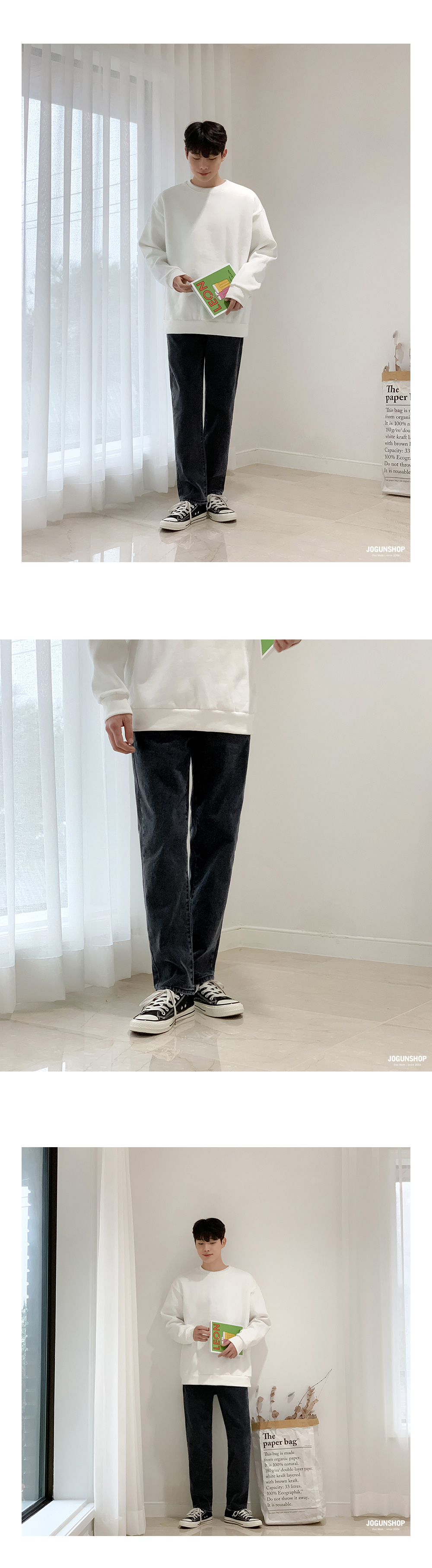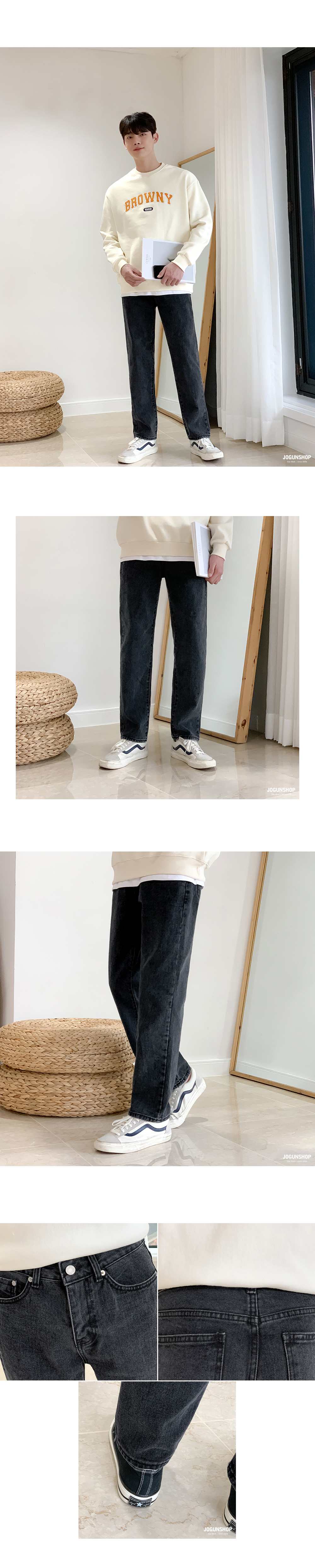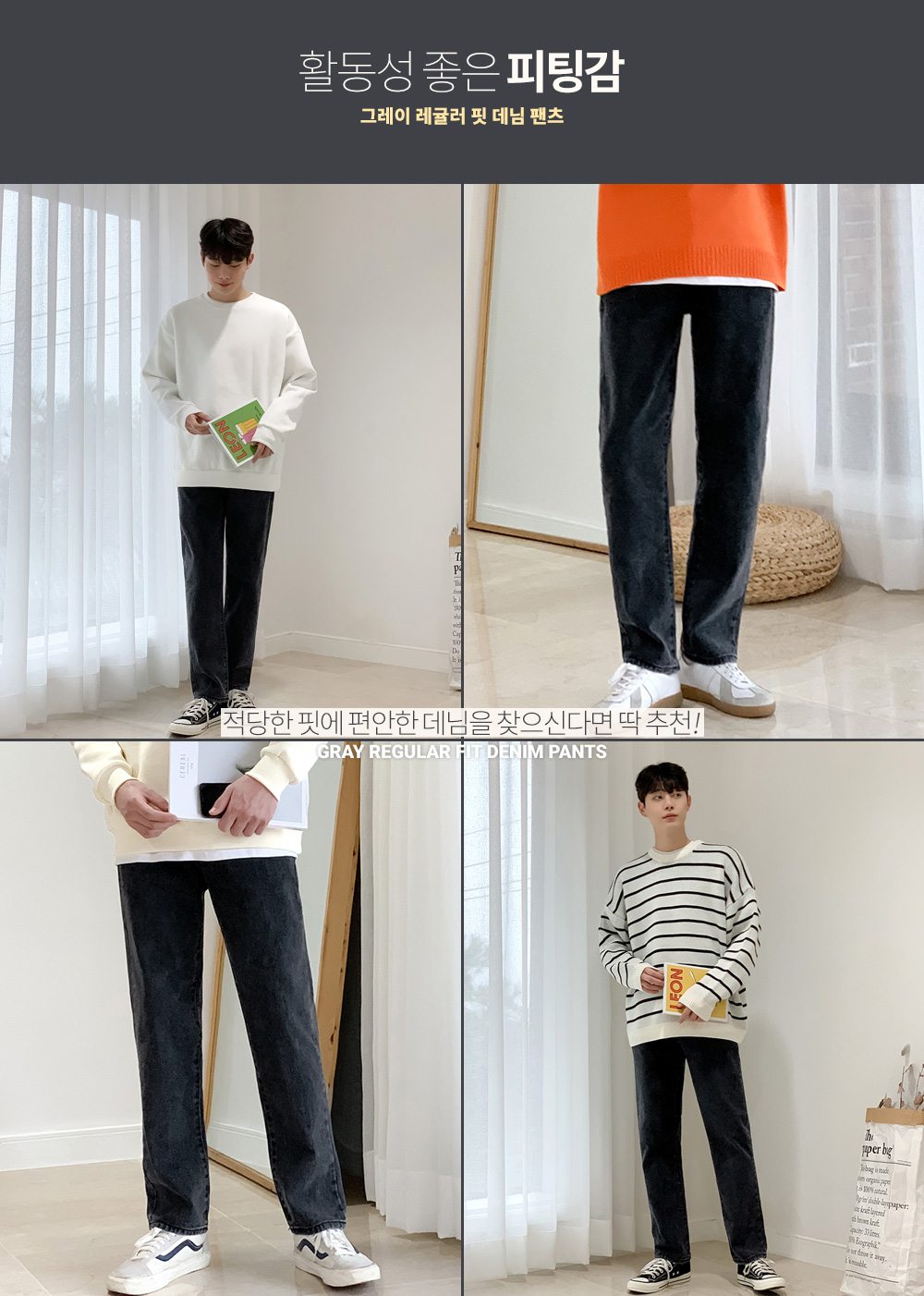 와이드한 맛을 살짝 볼 수 있는 레귤러 핏 데님 팬츠입니다.