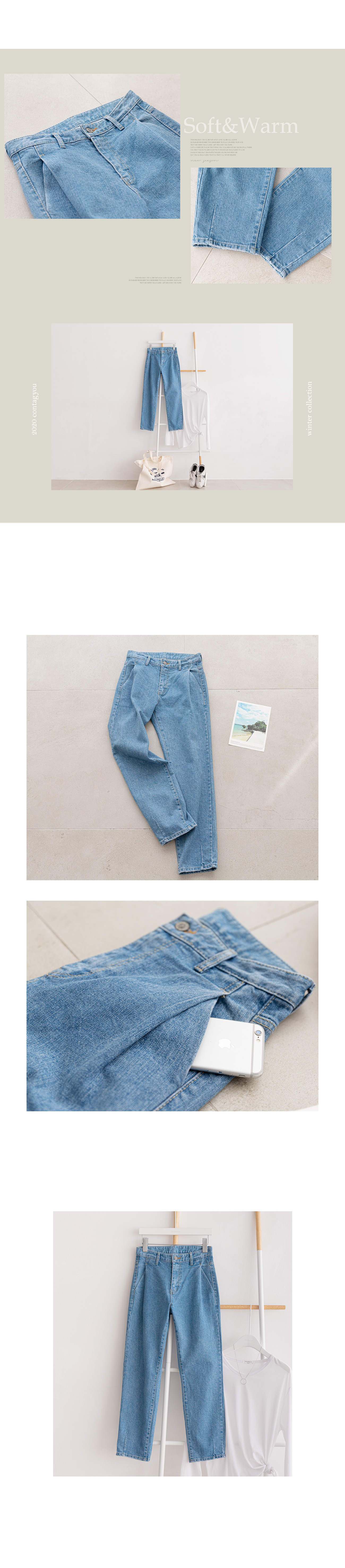 허리부터 발목까지 슬림하게 떨어지는 배기 스타일 데님 팬츠에요~