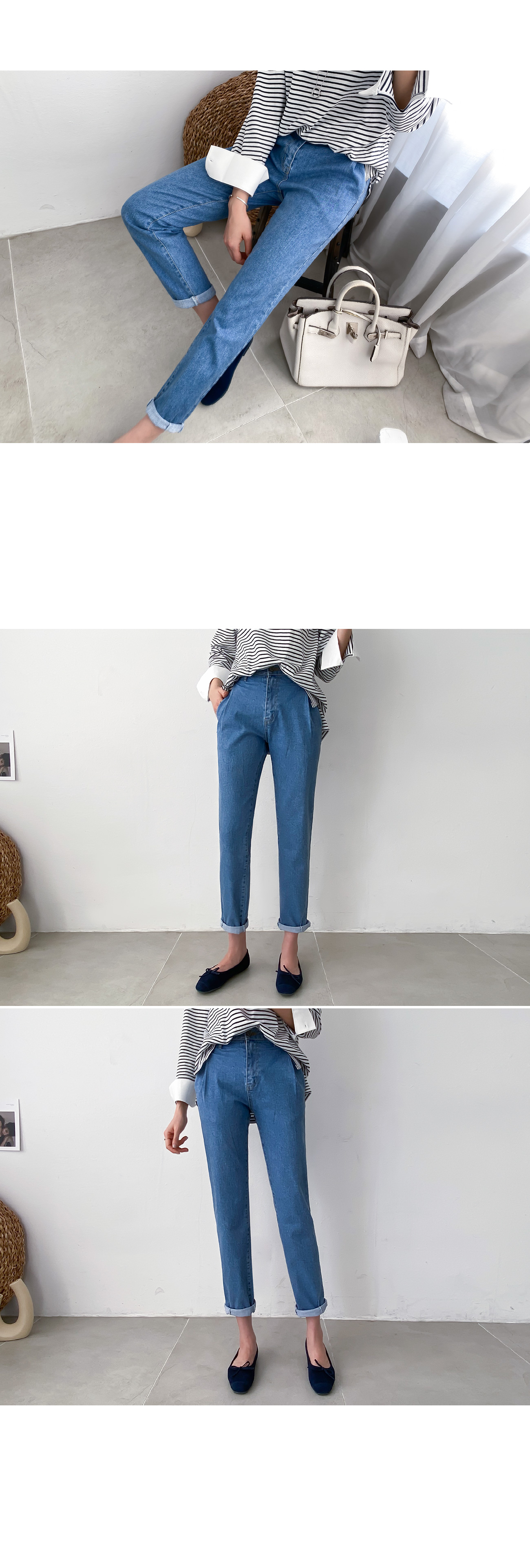 배기핏으로 편안하게 즐기실 수 있는 데님팬츠로 롤업해서