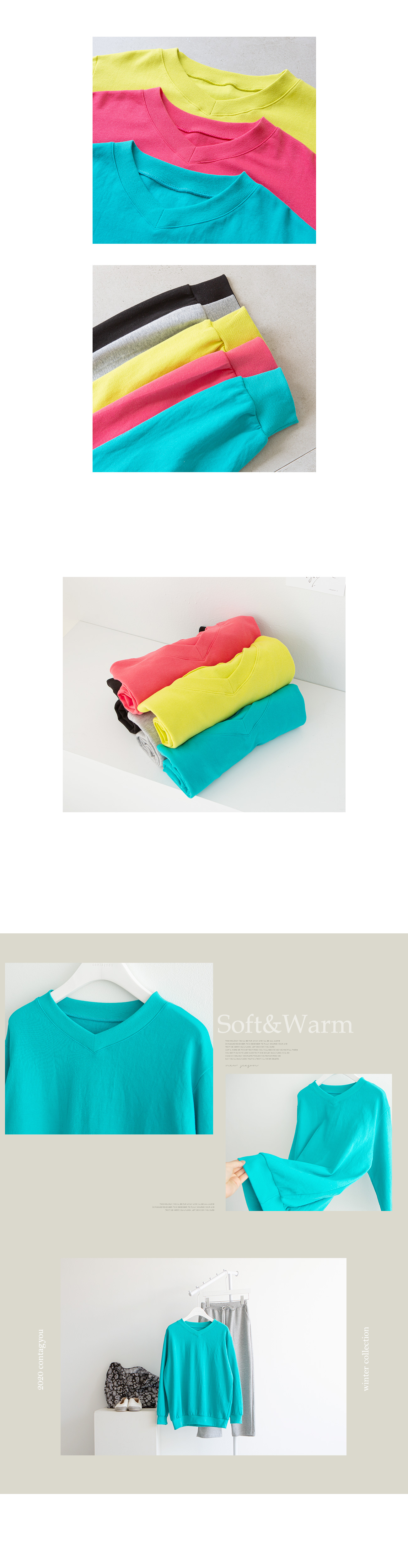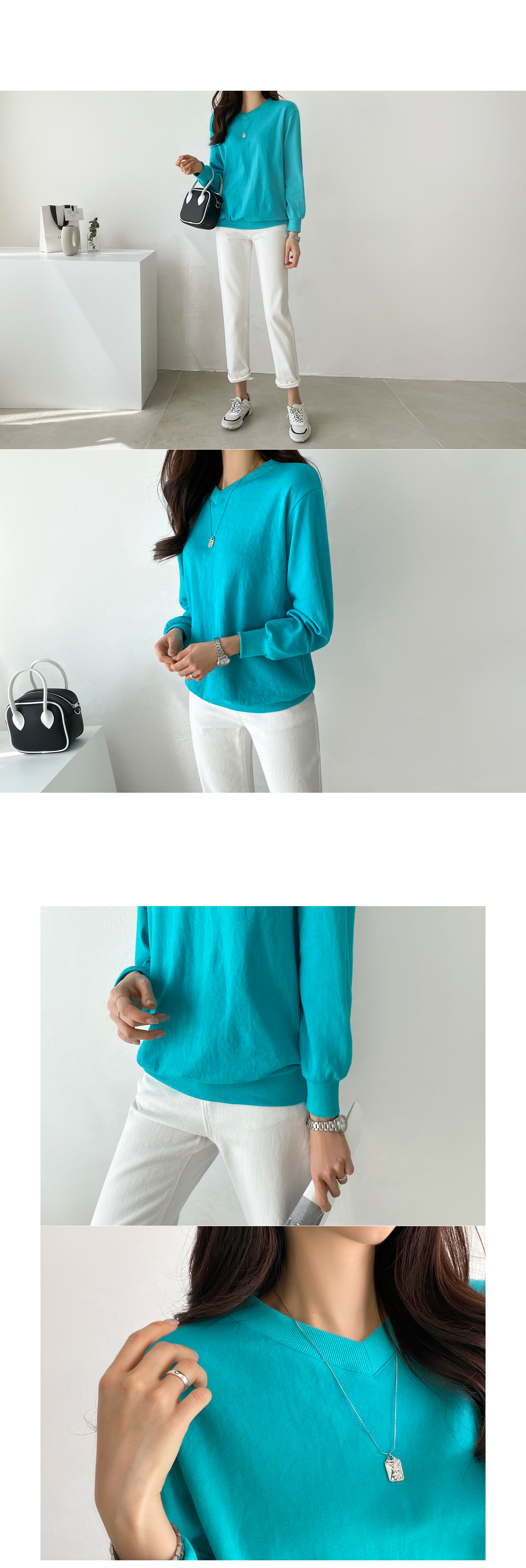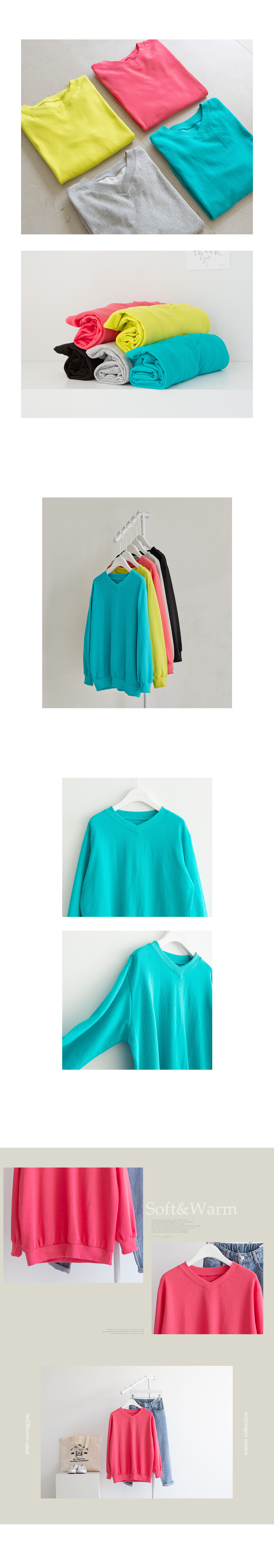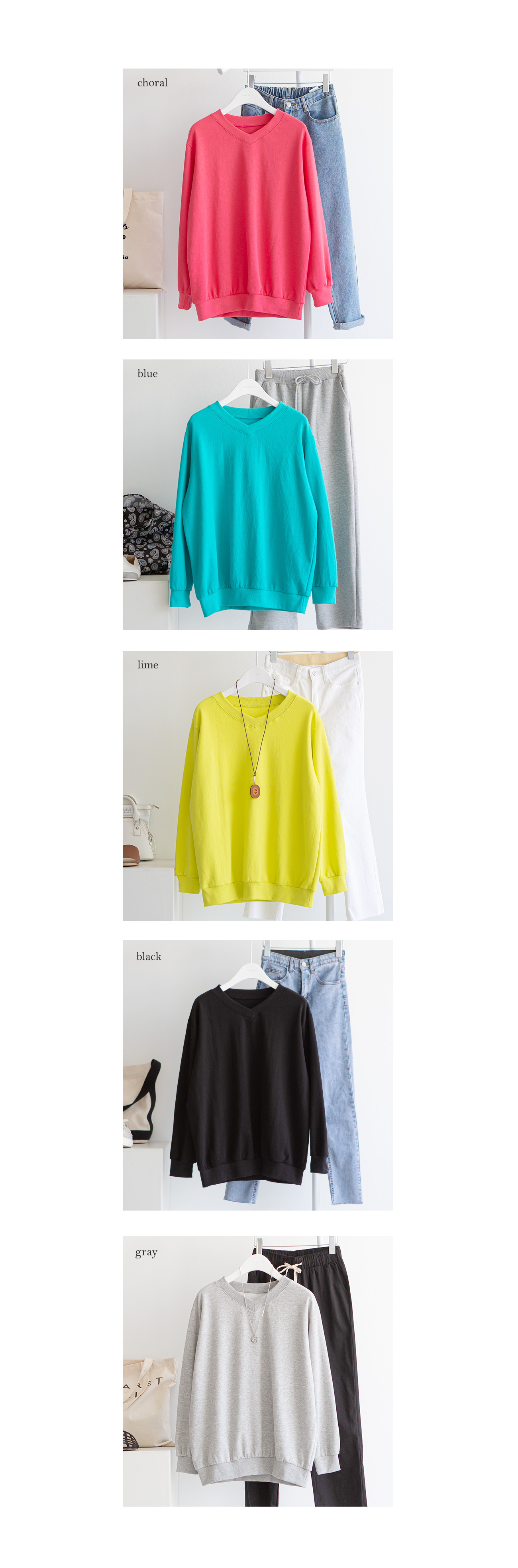 시보리로 처리된 깔끔한 브이넥으로 목선을 편안하고