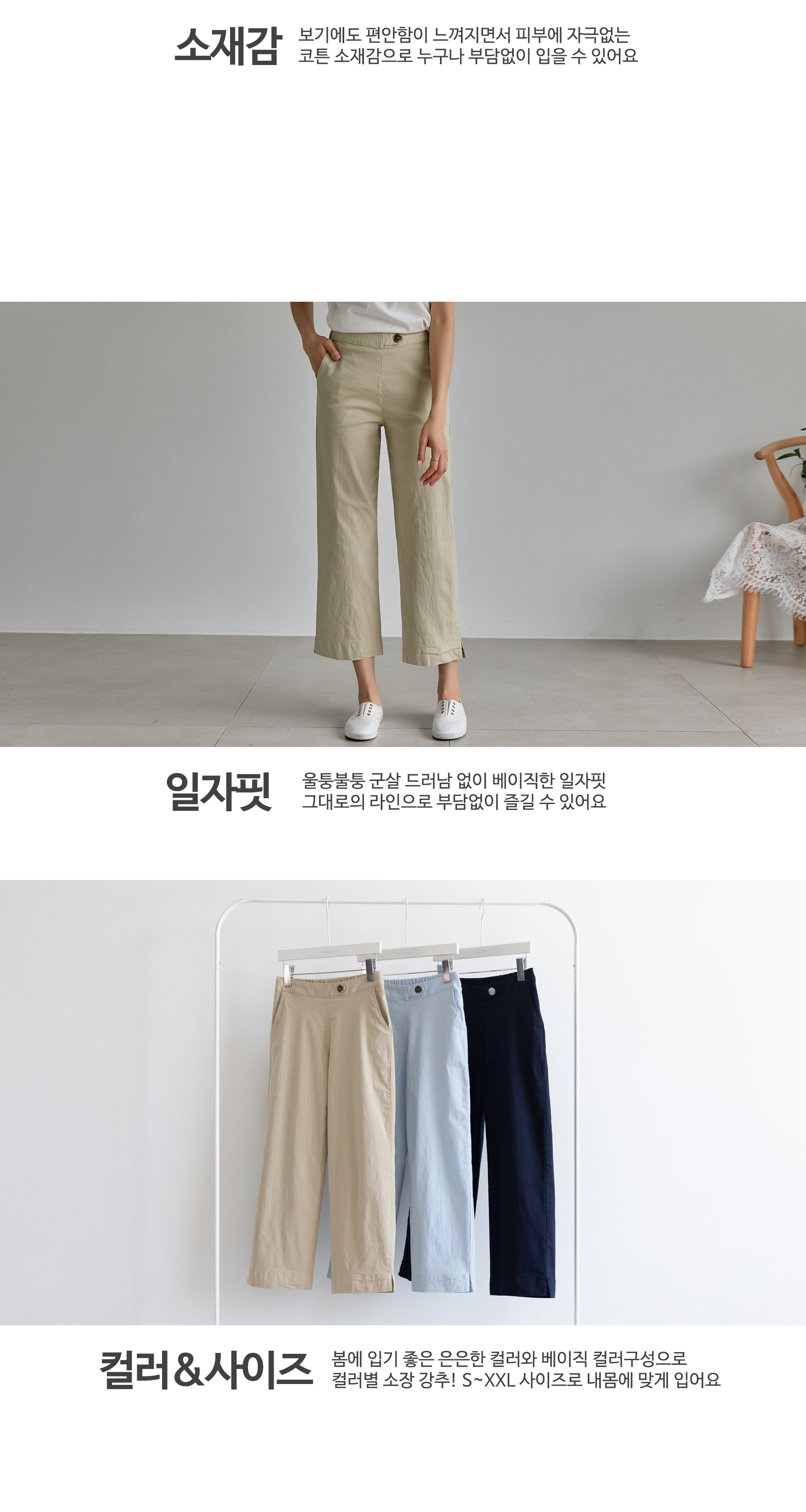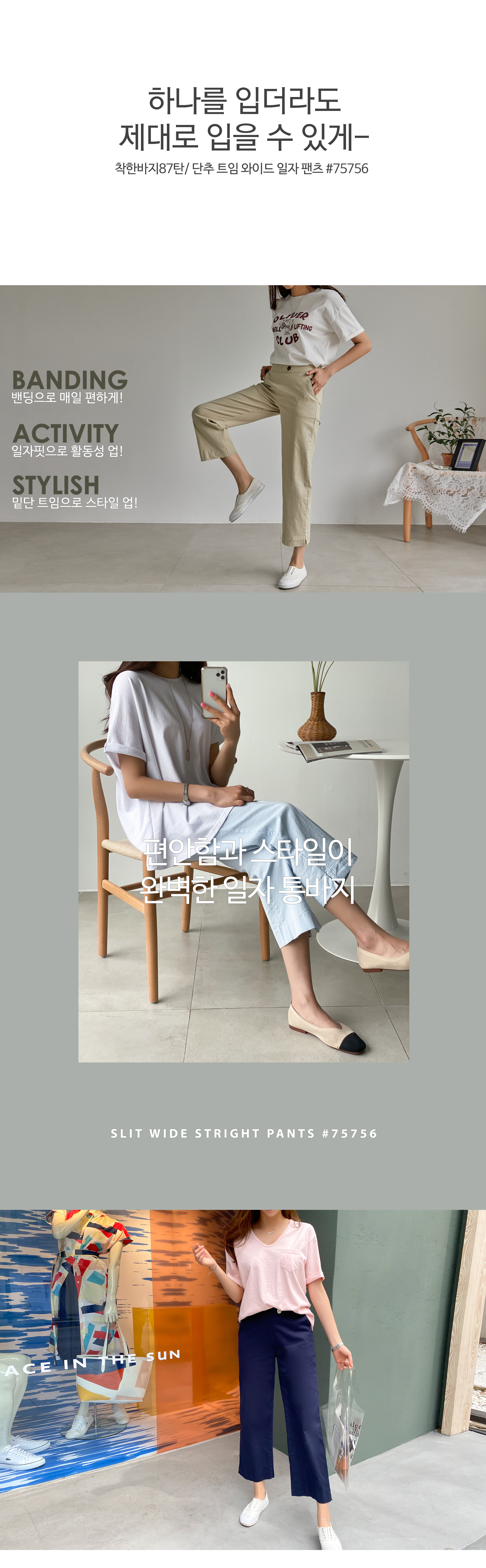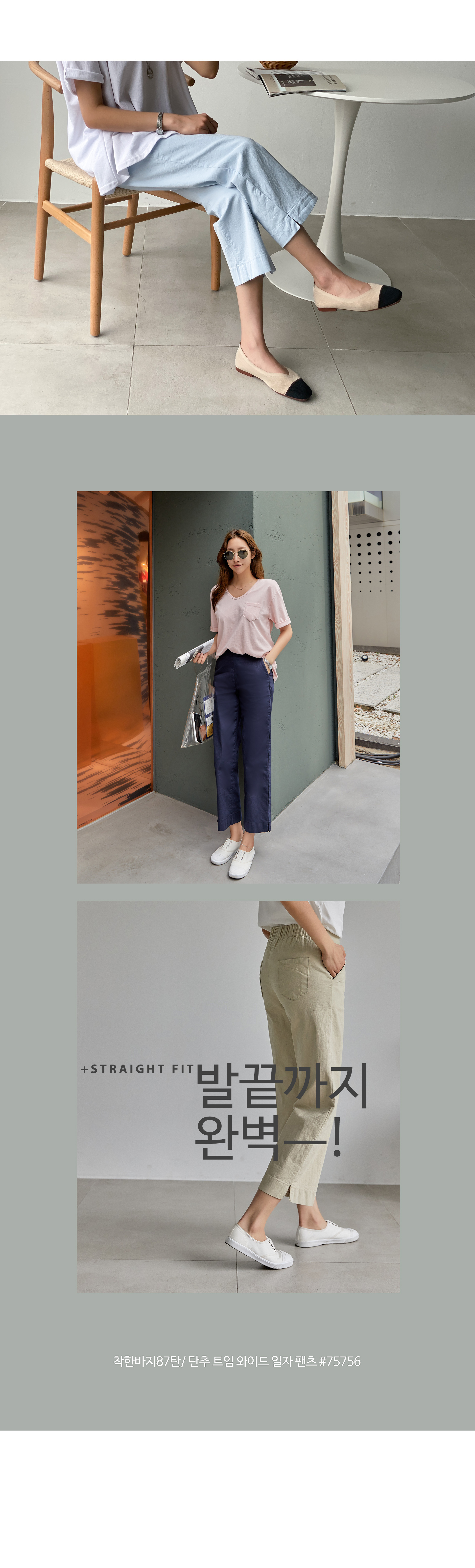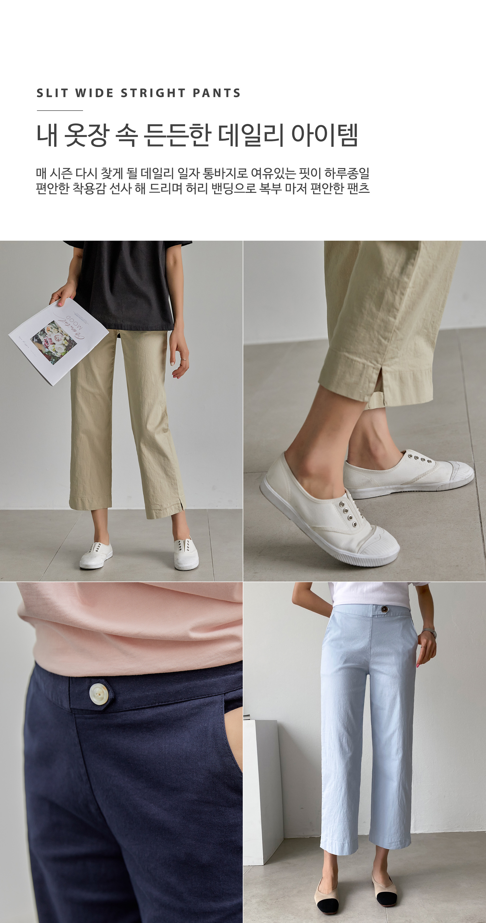 착한바지87탄/ 단추 트임 와이드 일자 팬츠 #75756
