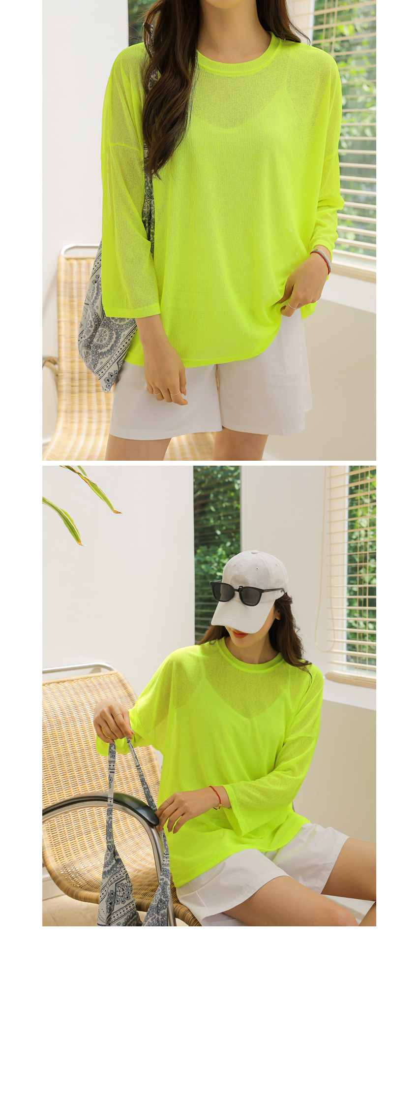 전체적으로 아주 여유로운 핏에 시원한 느낌이라 비치웨어로도 좋을거 같아요