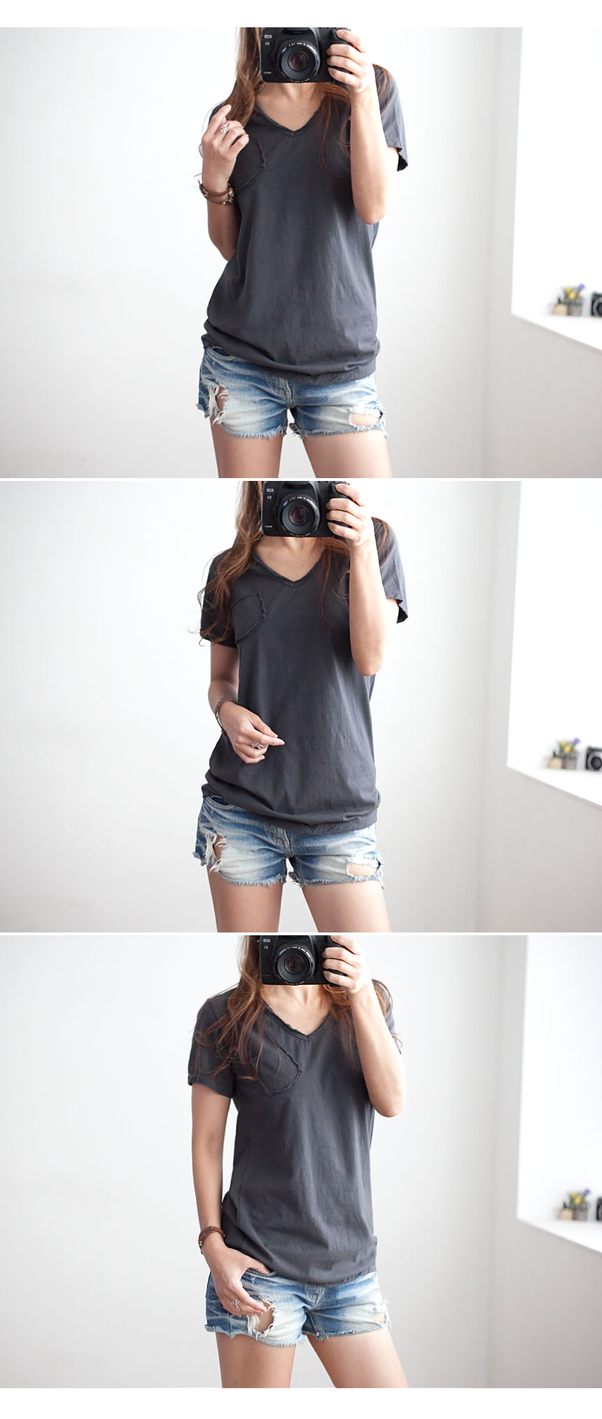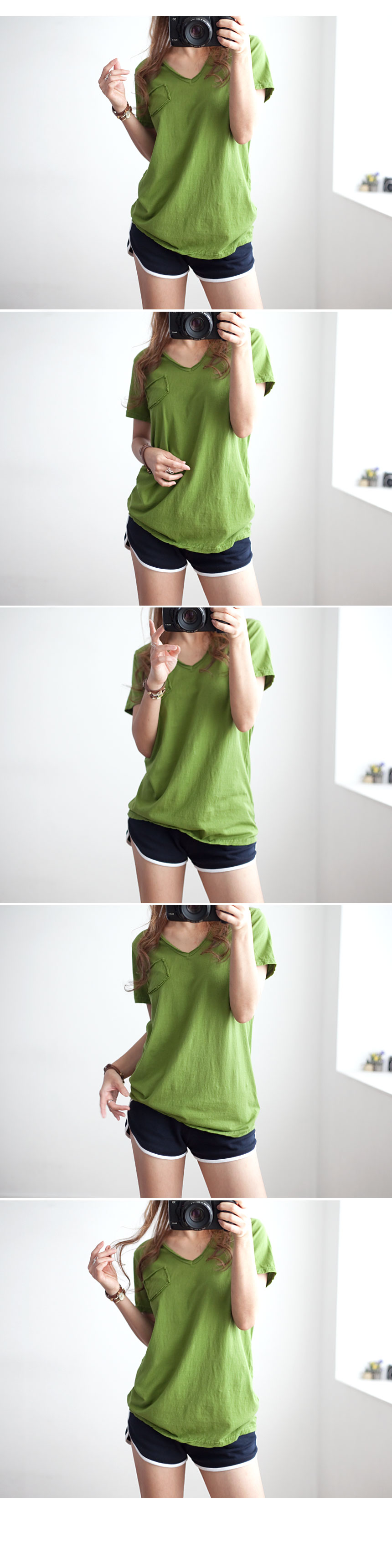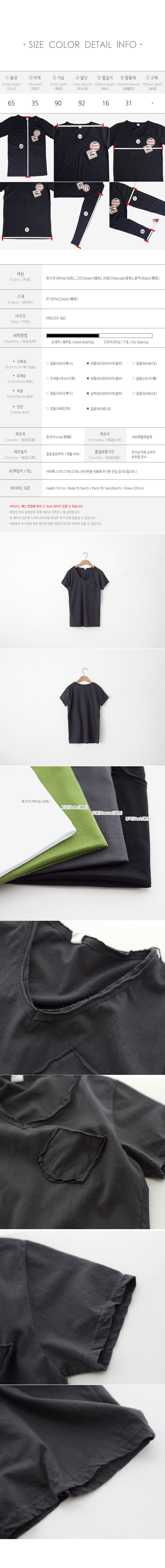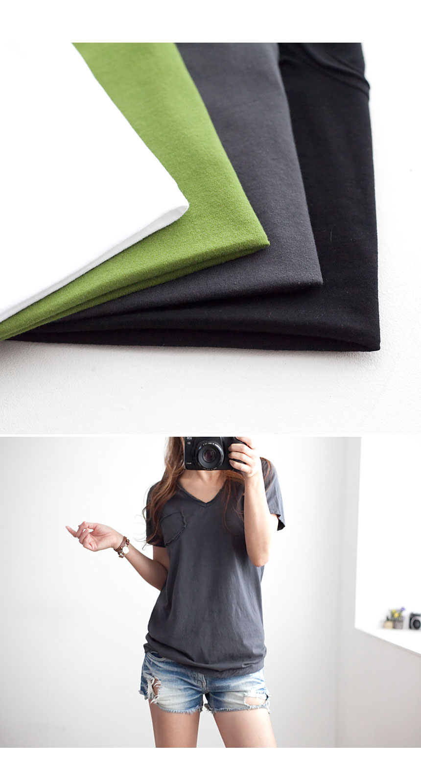 칼집 브이넥 포켓 반팔티