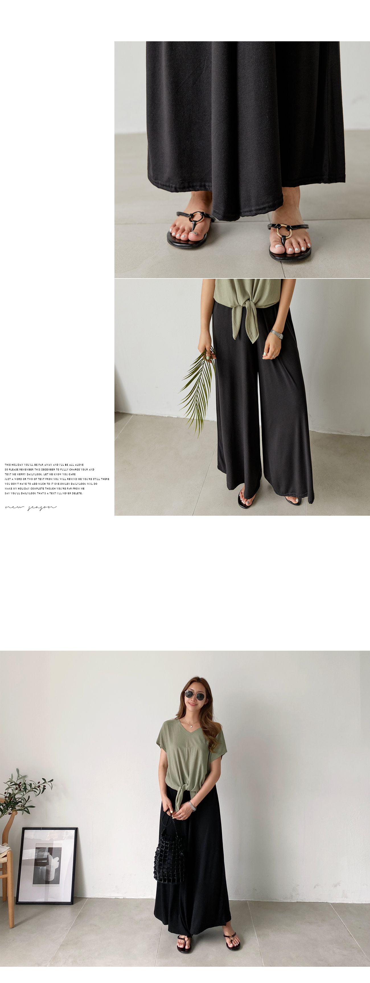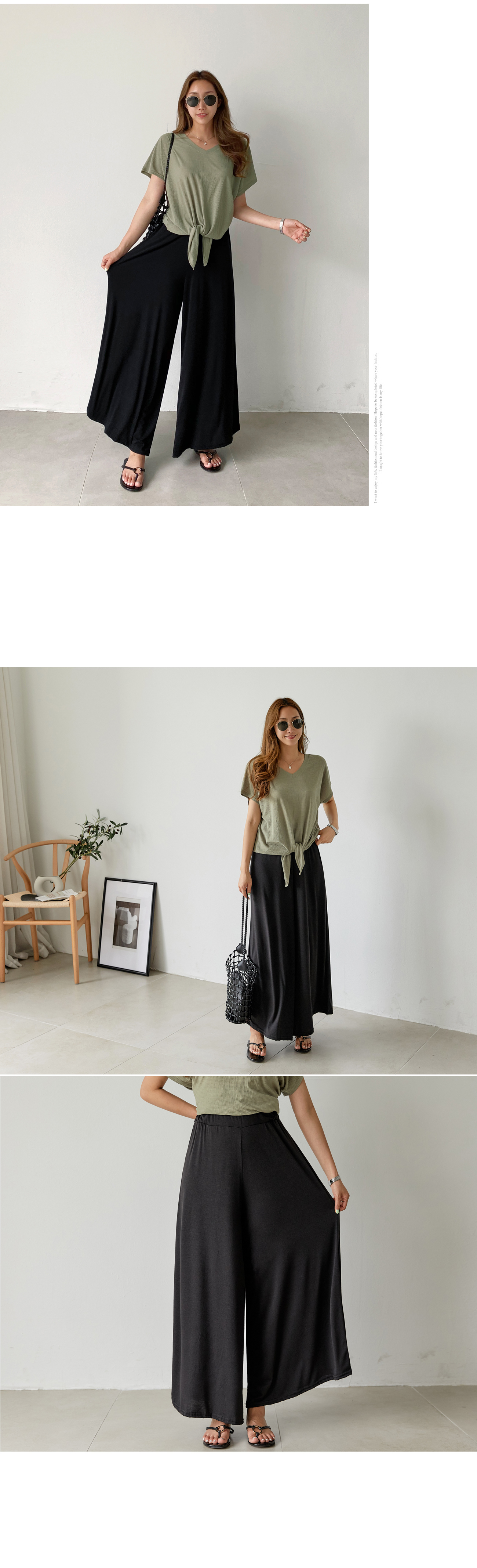 데일리로 즐기기 좋은 와이드한 핏의 밴딩팬츠예요.