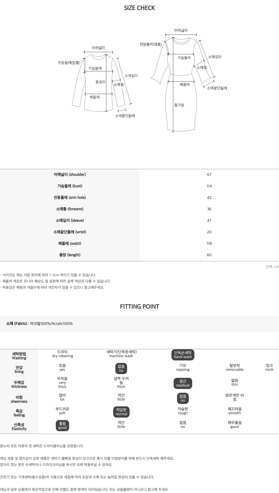 네크라인,밑단,소맷단 부분 탄탄한 시보리 처리를 해주어
