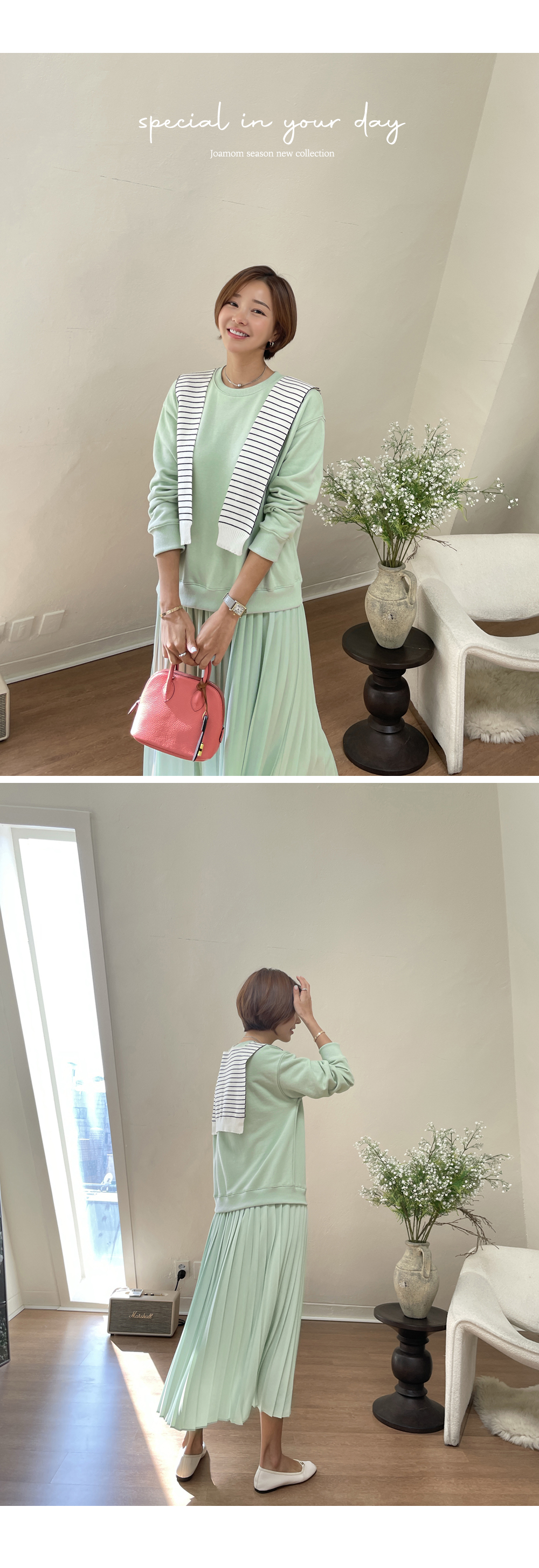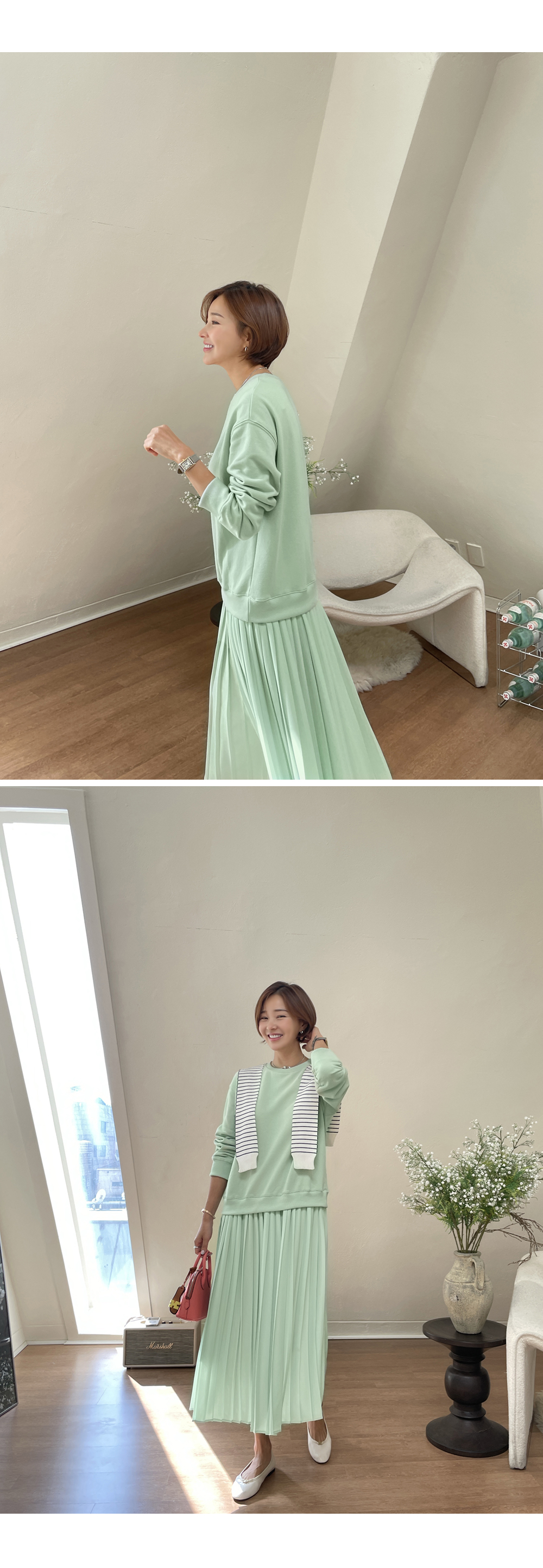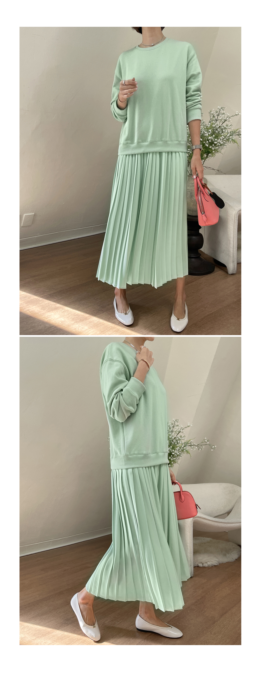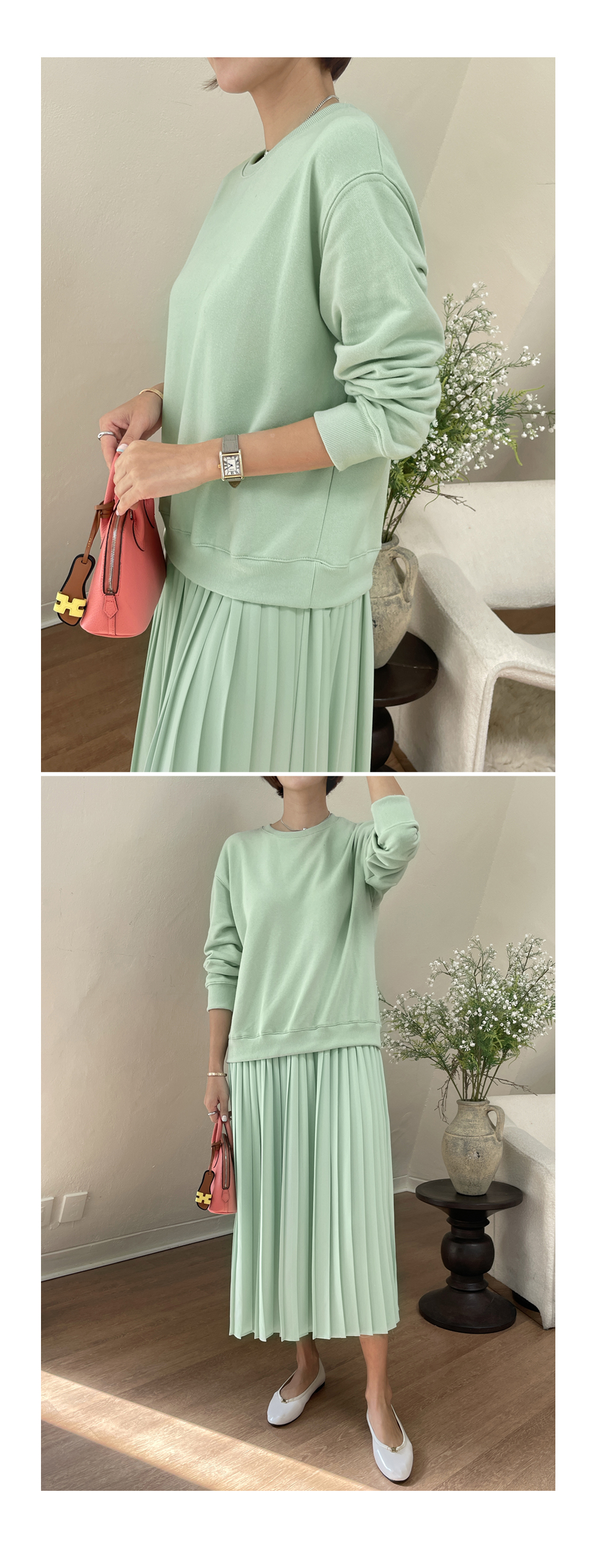 착용감 편한 맨투맨에 챠르르 떨어지는 플리츠라인이