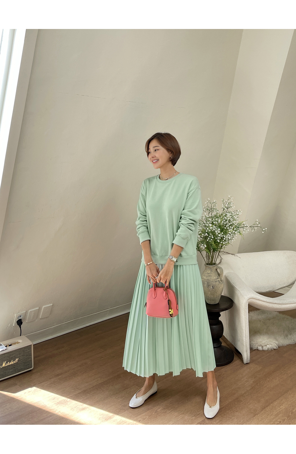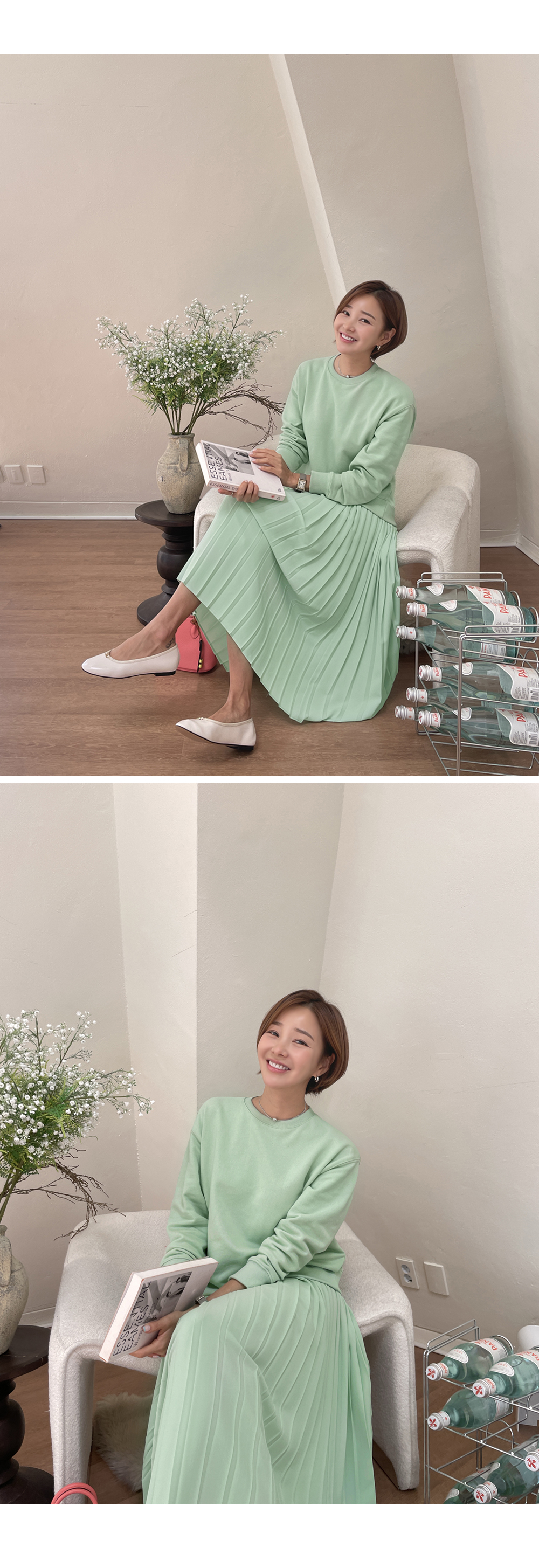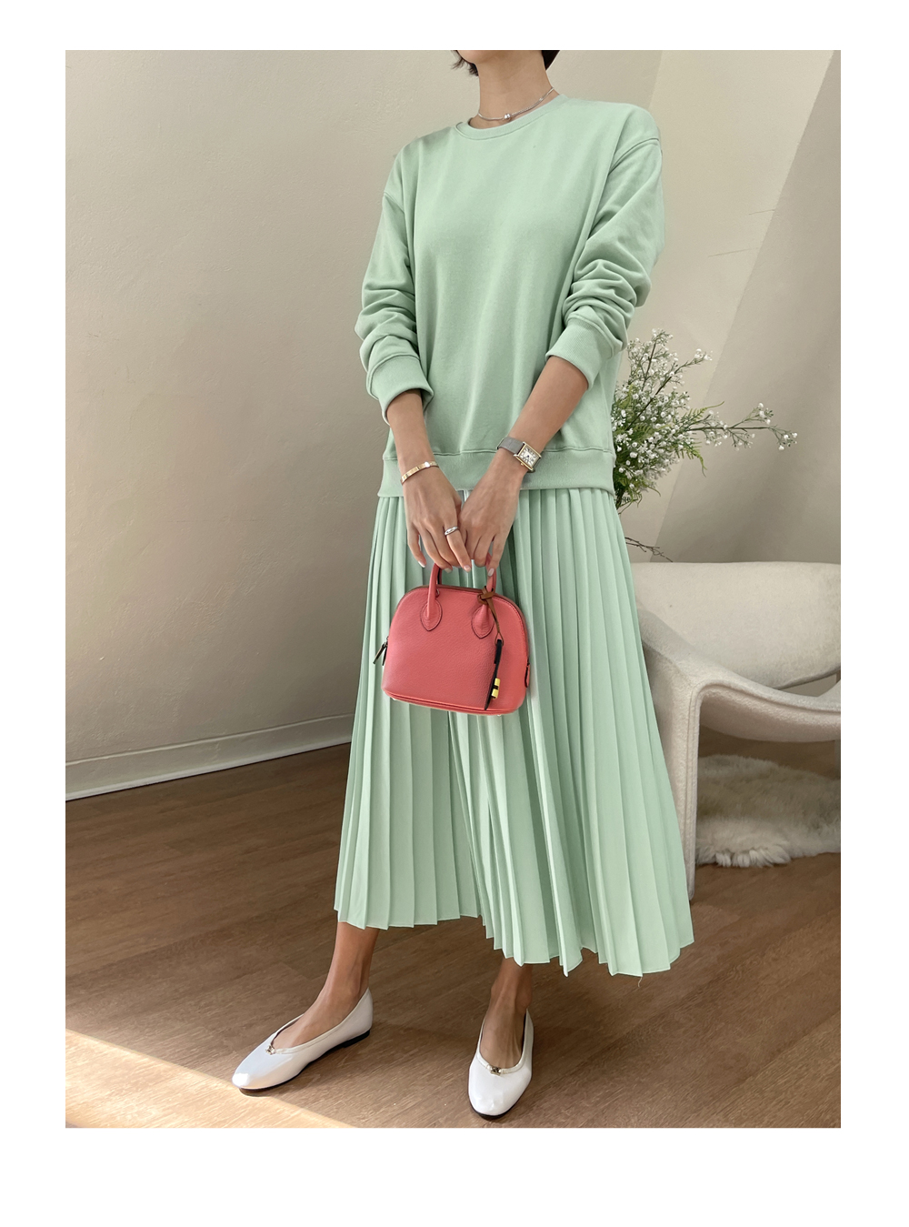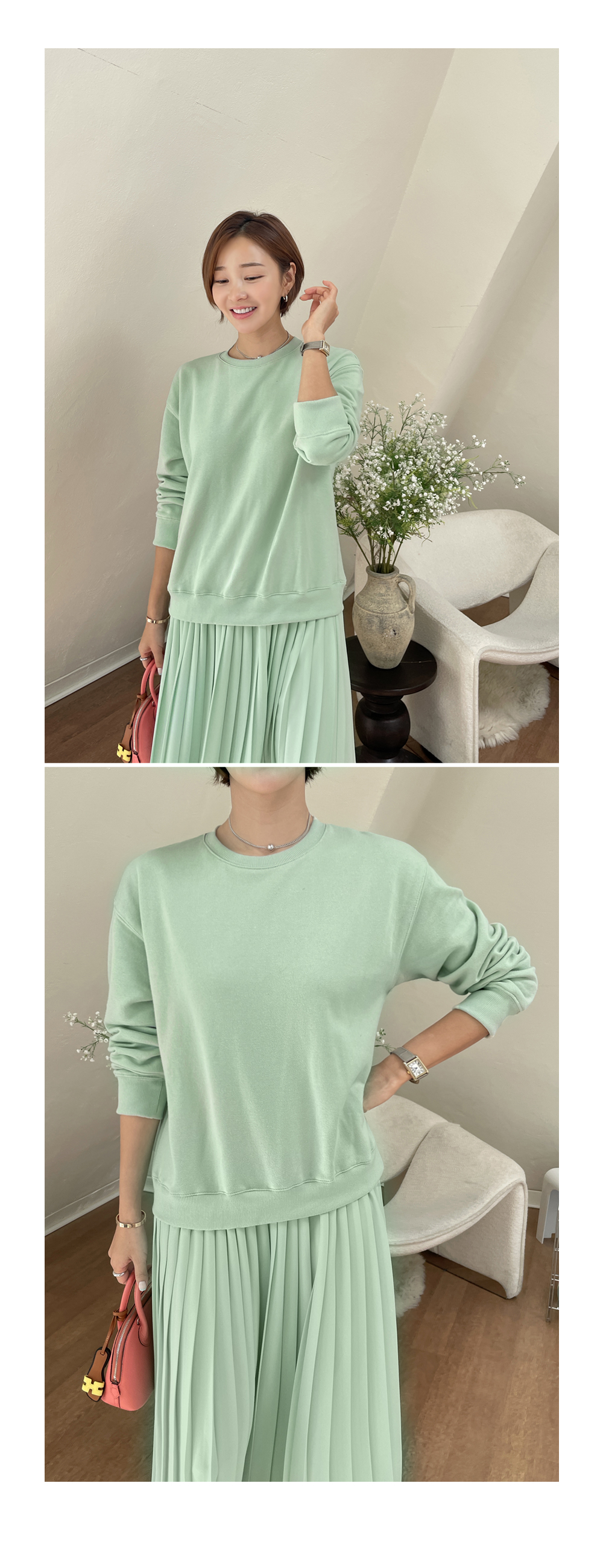 착용감 편한 맨투맨에 챠르르 떨어지는 플리츠라인이