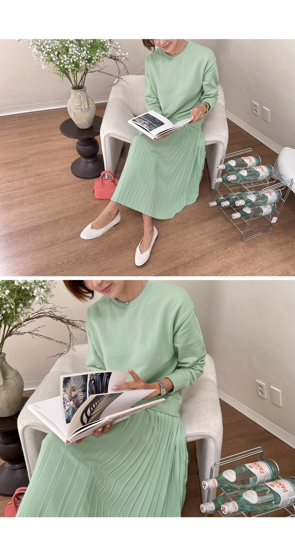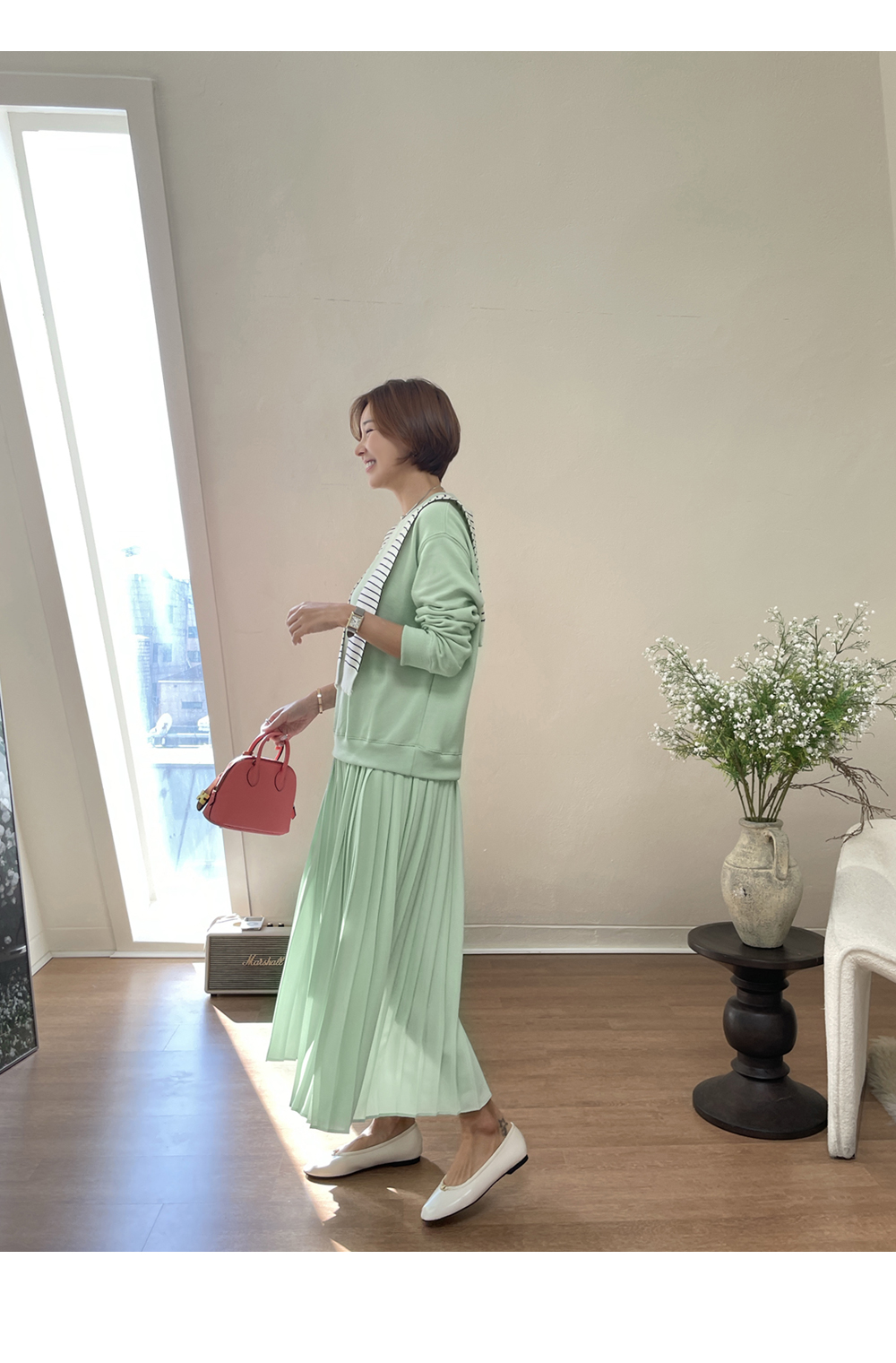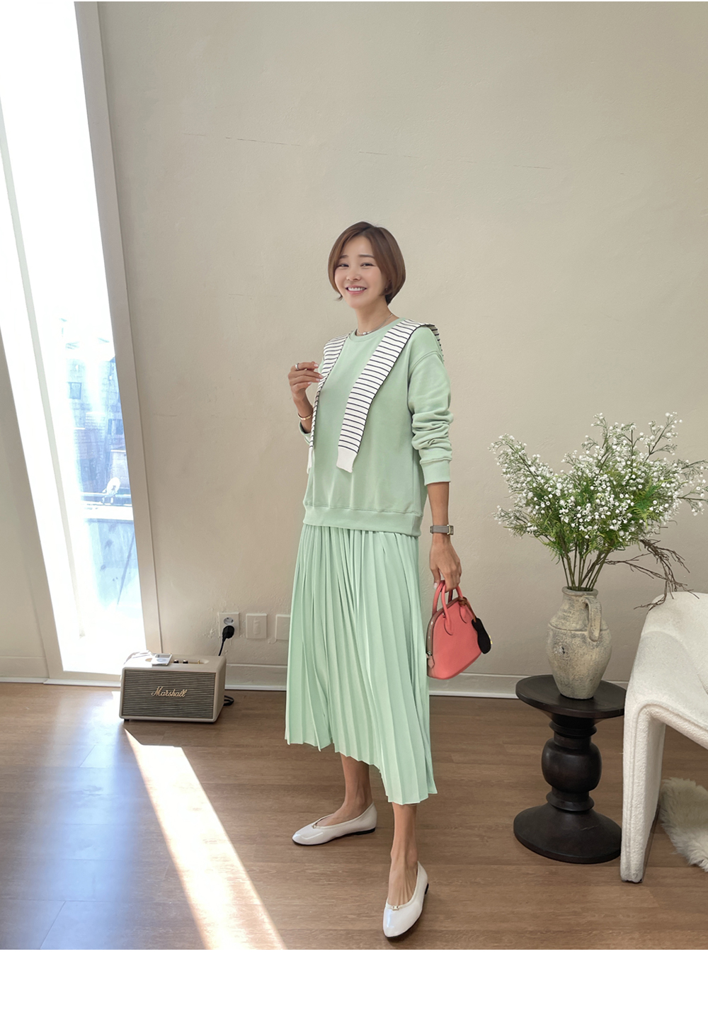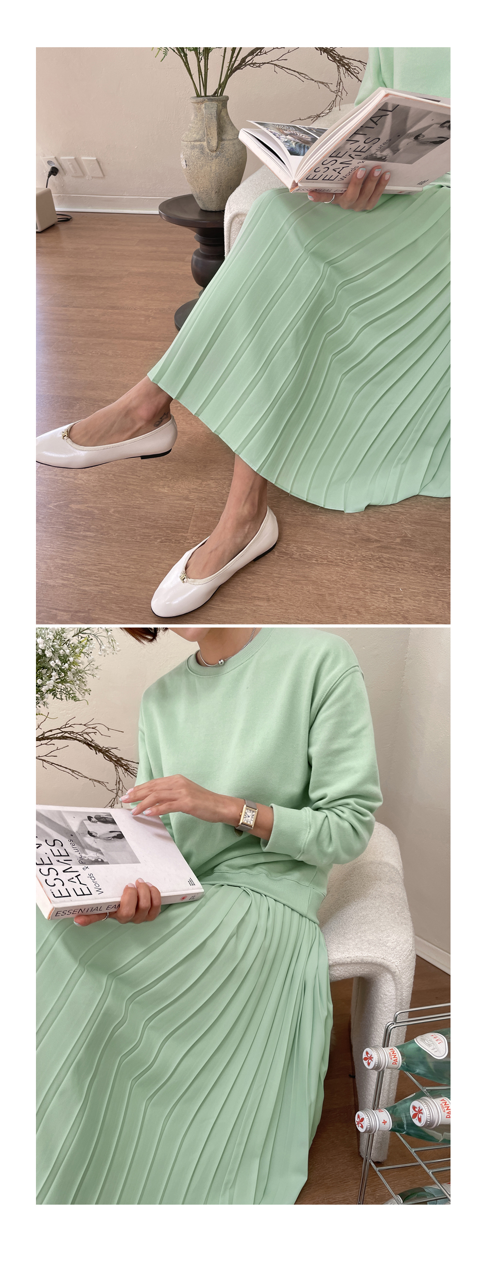 착용감 편한 맨투맨에 챠르르 떨어지는 플리츠라인이