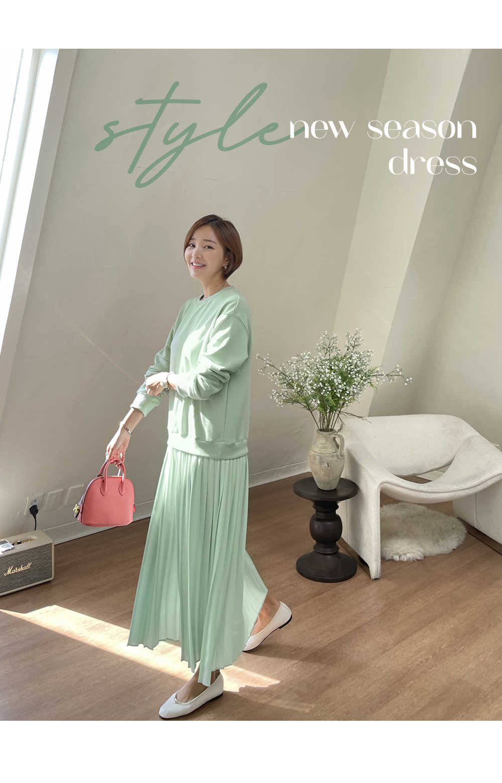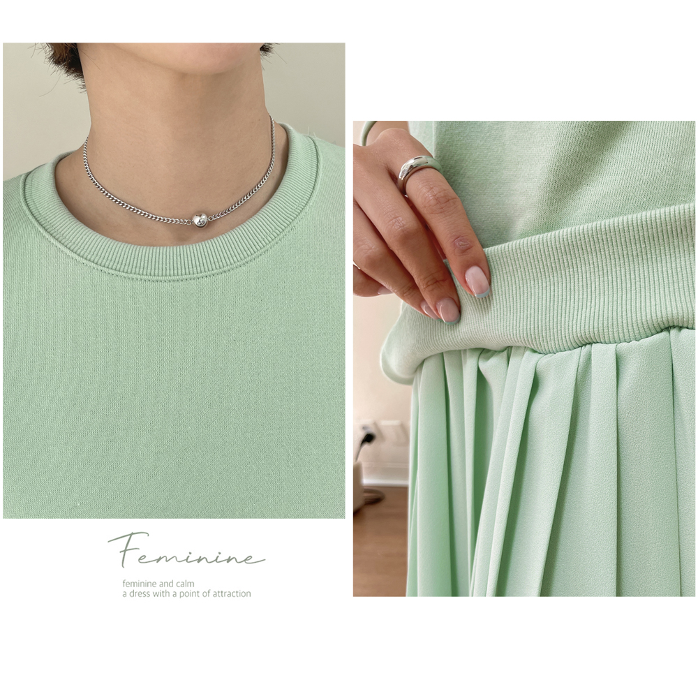 플리츠 스커트와 맨투맨이 붙어있는 원피스에요~