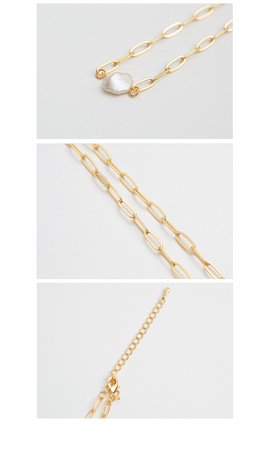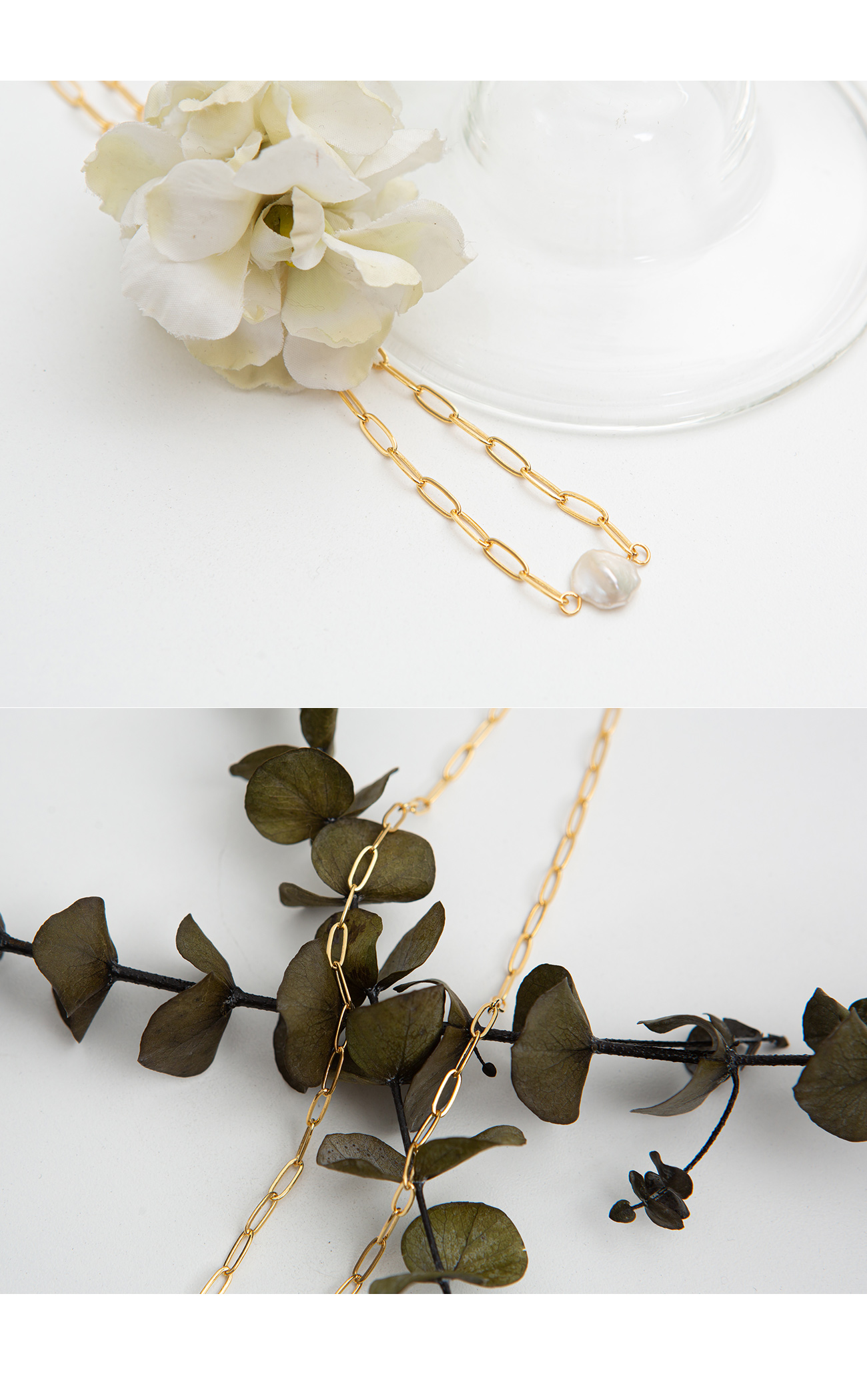 차분한 컬러감의 진주 포인트가 들어간 체인 목걸이 소개할게요