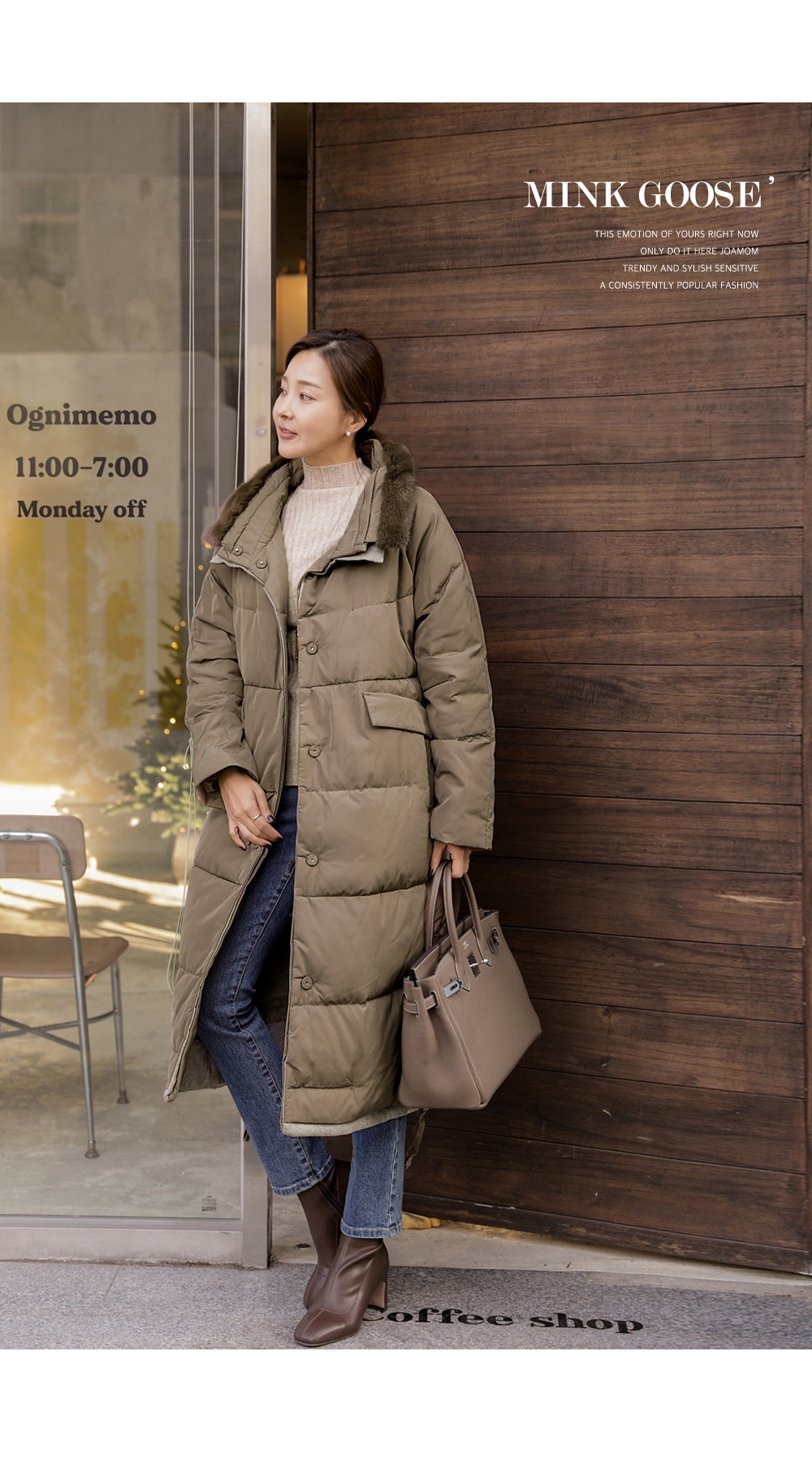 넥부분의 리얼밍크 장식으로 고급스러운 분위기까지~