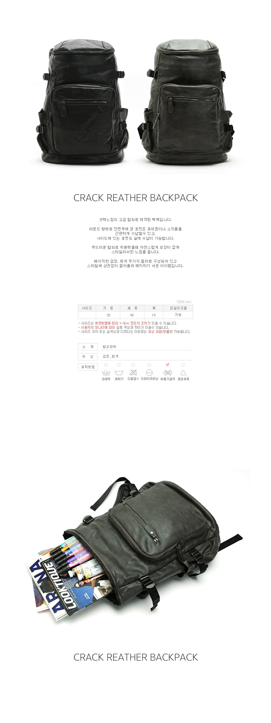 GBP-002 크랙 레더 백팩 캐주얼배낭 학생가방 트래블백