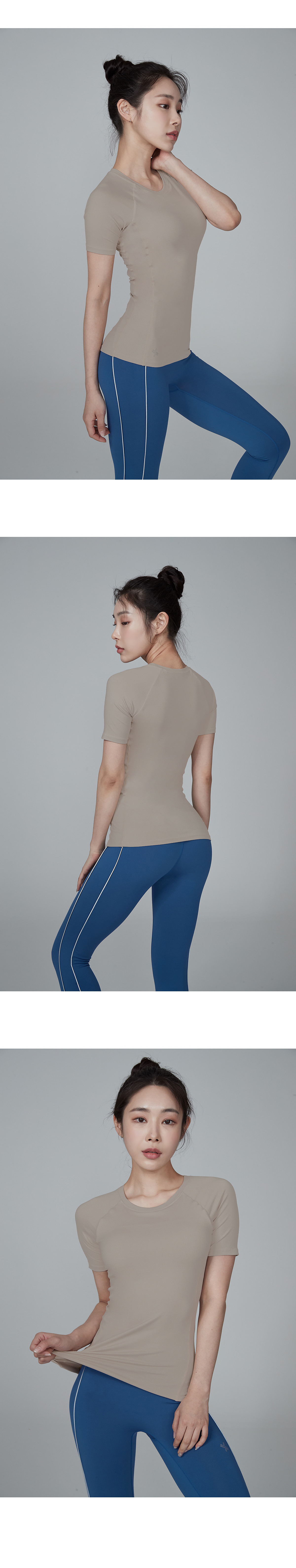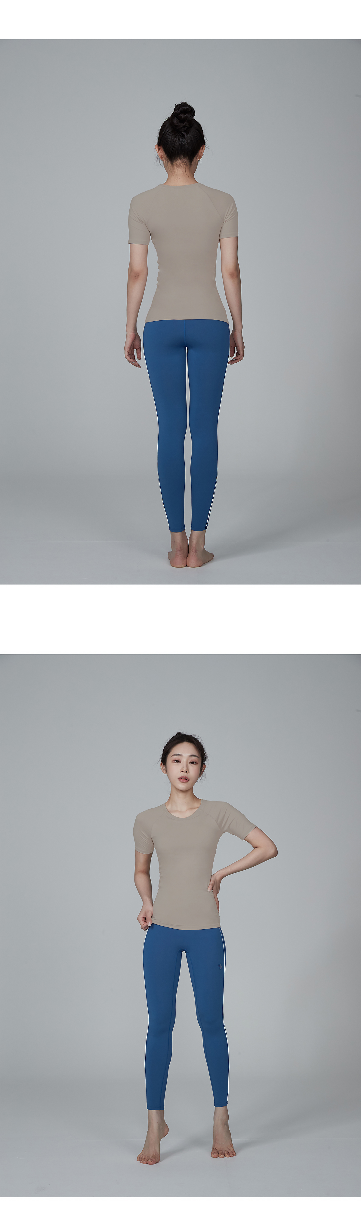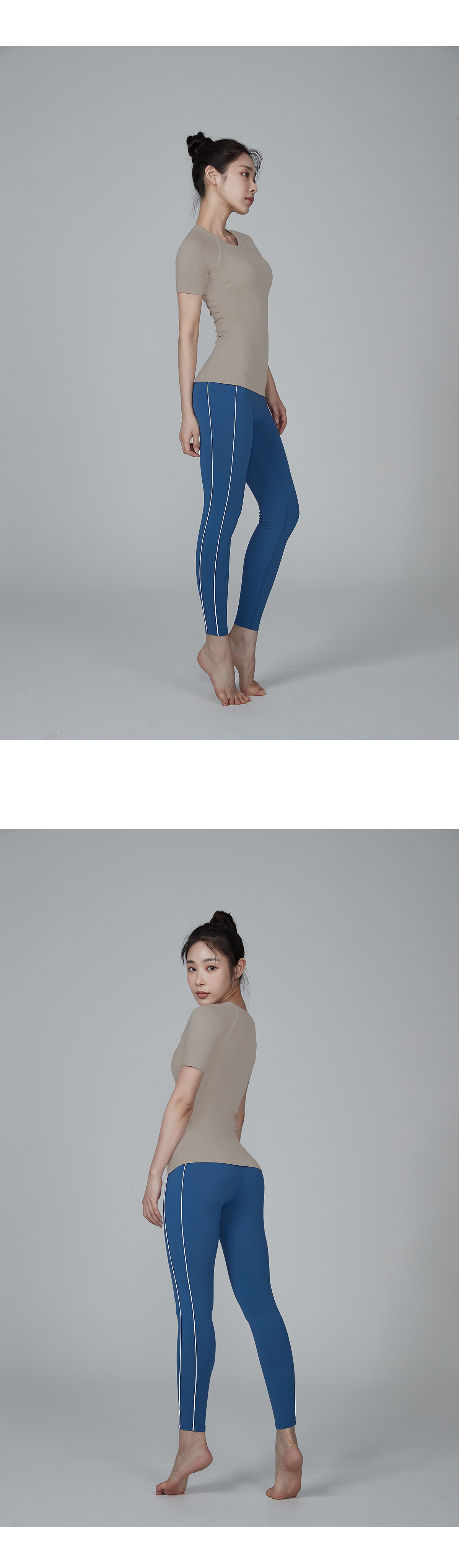 겉감은 코튼과 같은 부드러운 촉감의 고급 요가복 소재인