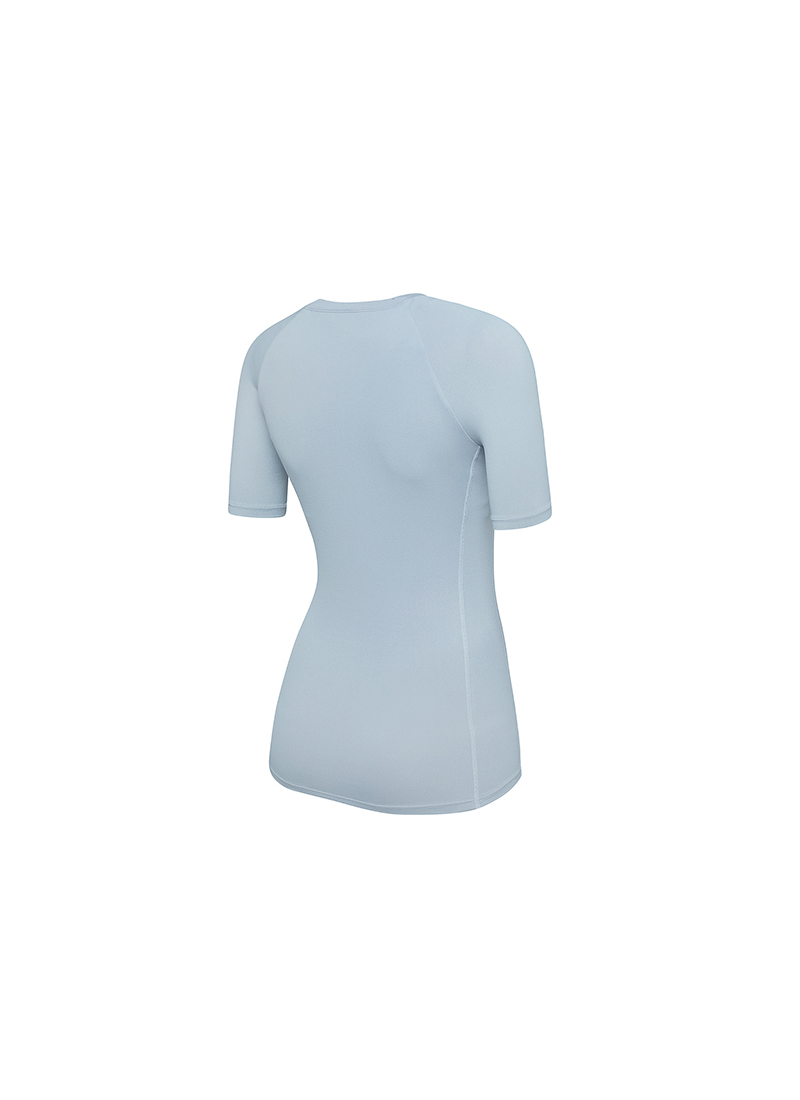 쇄골 라인을 따라 깔끔하게 떨어지는 라운드넥 디자인에