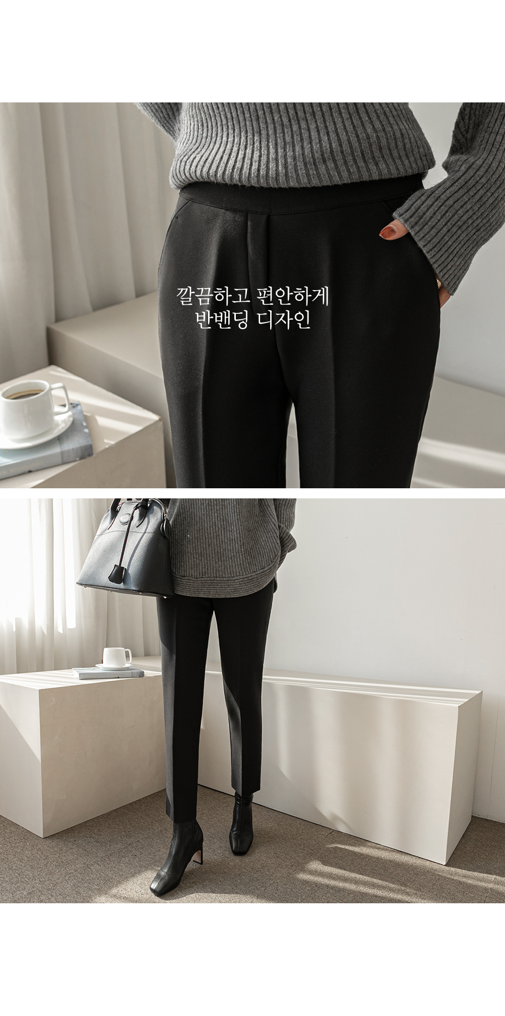 살짝 여유있는 일자핏, 반밴딩으로