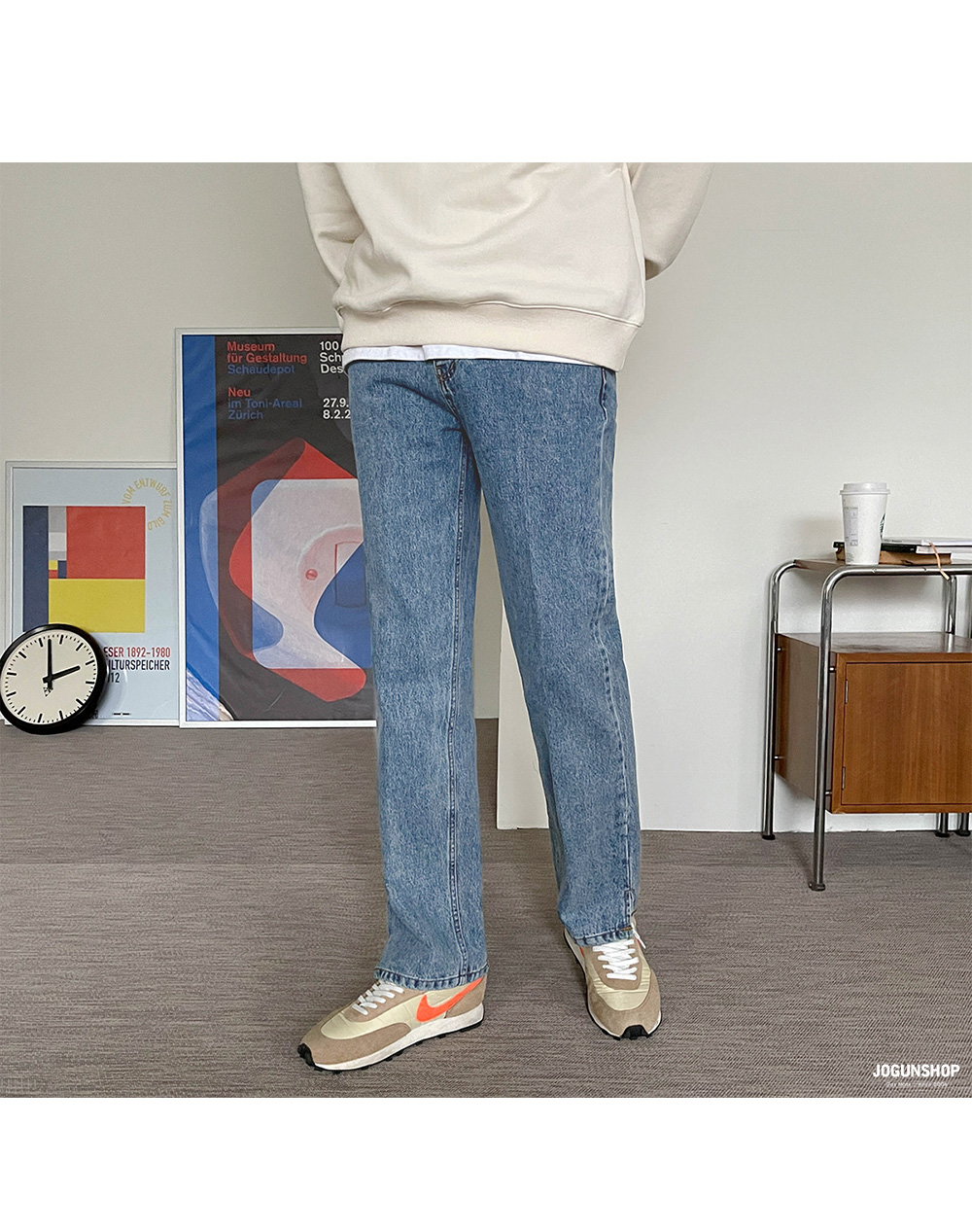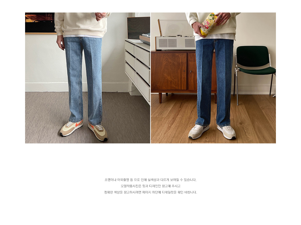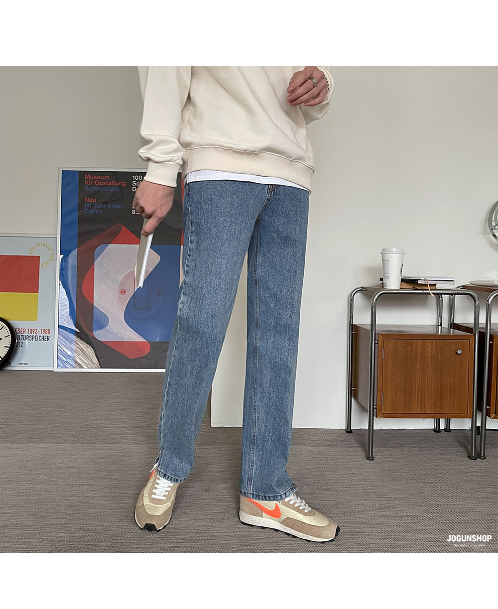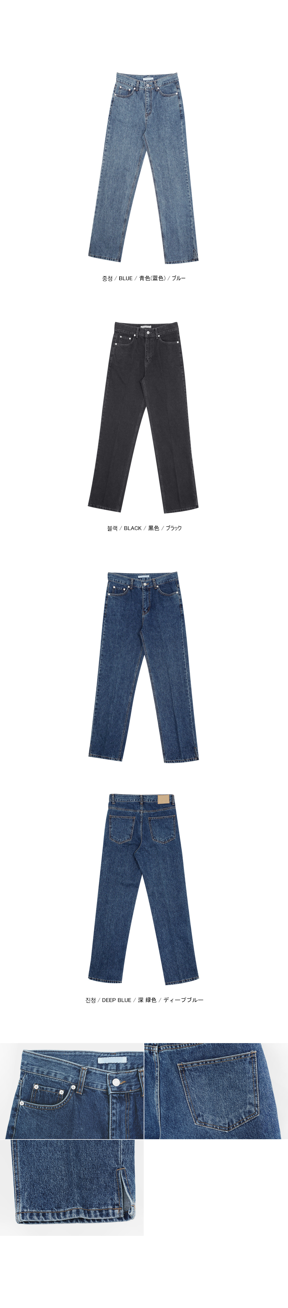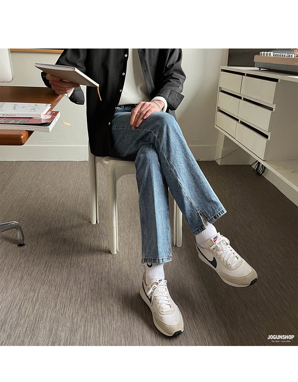 트렌디한 세미 와이드 핏과 양쪽 밑단 트임이 특징인 제품입니다.