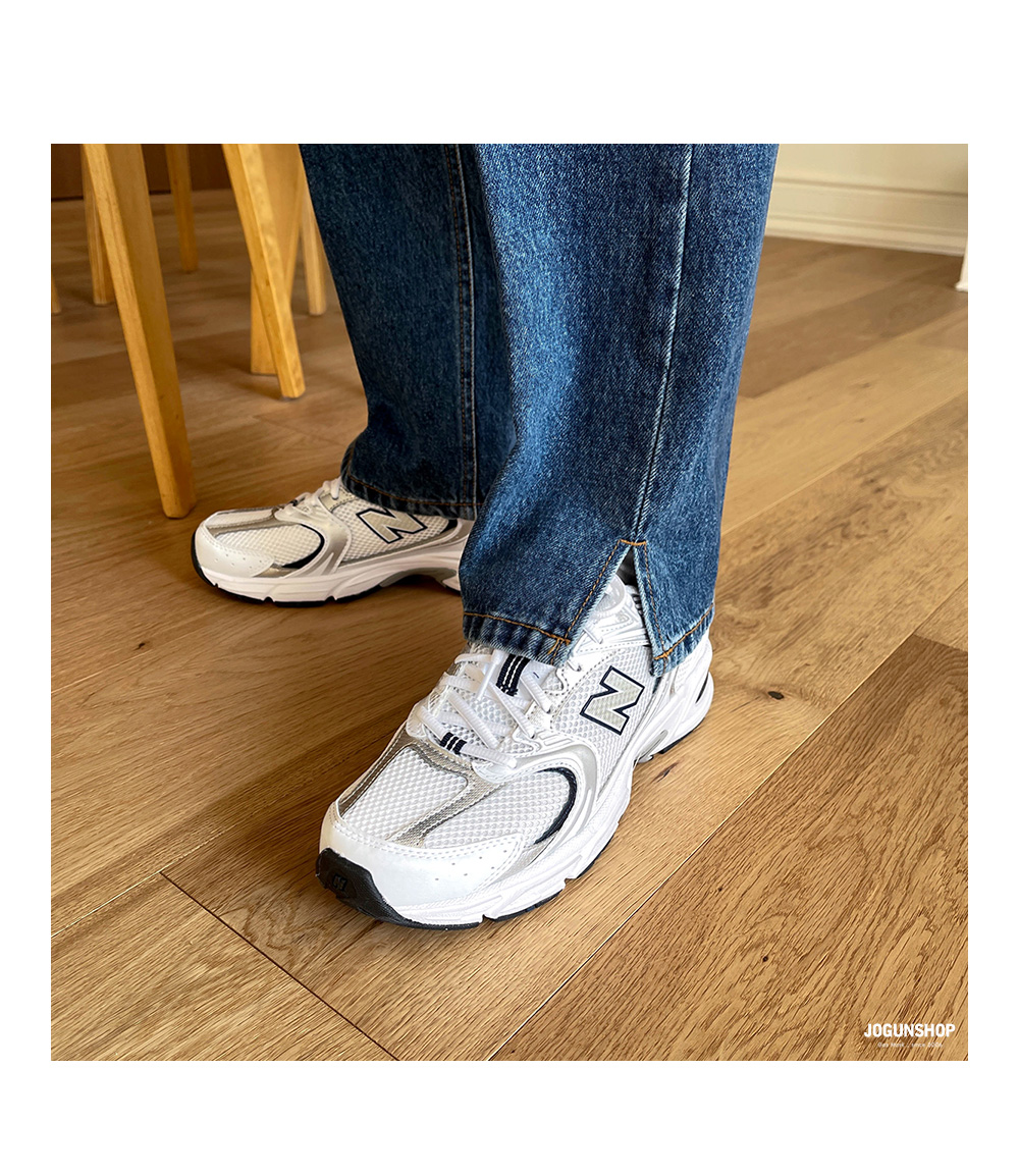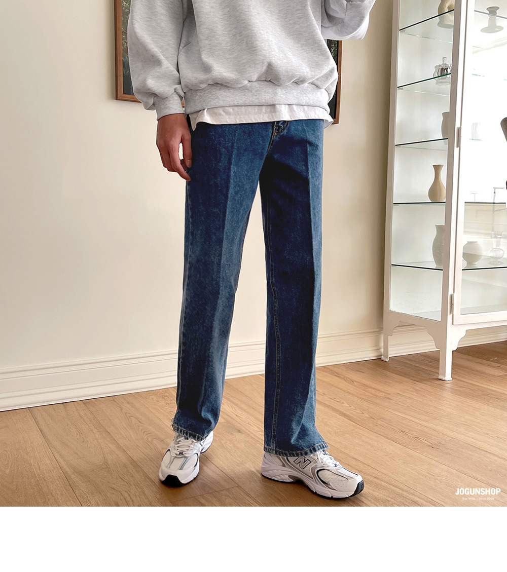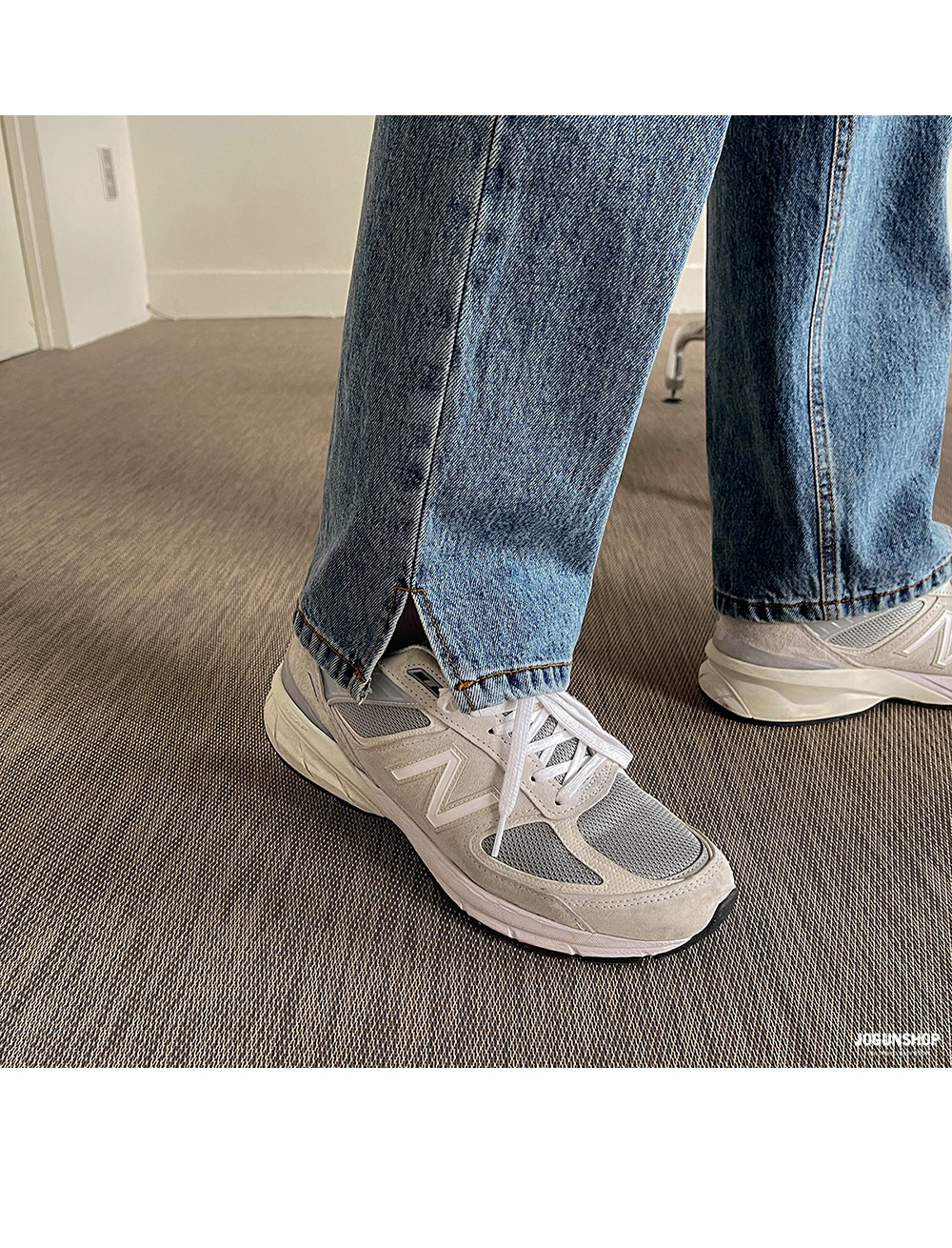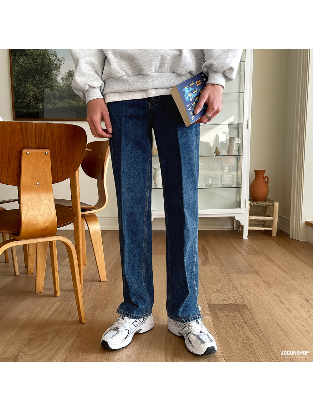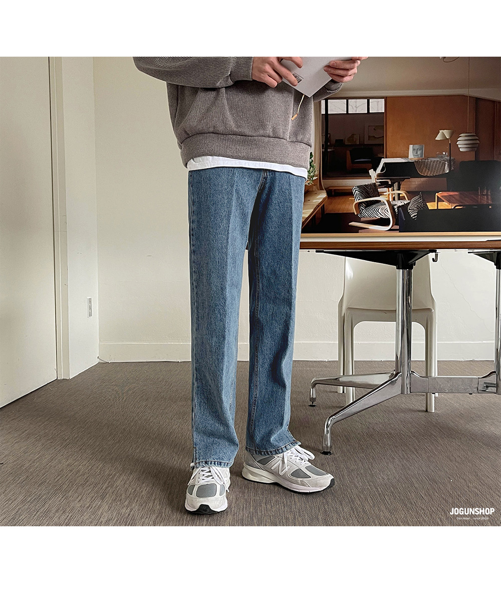 트렌디한 세미 와이드 핏과 양쪽 밑단 트임이 특징인 제품입니다.