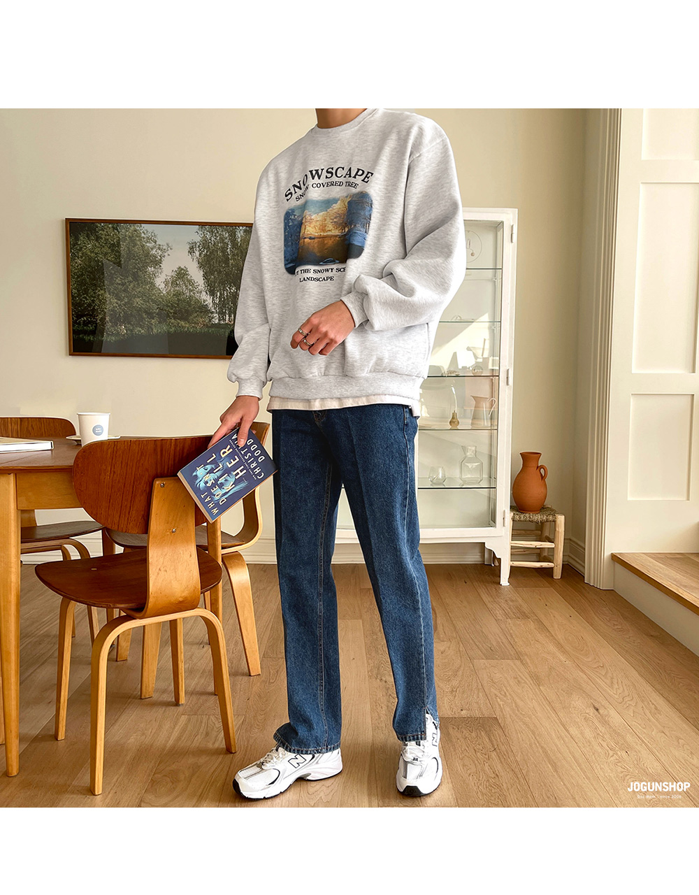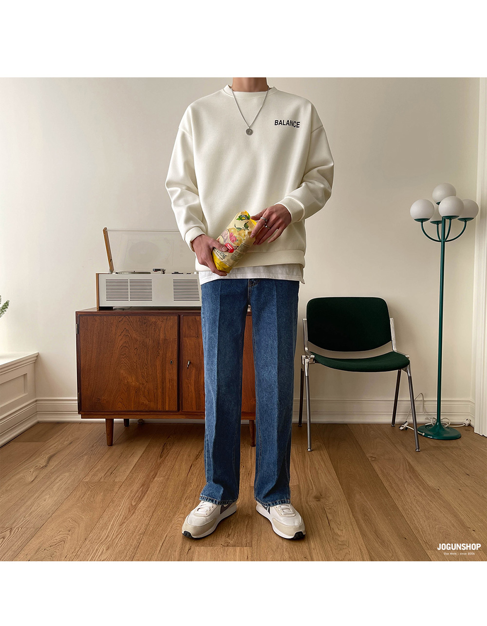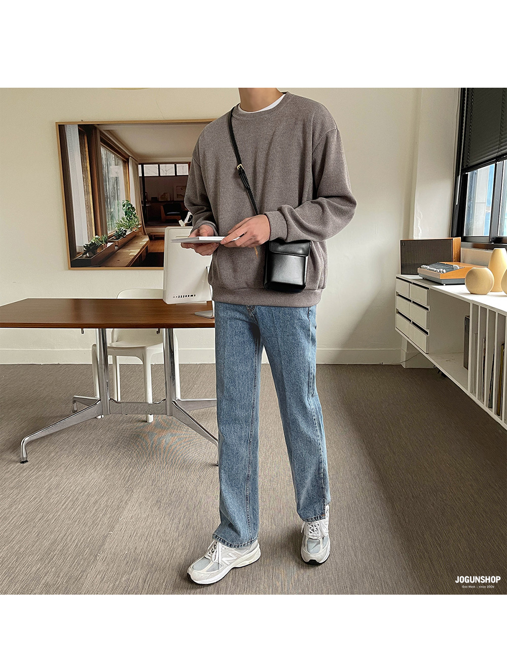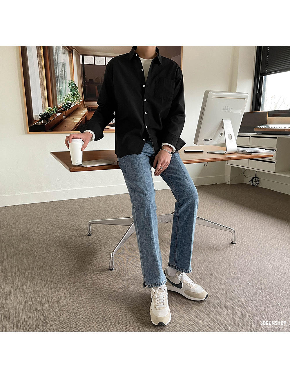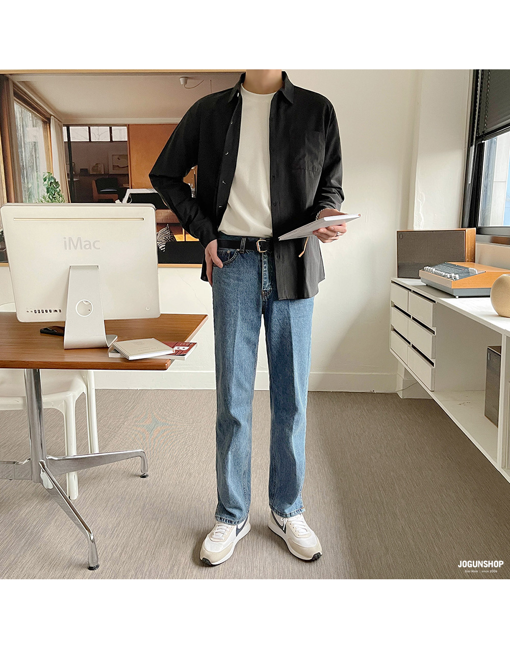 트렌디한 세미 와이드 핏과 양쪽 밑단 트임이 특징인 제품입니다.