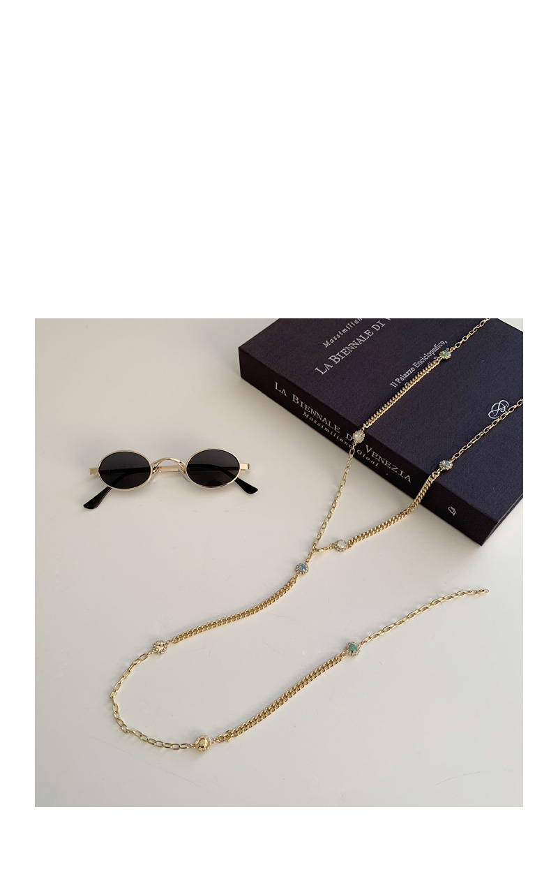 굵기가 다른 체인과 컬러풀한 컬러 보석 디테일로