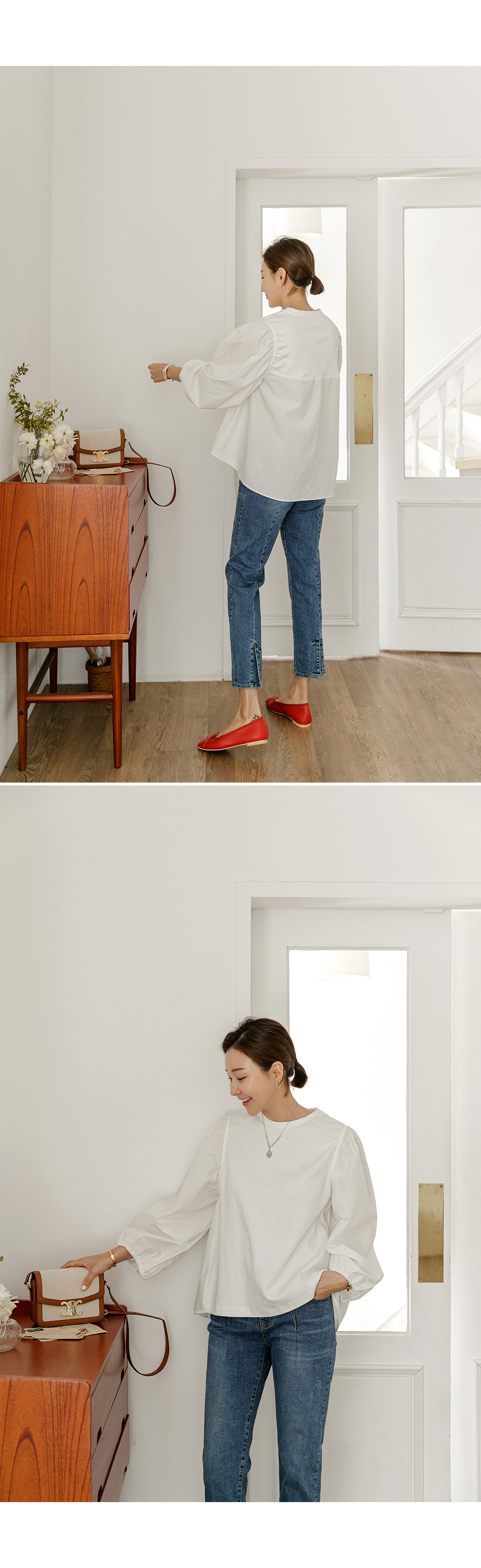 티셔츠처럼 편하게 툭~ 입어주기 좋은 블라우스예요!