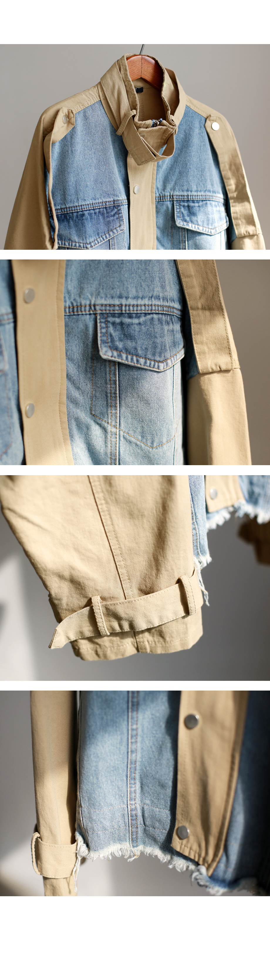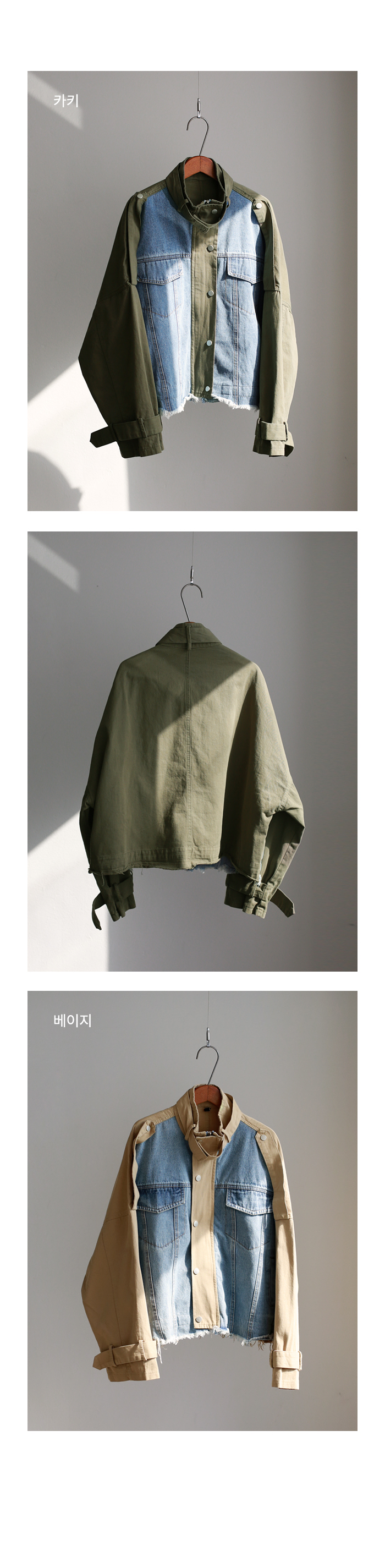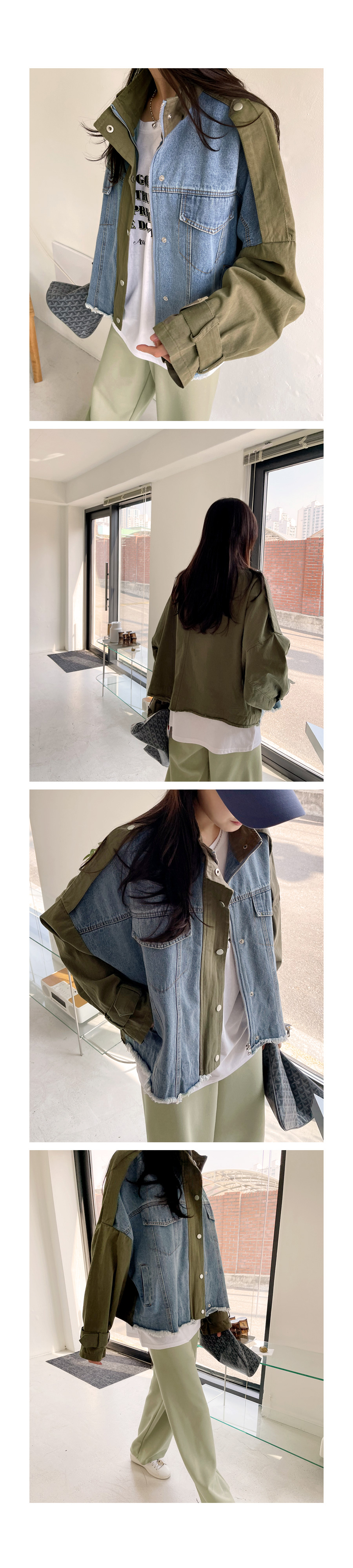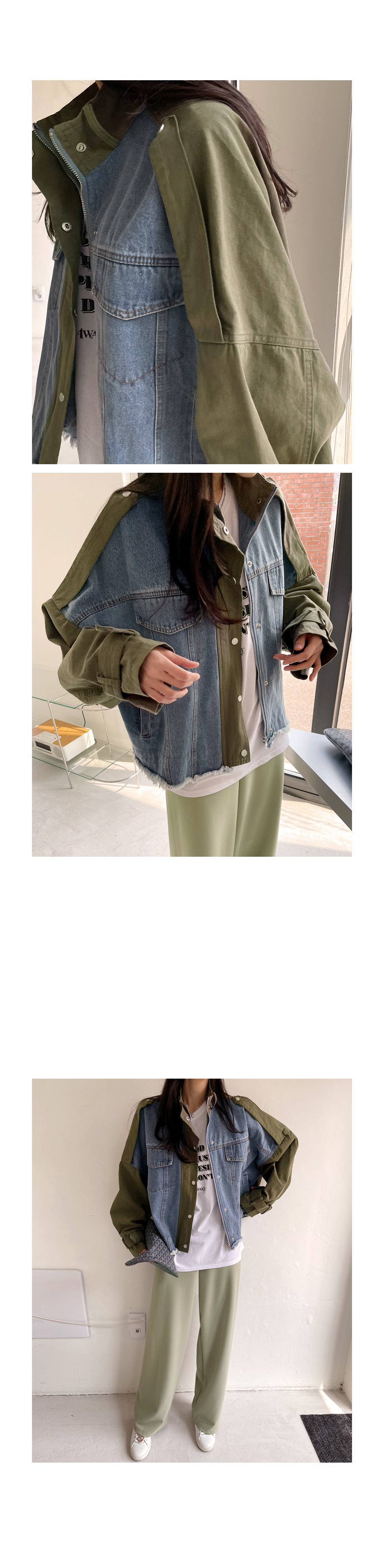 데님 배색 야상 자켓이에요~