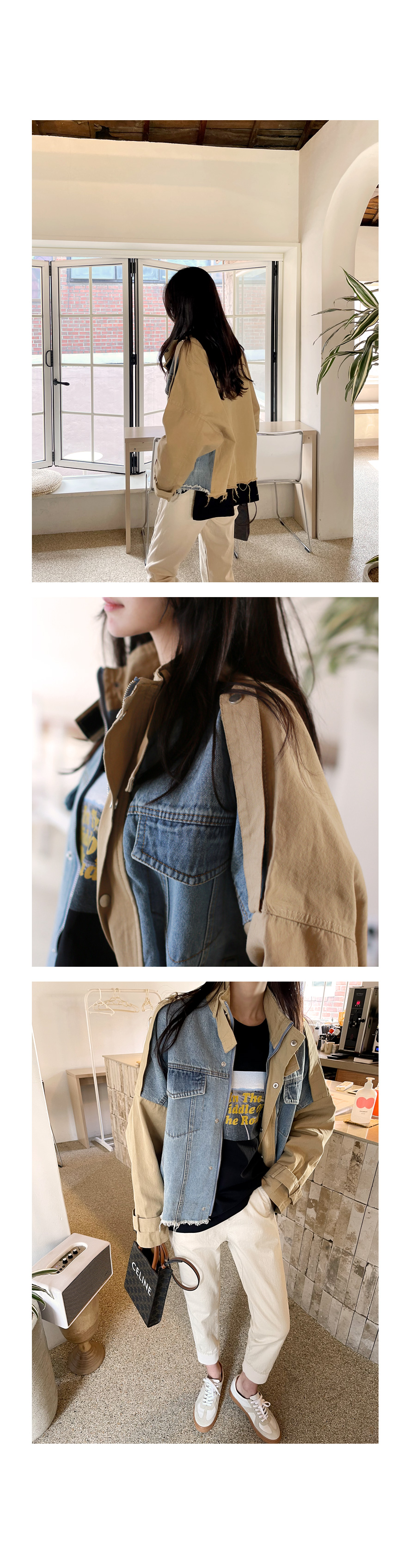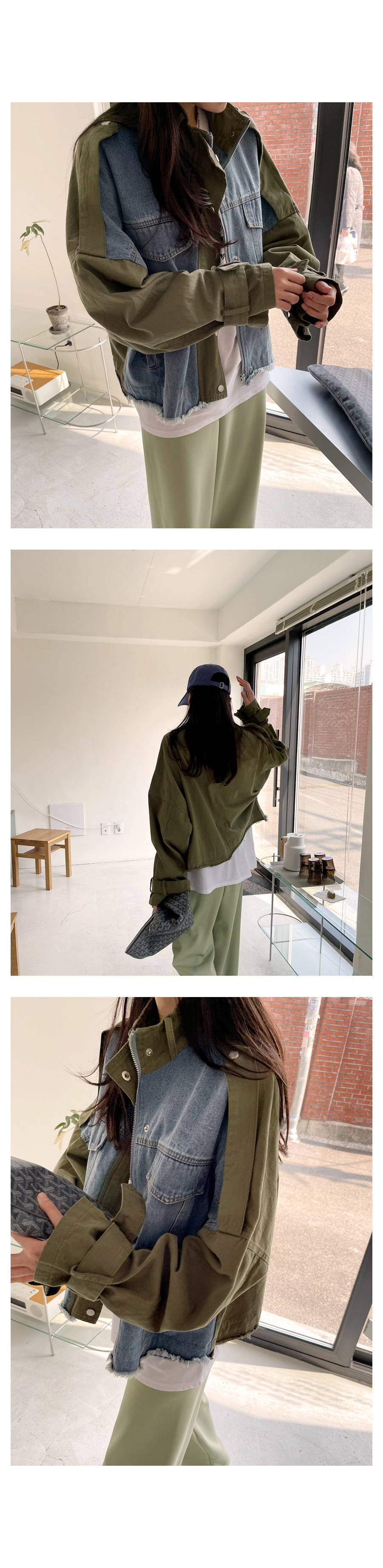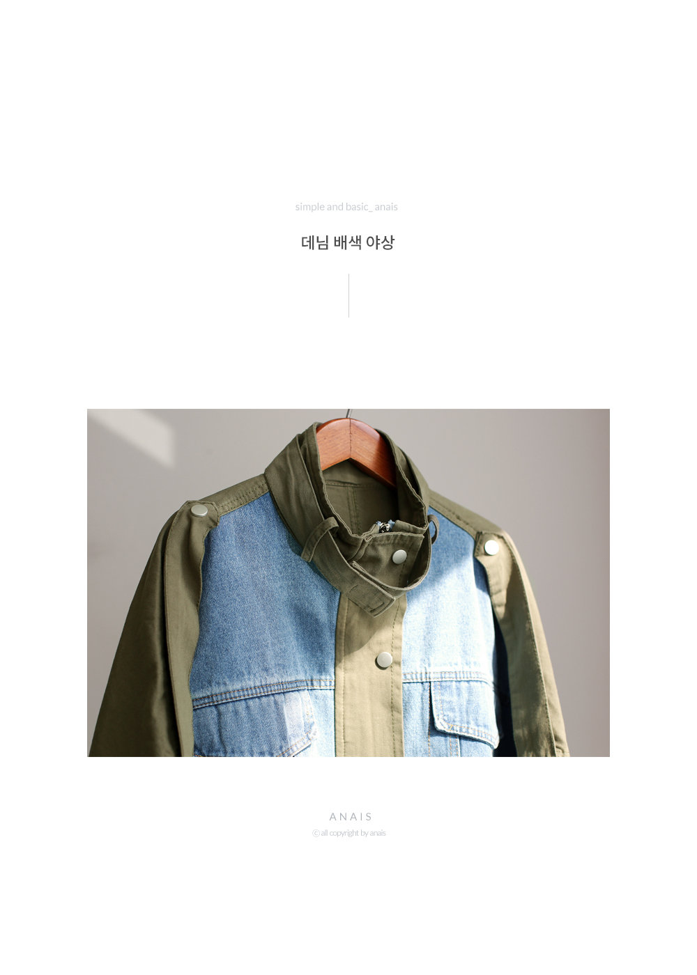 데님 배색 야상 자켓이에요~
