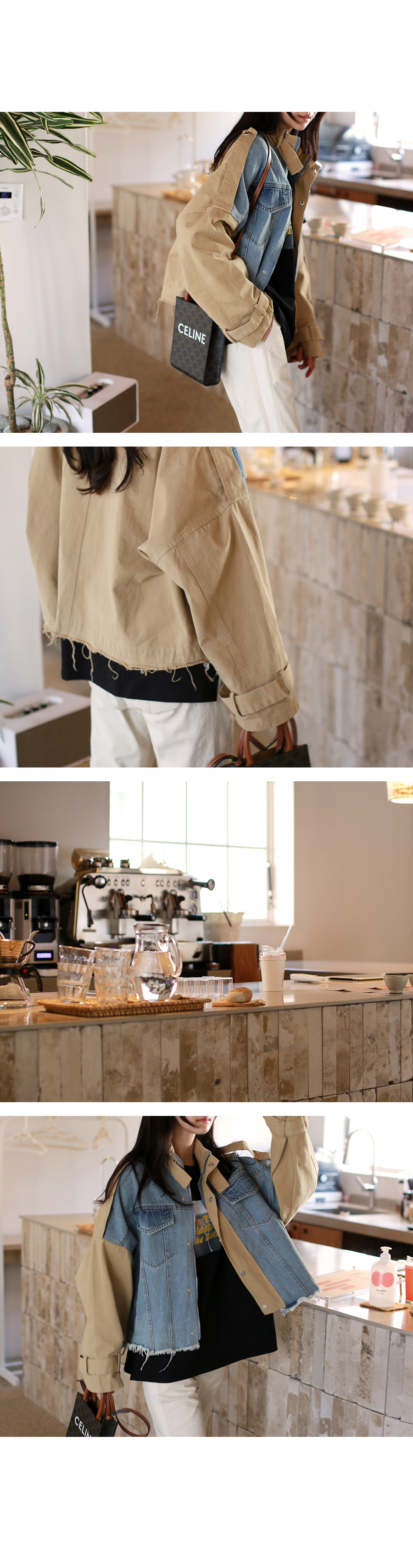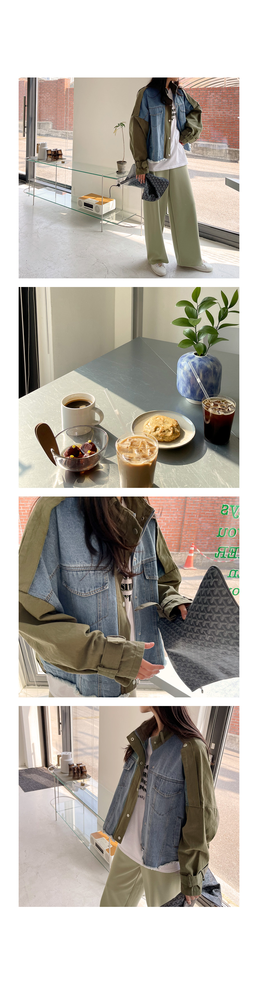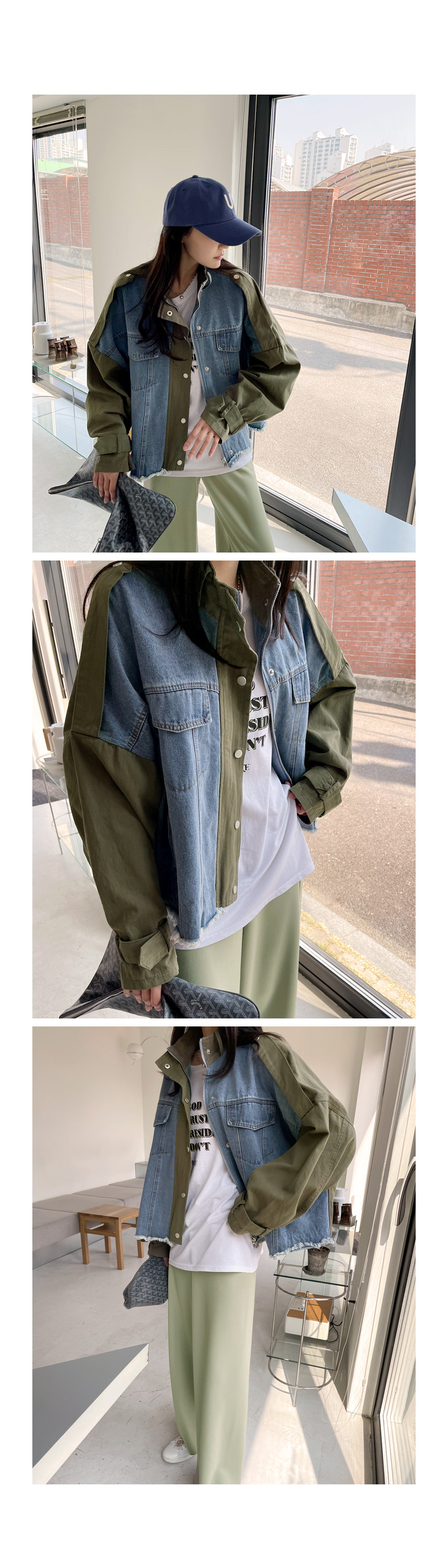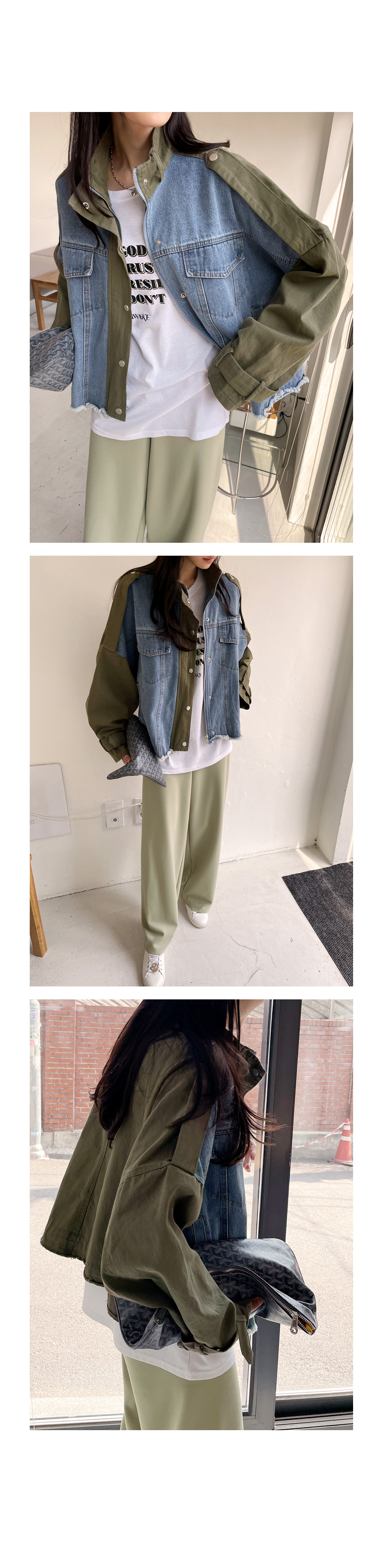 데님 배색 야상 자켓이에요~