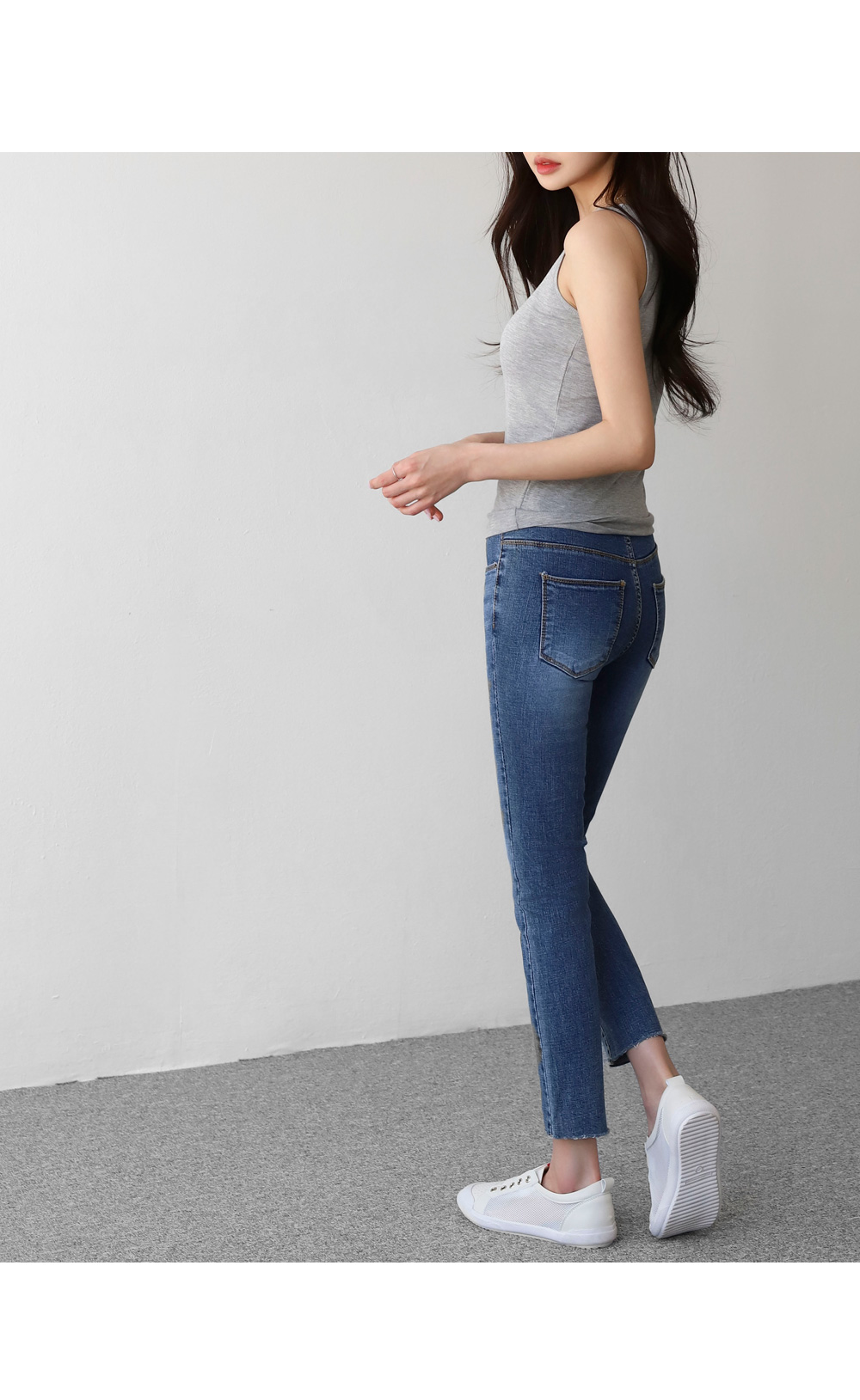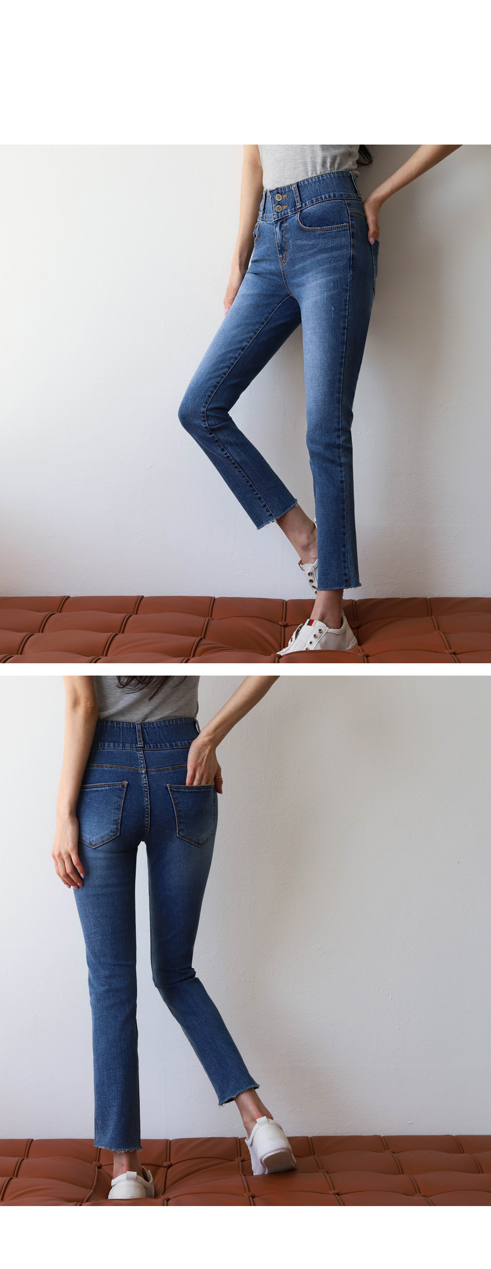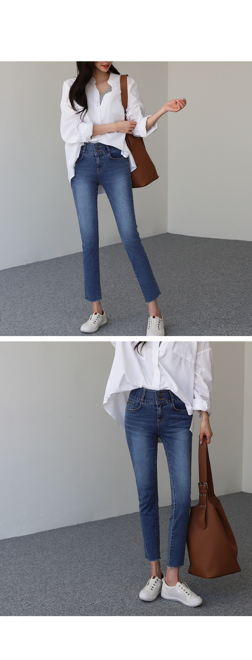 하이웨이스트로 허리는 쏙! 밑단 컷팅으로 세련미까지 ^^