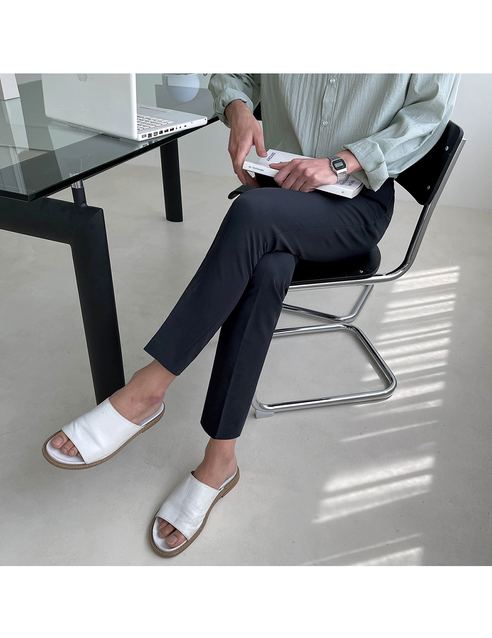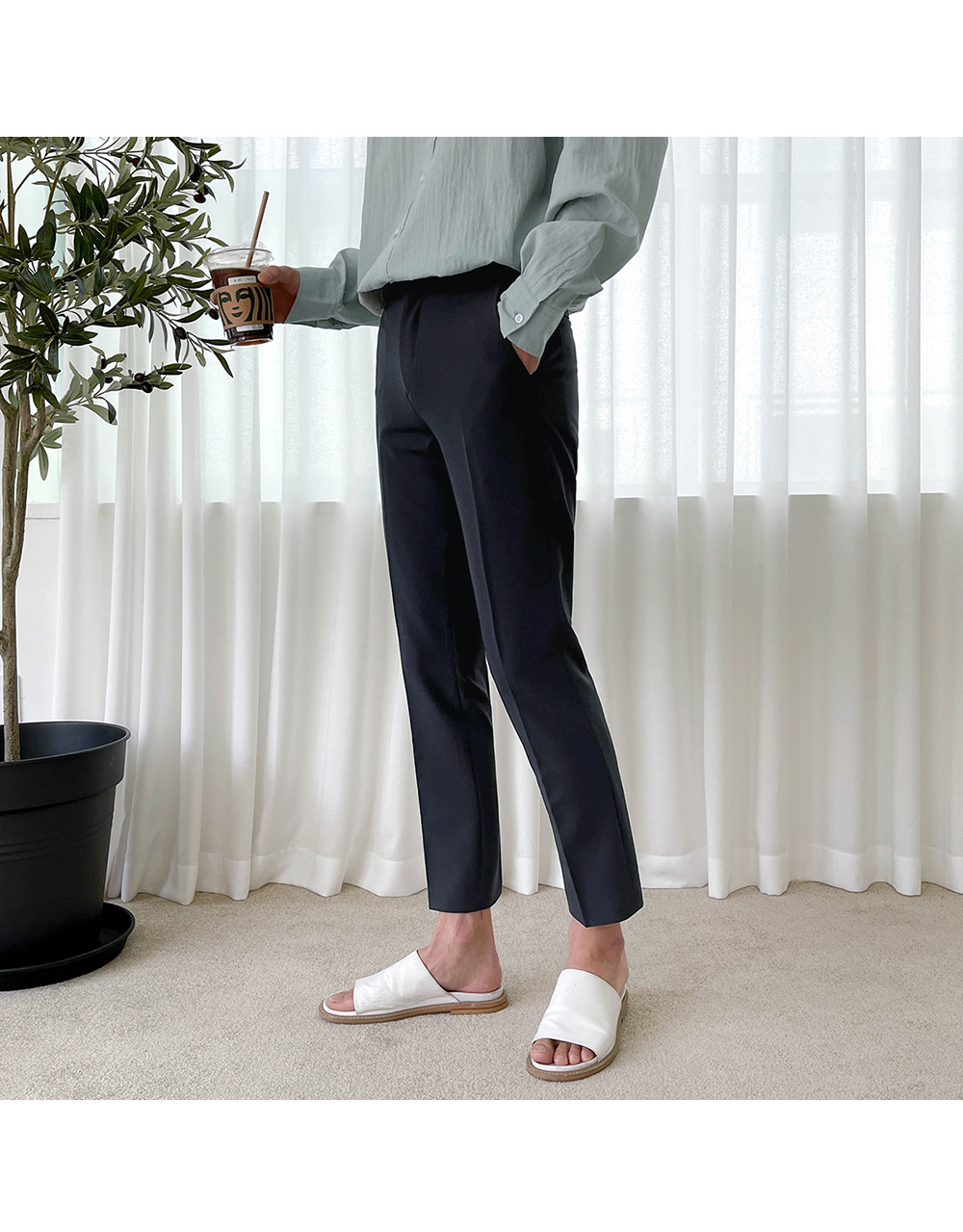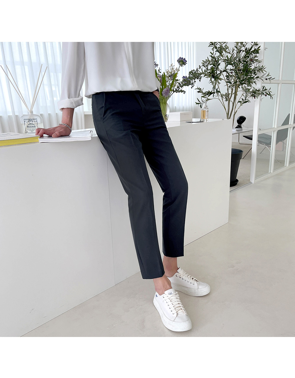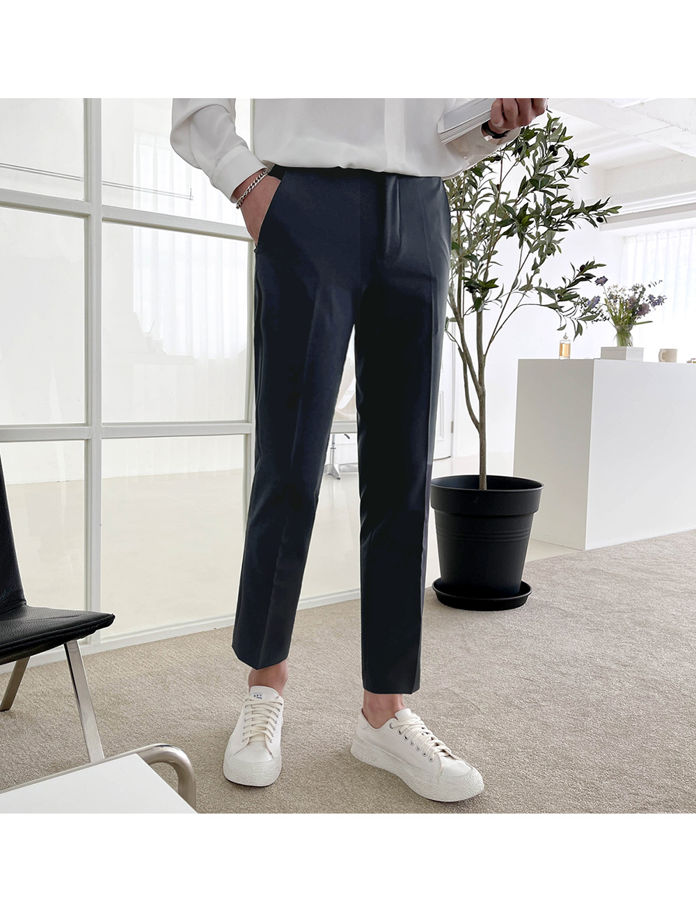 네추럴하게 떨어지는 슬림핏으로 다리가 날씬하고