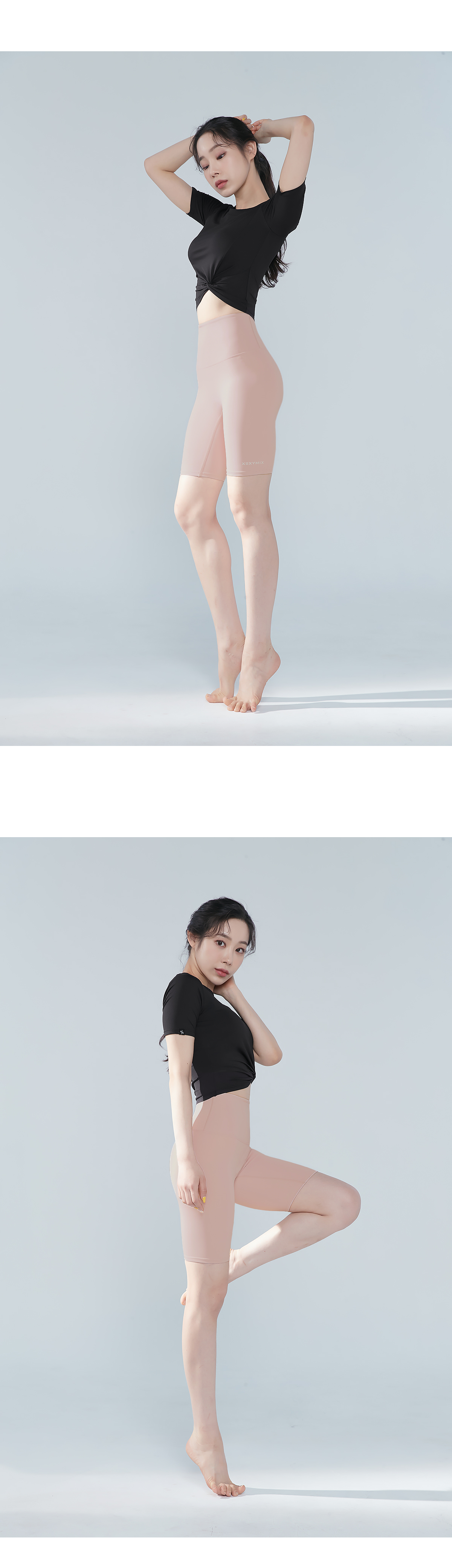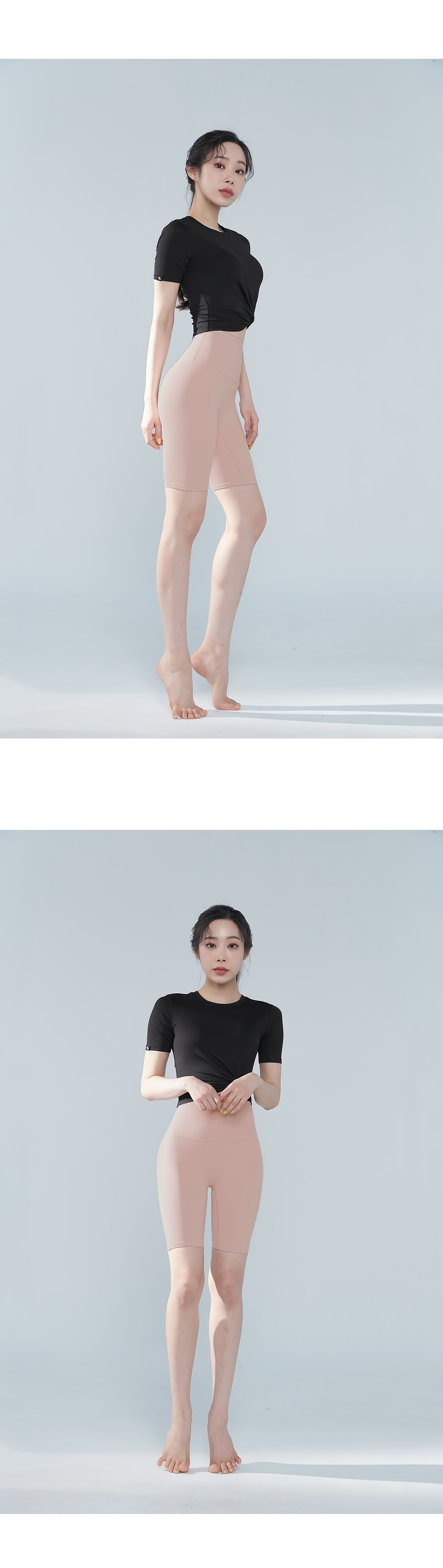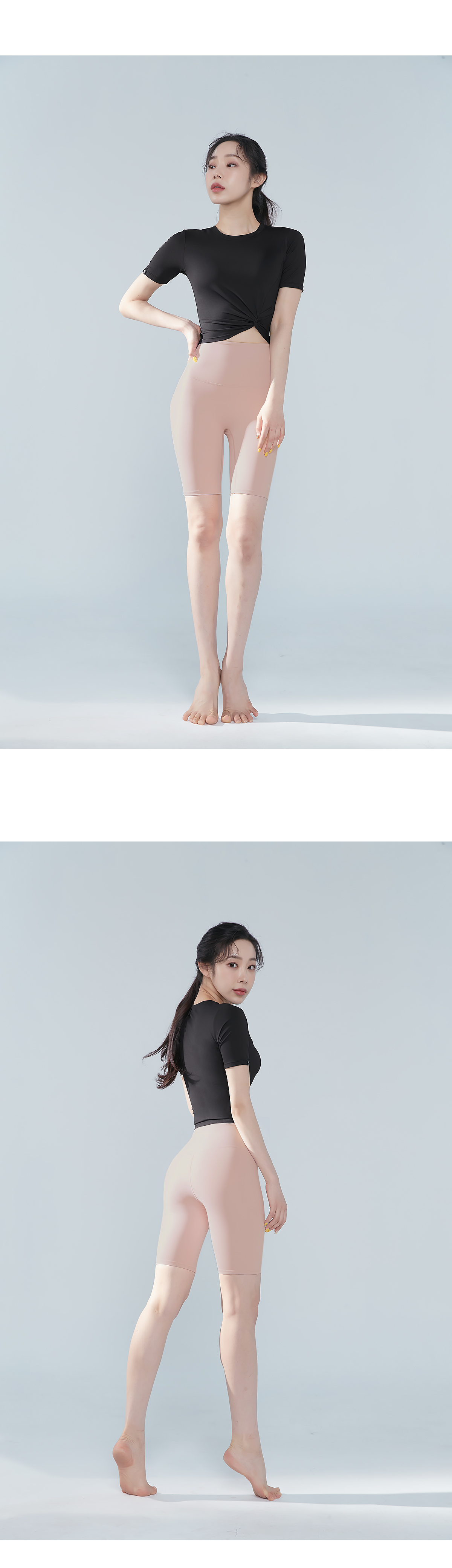 부담스럽지 않은 크롭 기장으로 하이웨이스트 레깅스에도