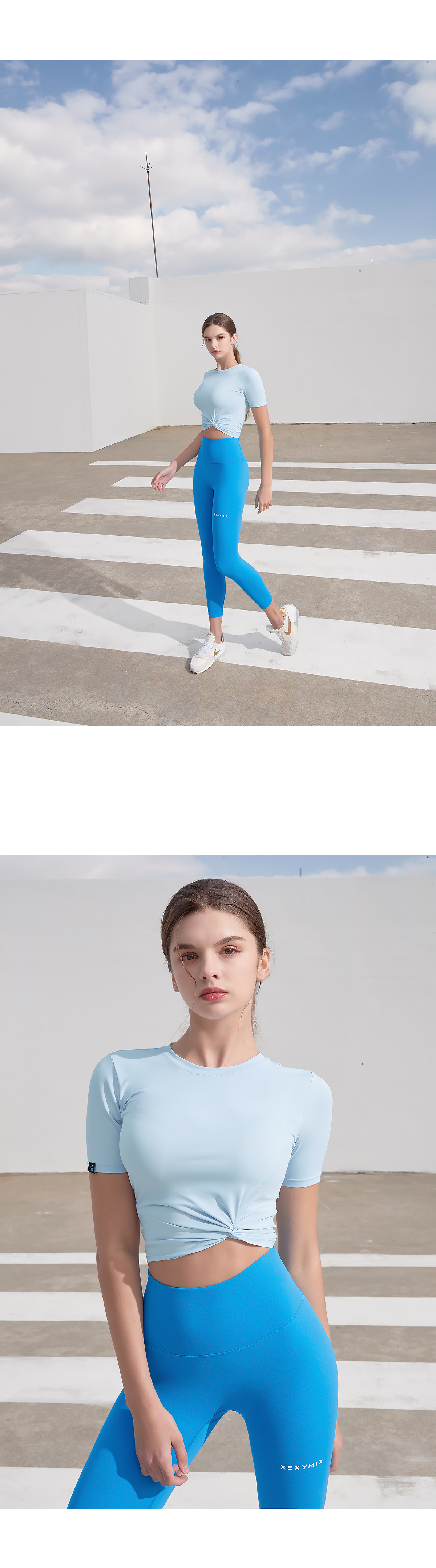 부담스럽지 않은 크롭 기장으로 하이웨이스트 레깅스에도