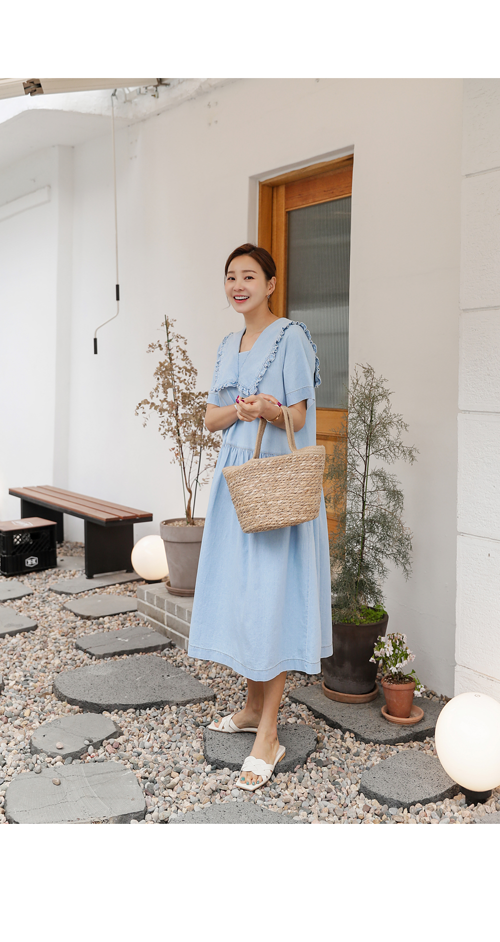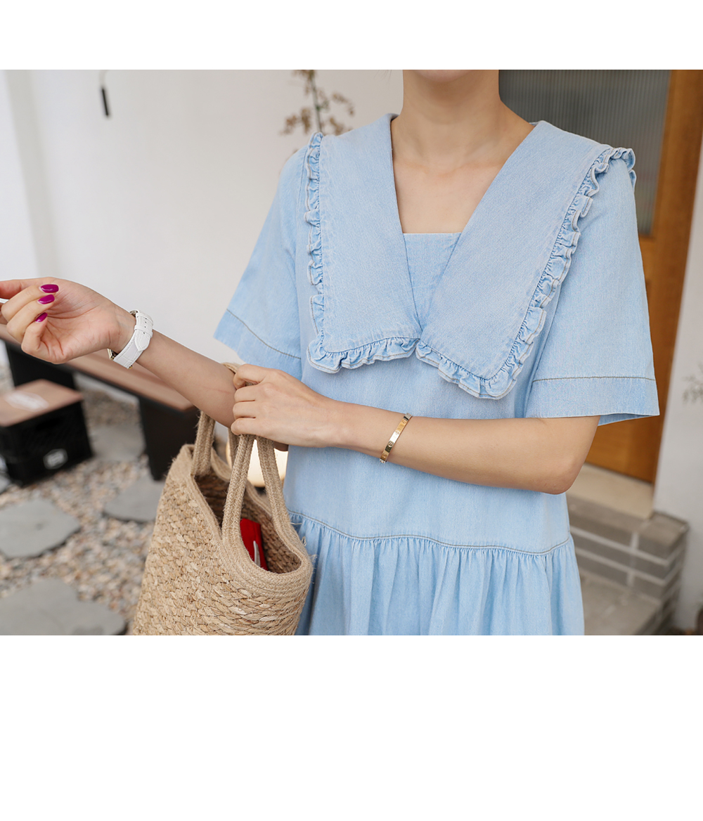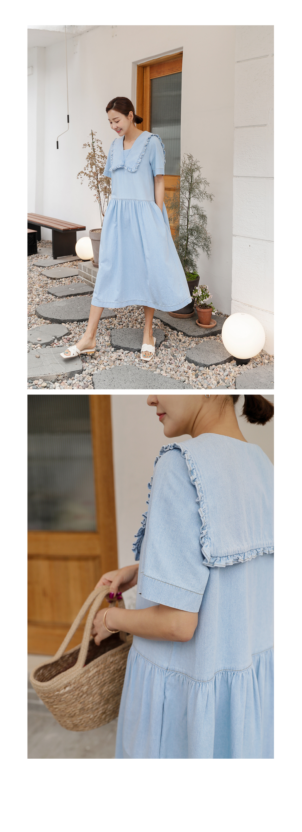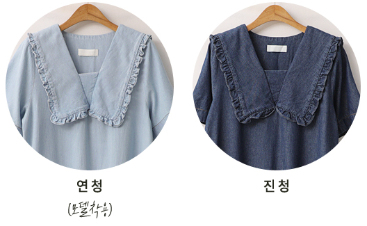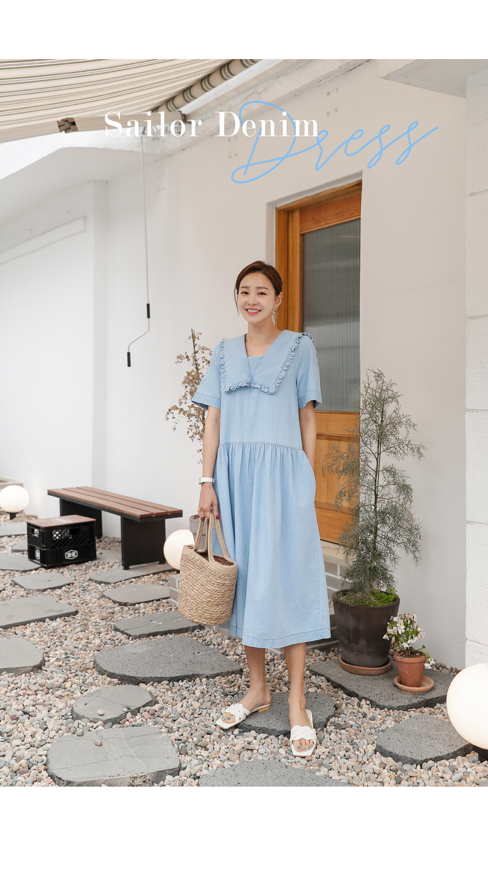 러블리함이 느껴지는 세일러 데님 원피스에요.