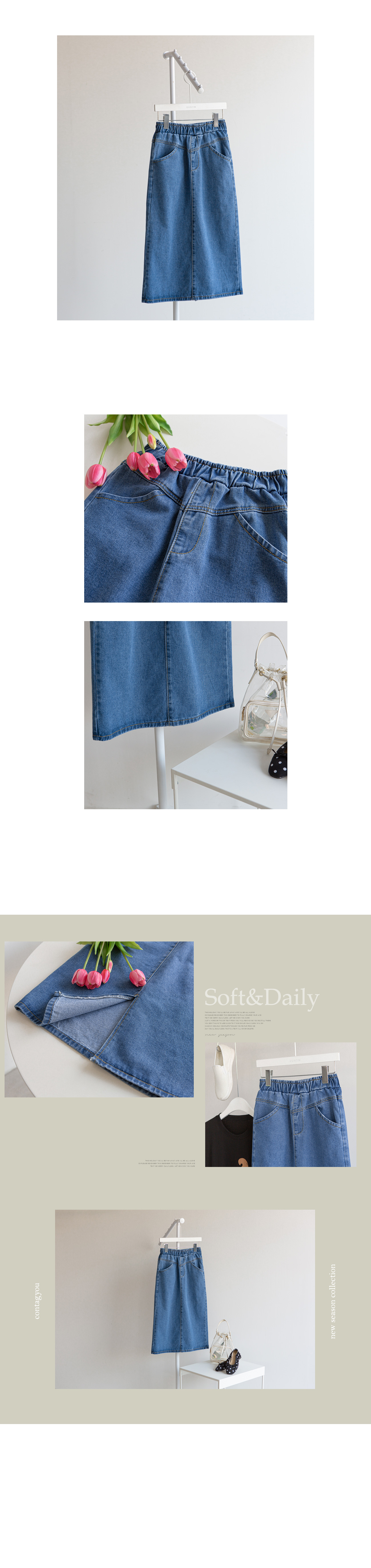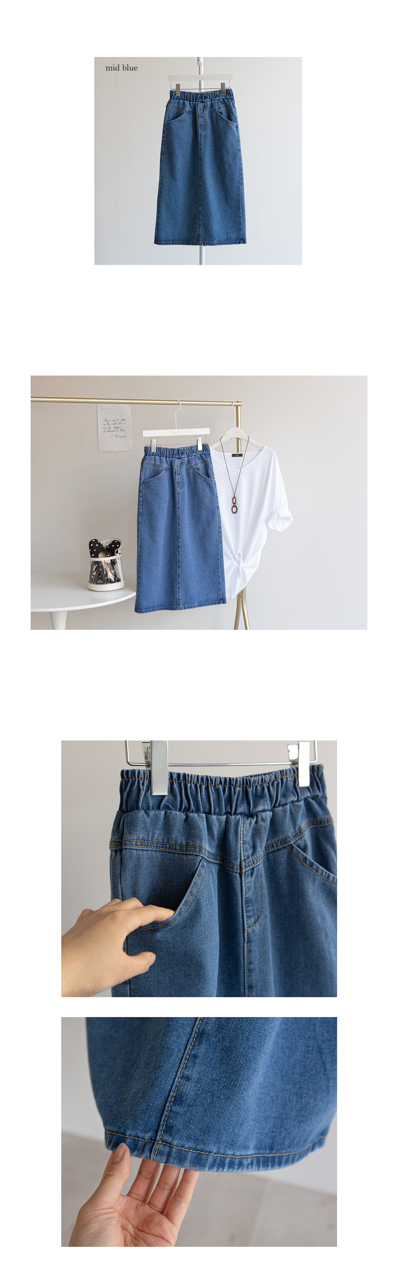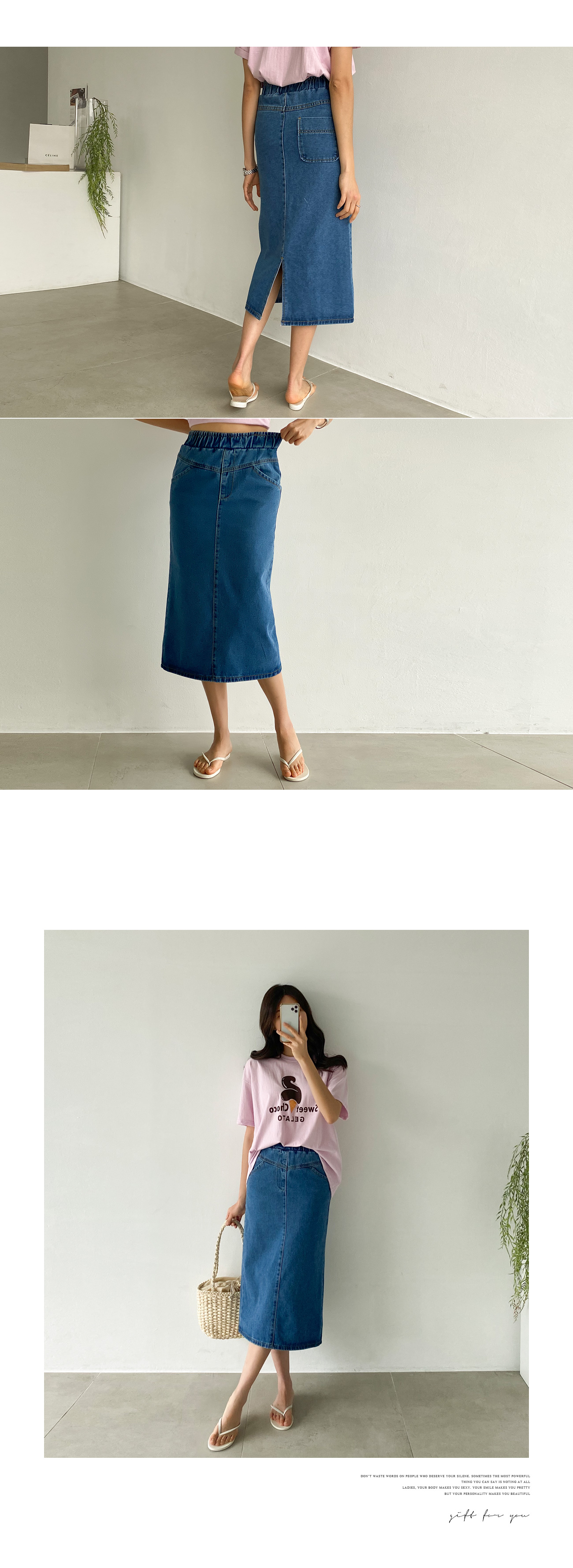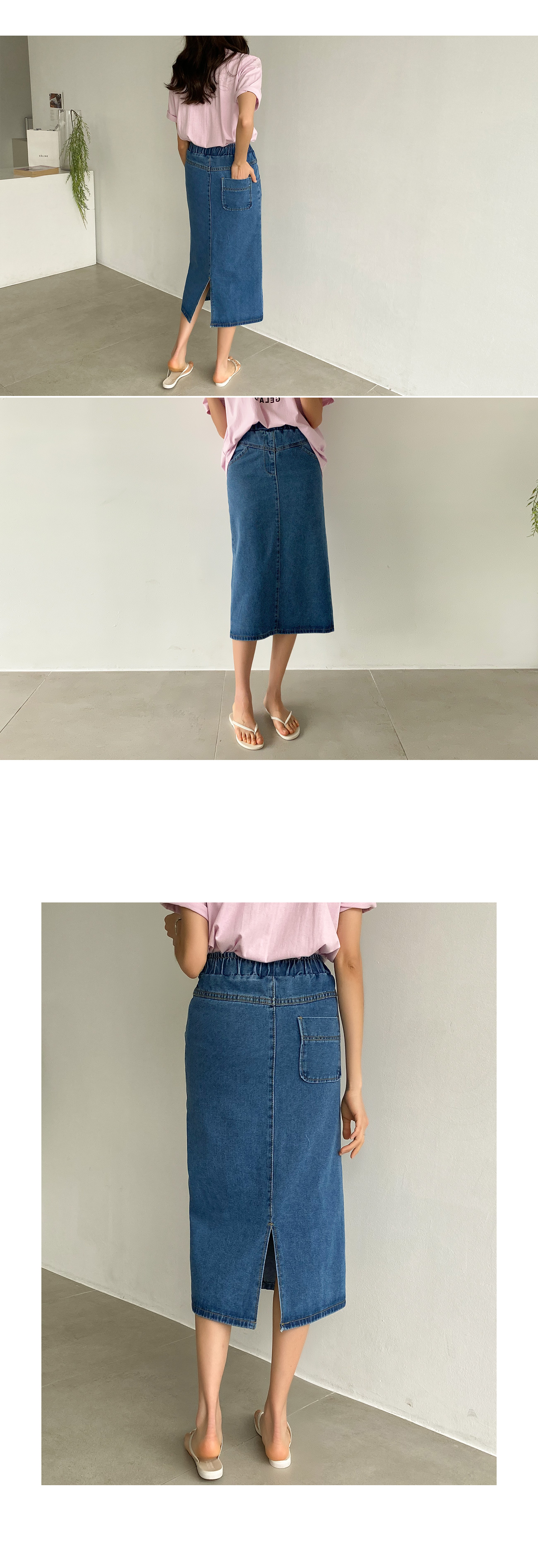 자체제작/데님 미디움 슬릿 스커트 #53021