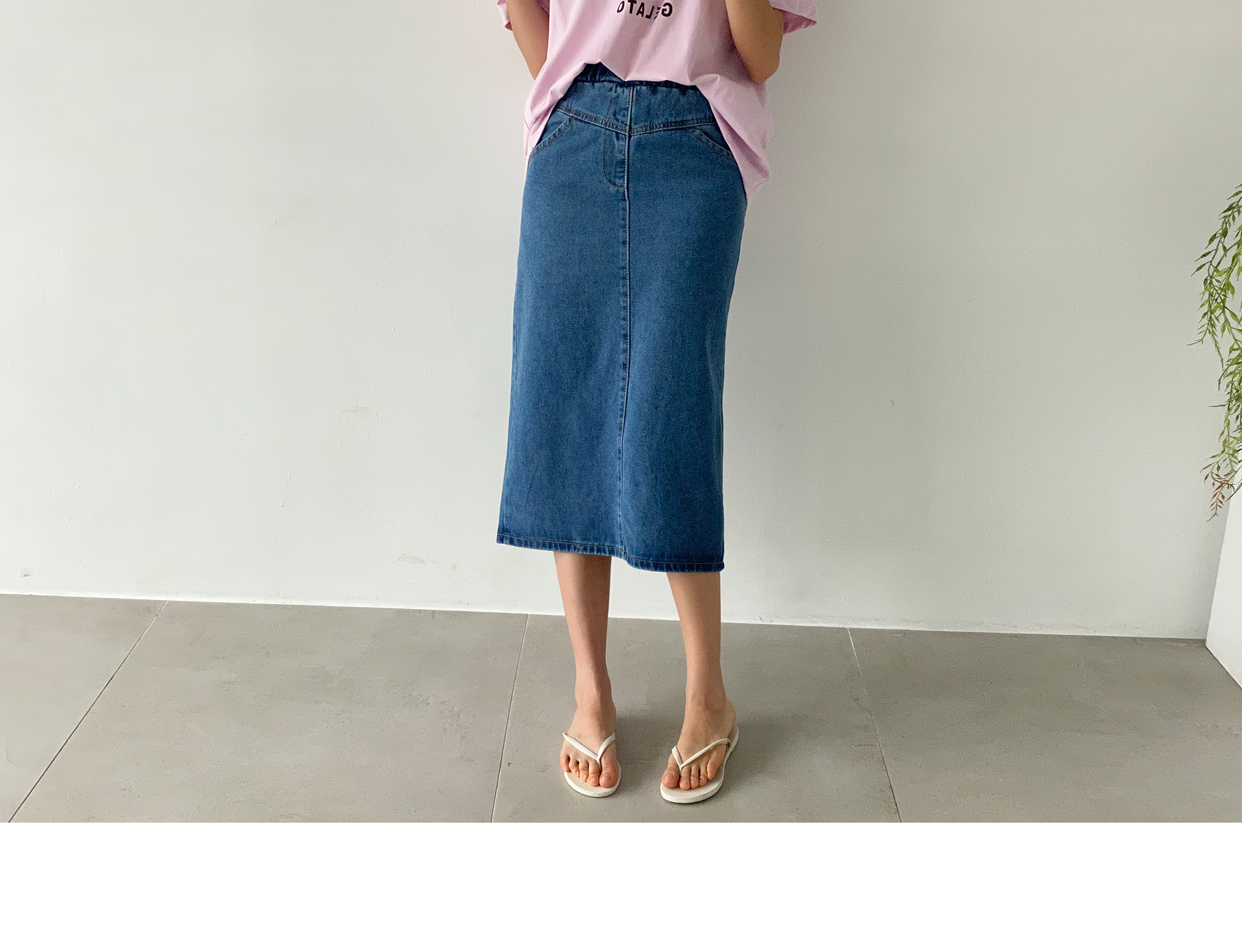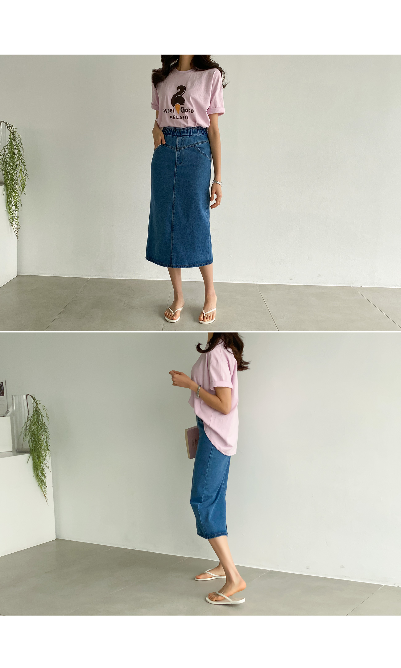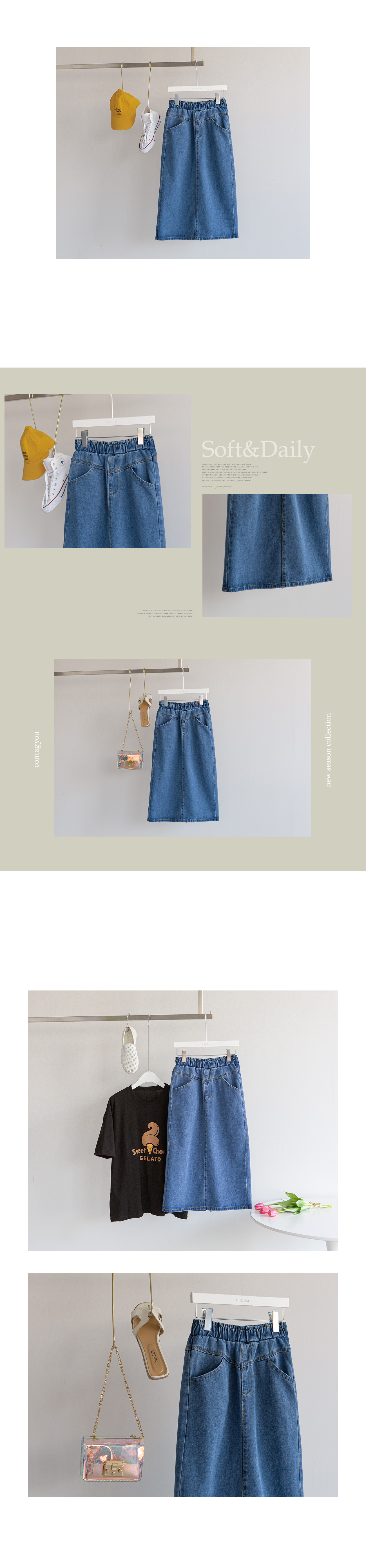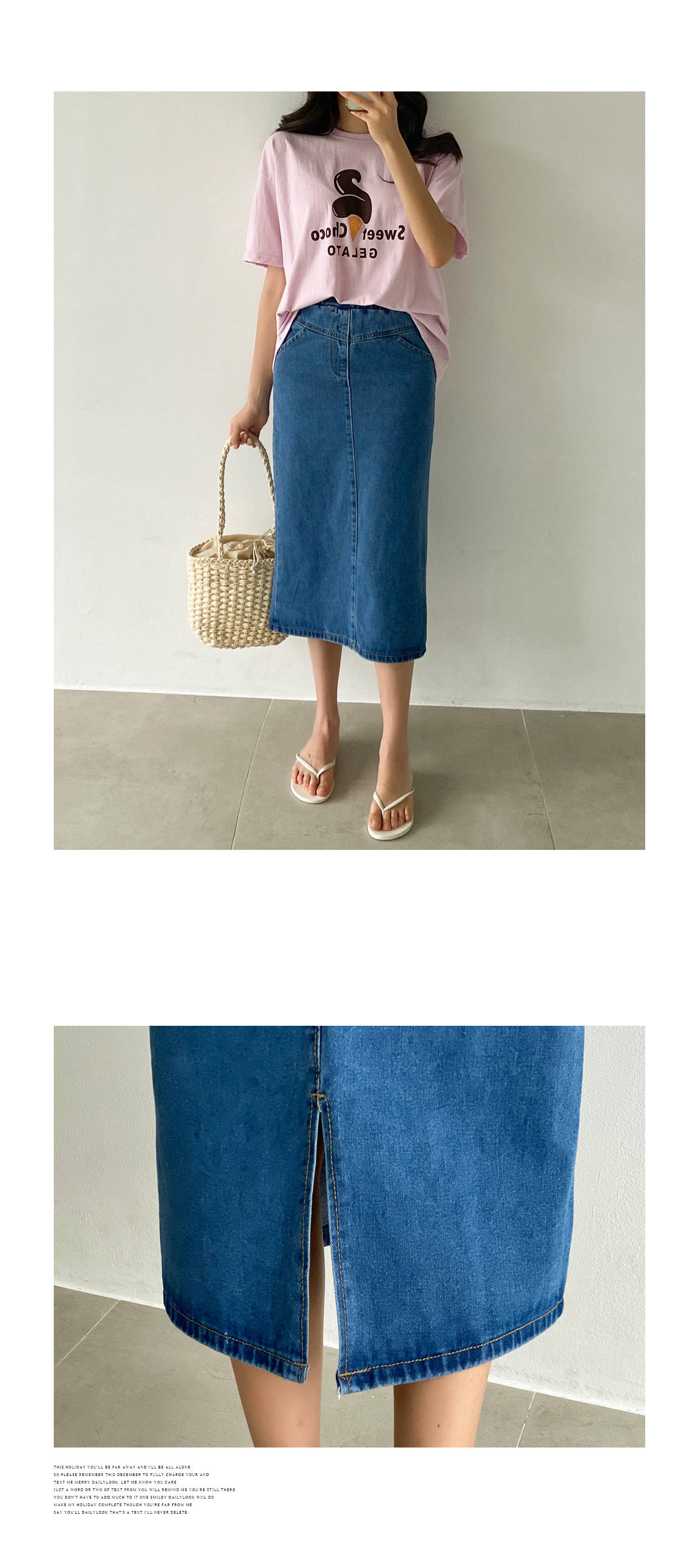 자체제작/데님 미디움 슬릿 스커트 #53021