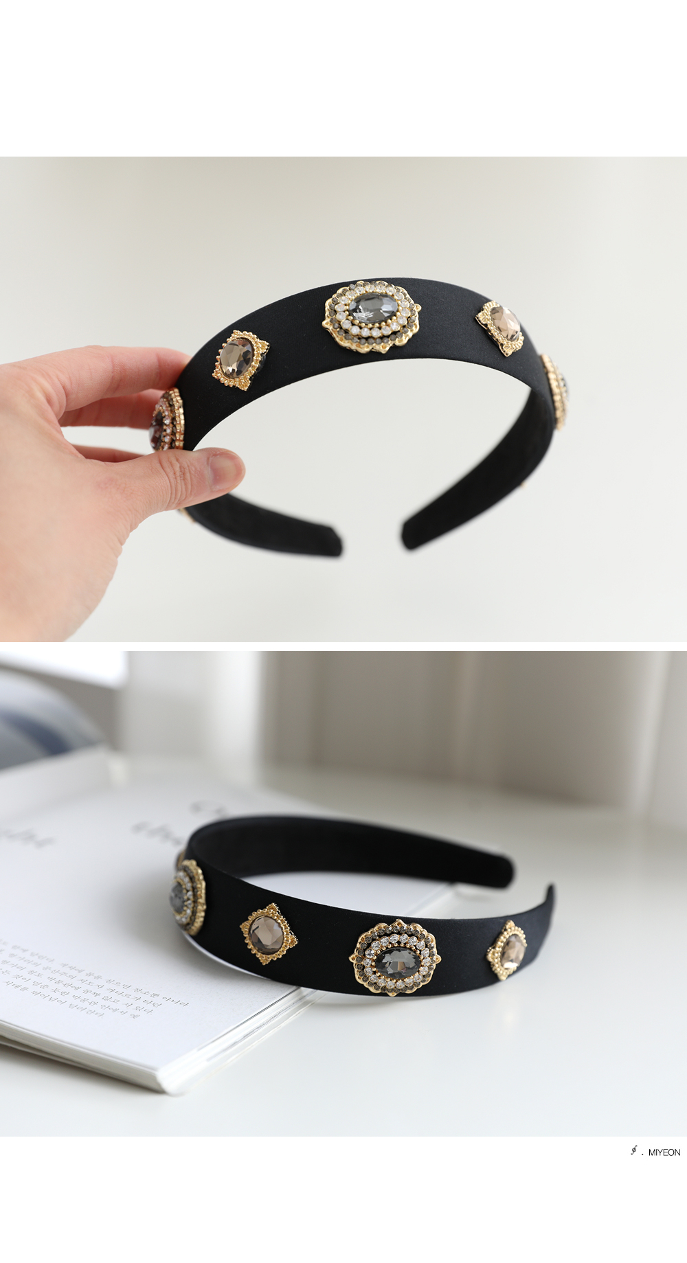 포인트가 되어주는 머리띠에요.