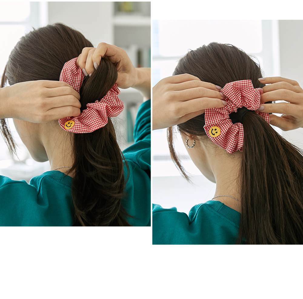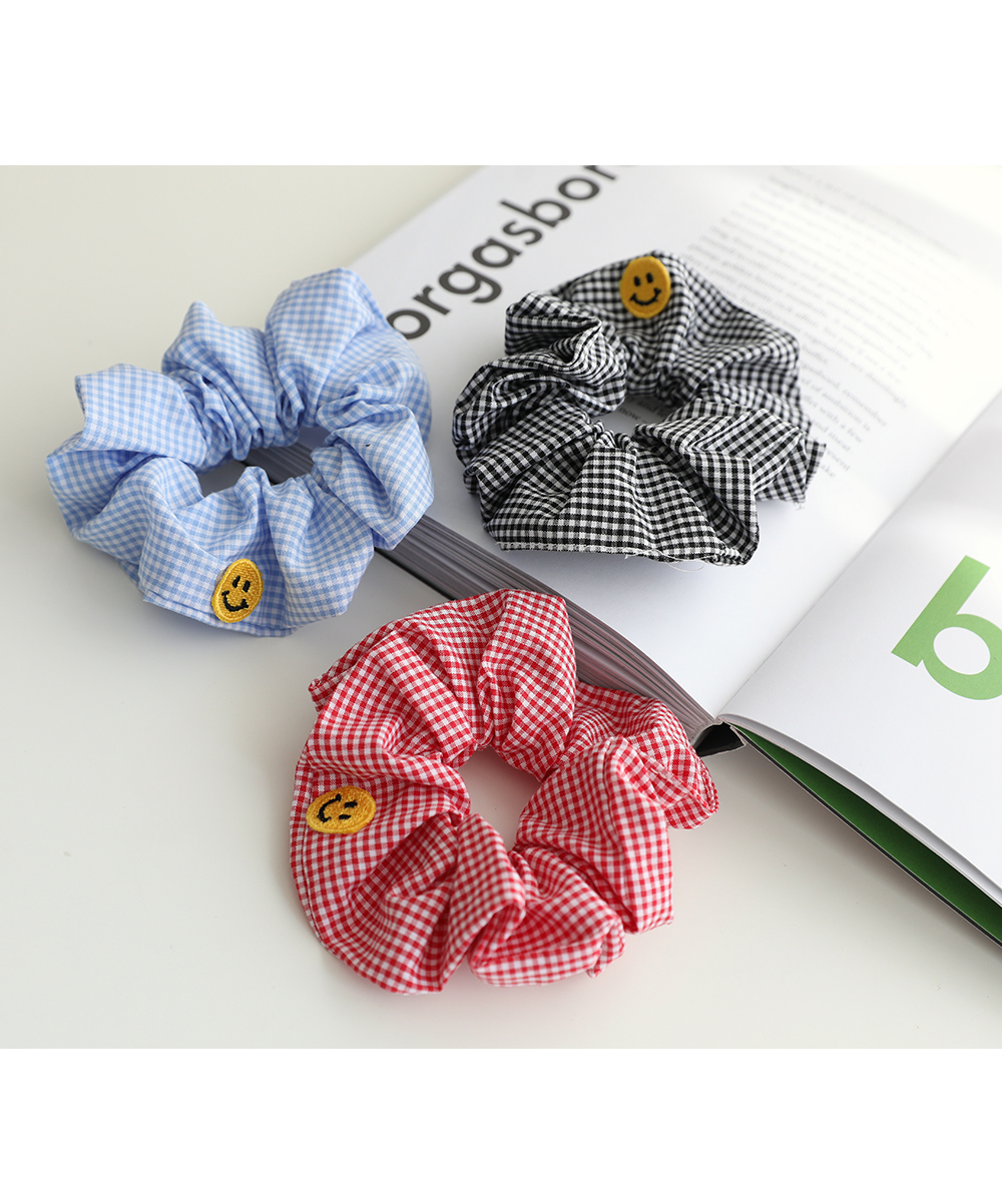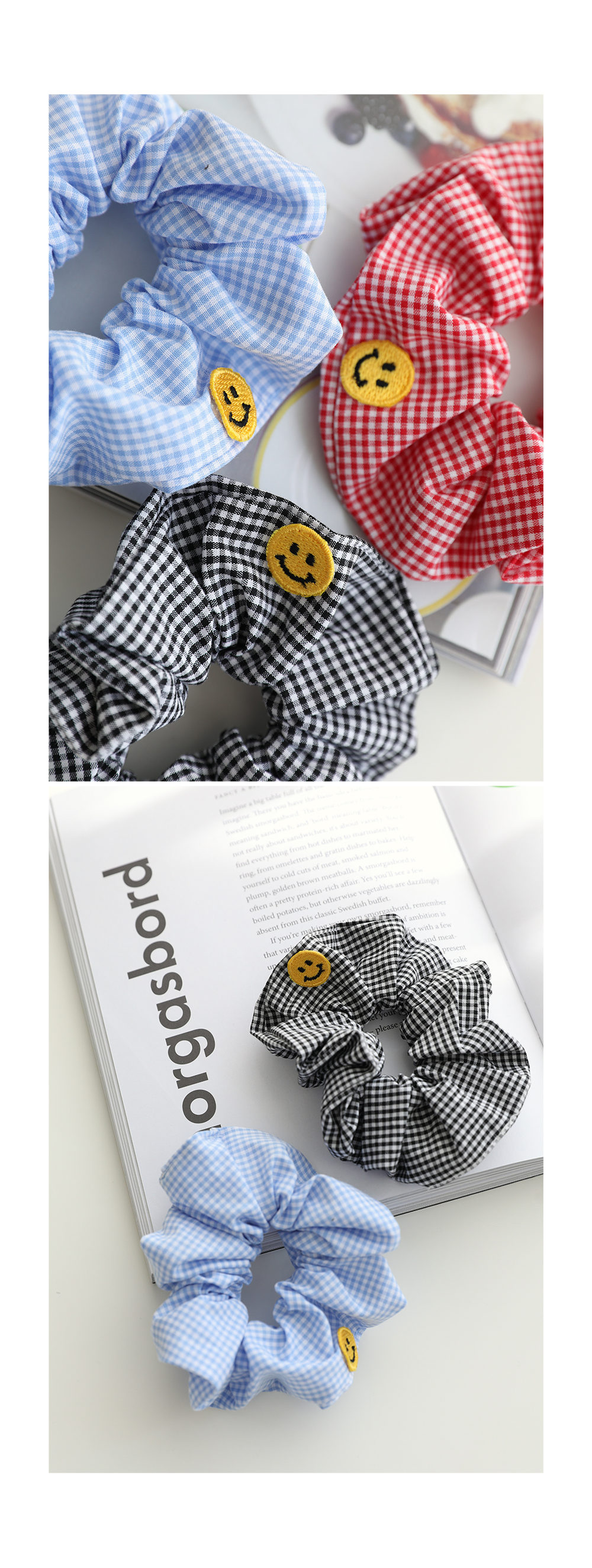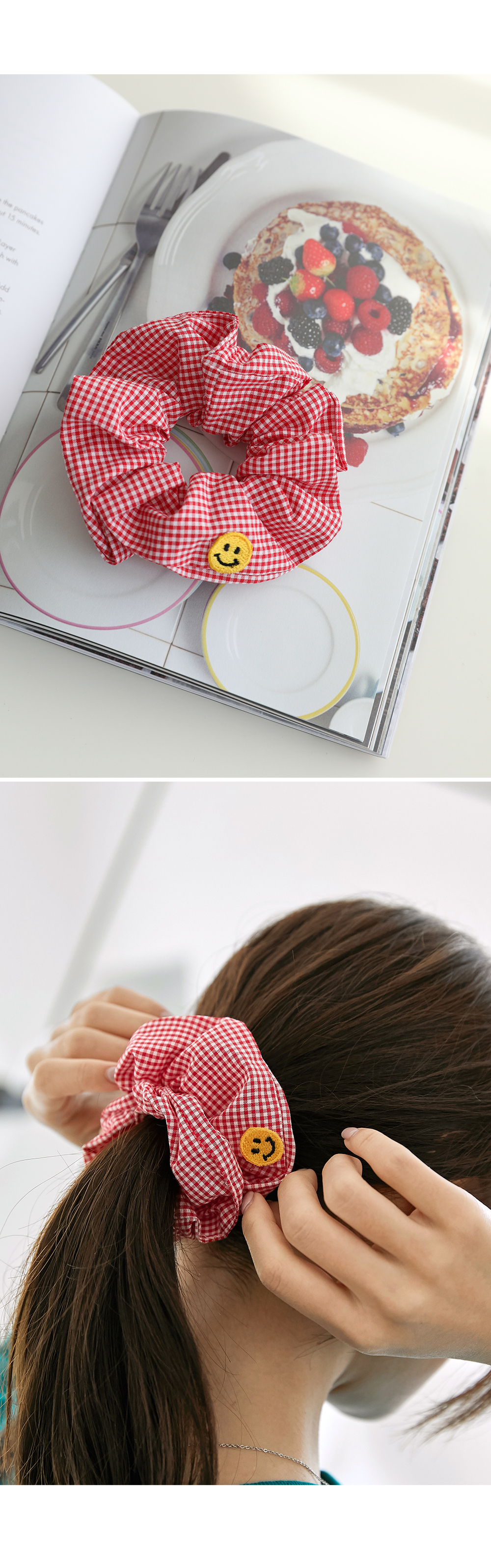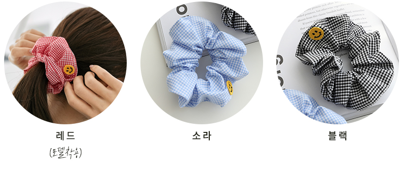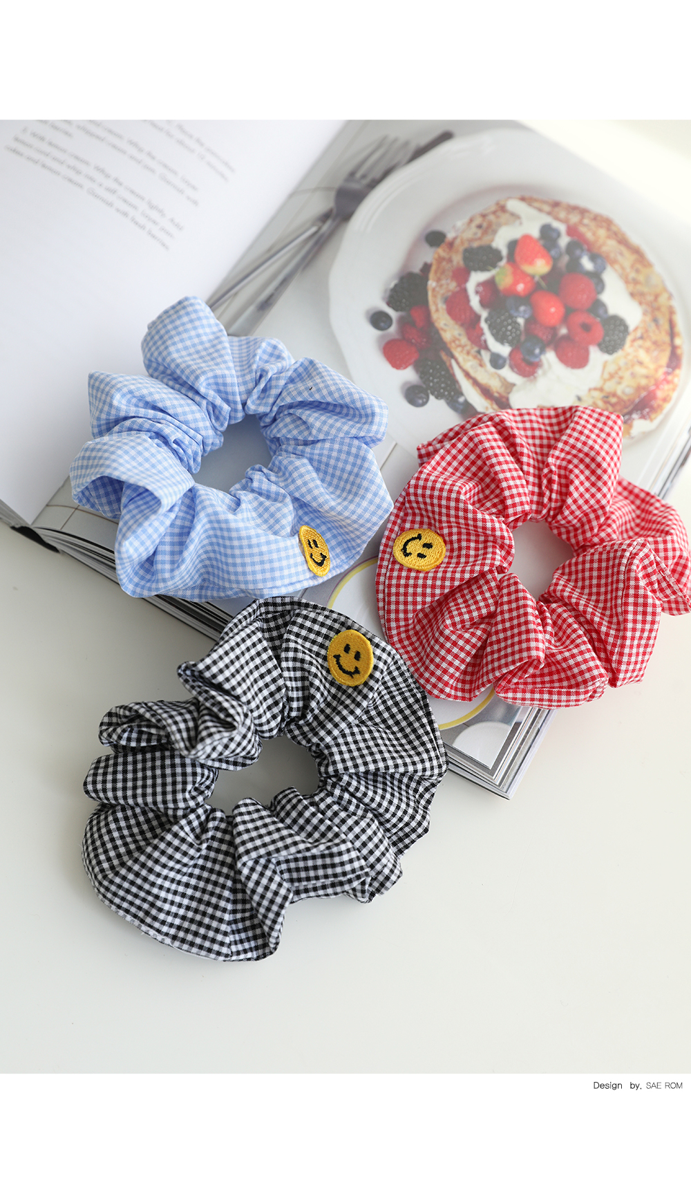 고방 패턴에 스마일 자수 패치가 포인트로 더해져