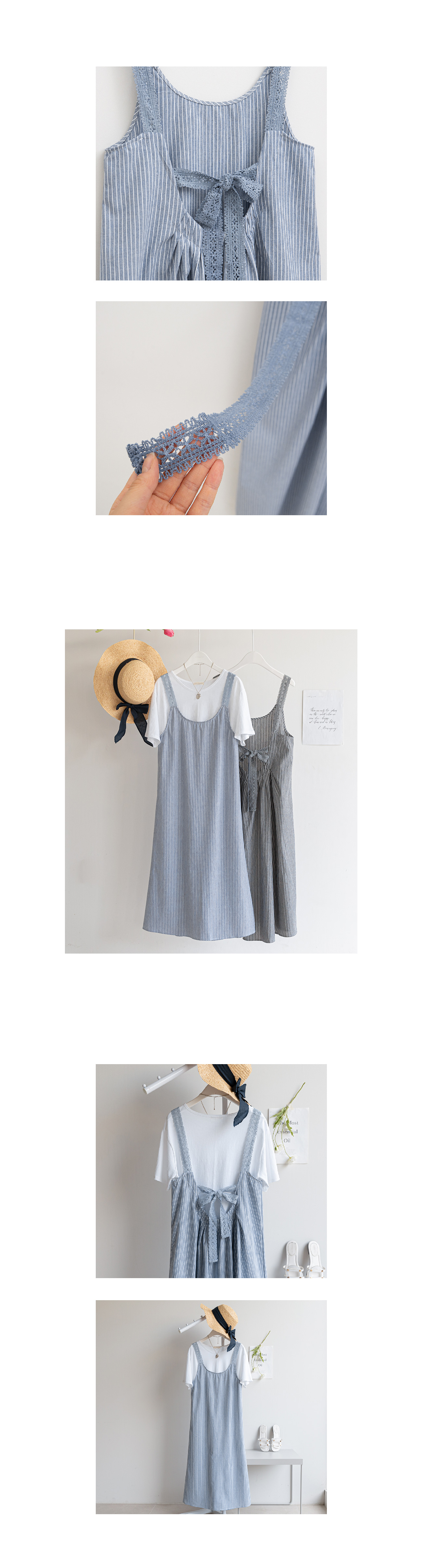 스트라이프 뒷리본 원피스 #37930