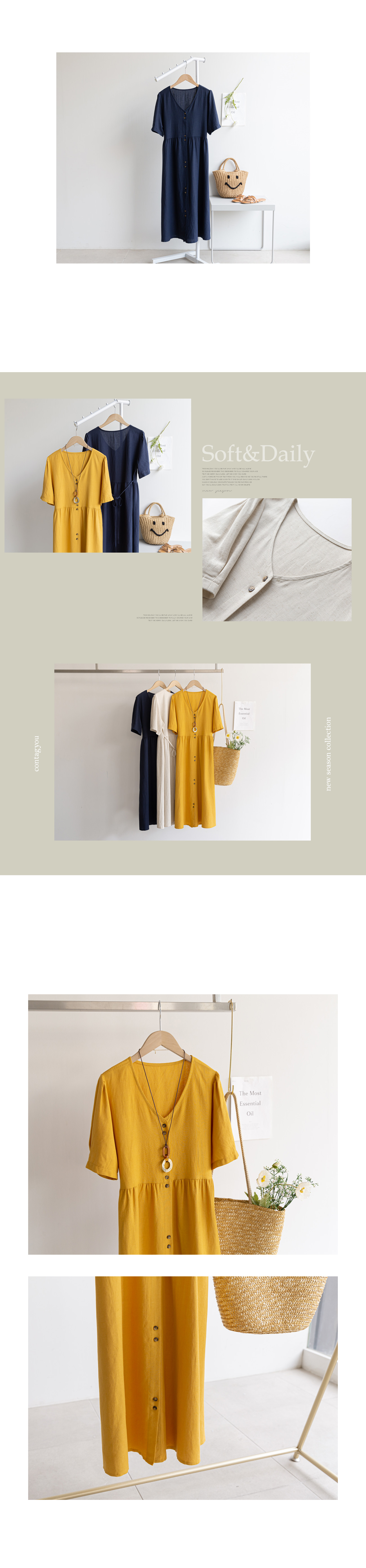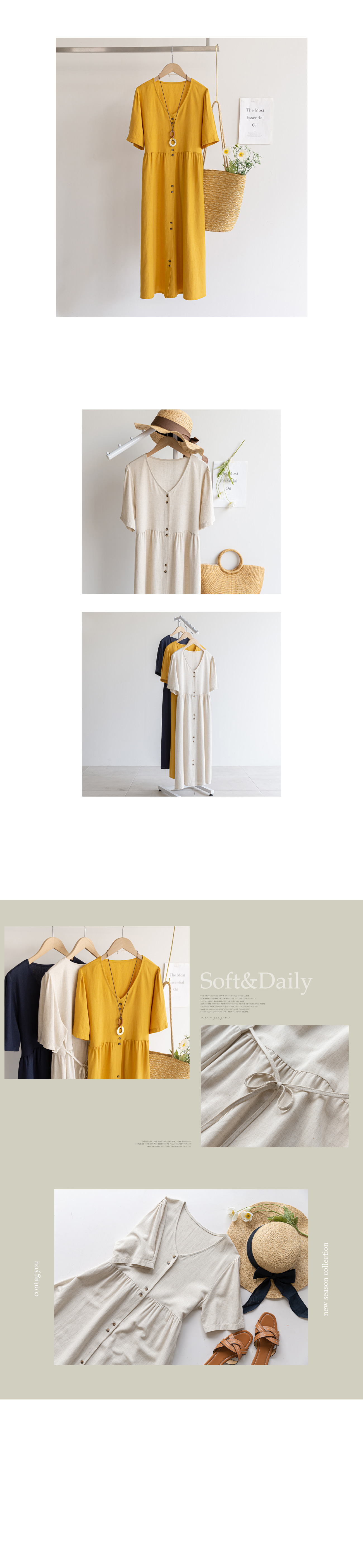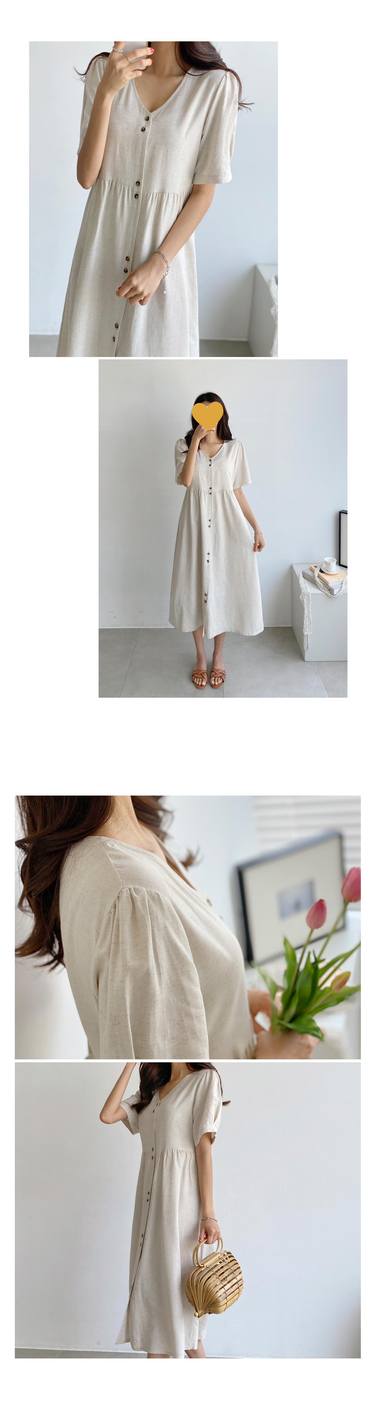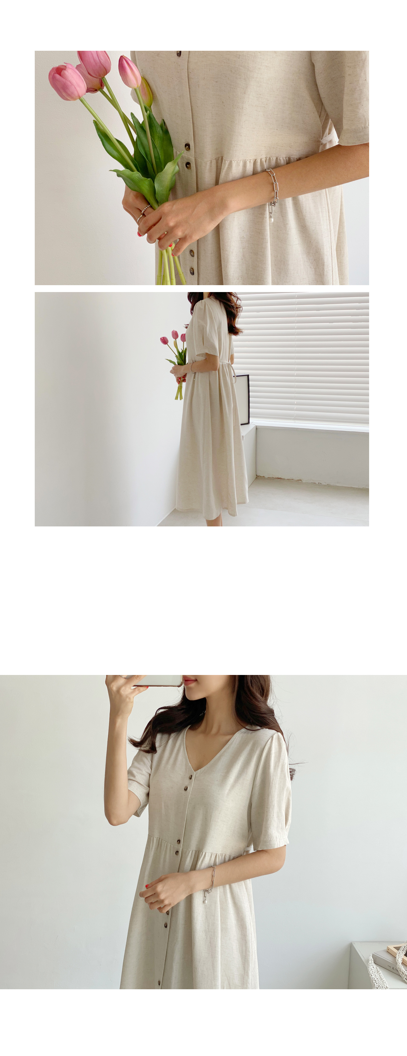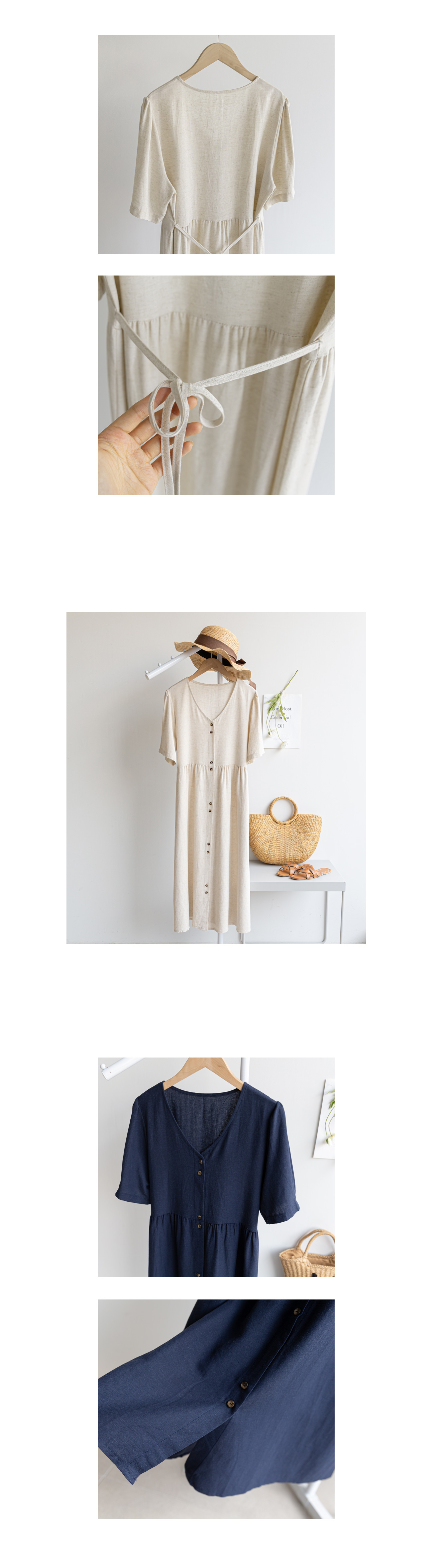 자체제작/린넨 스트링 버튼 원피스 #37936