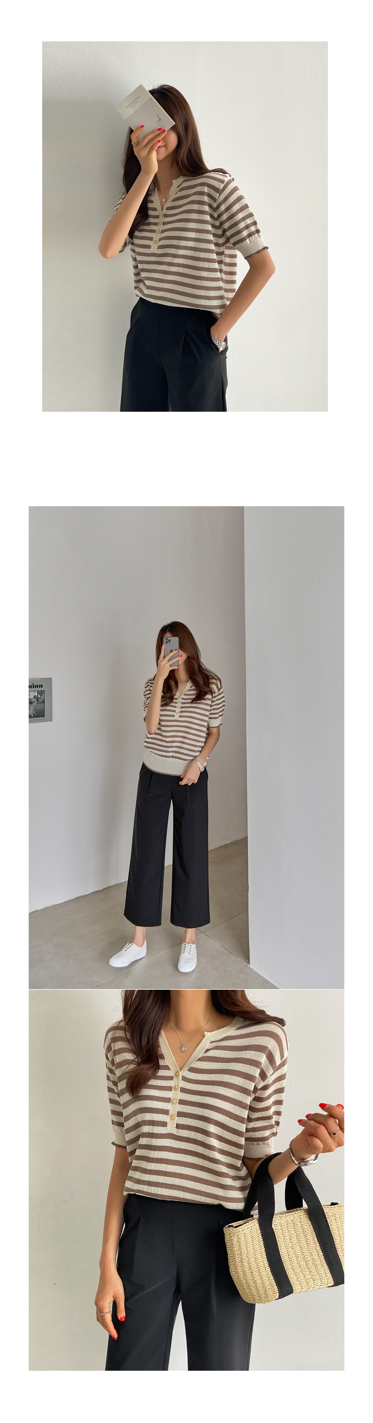 단가라 반팔 니트 #109092